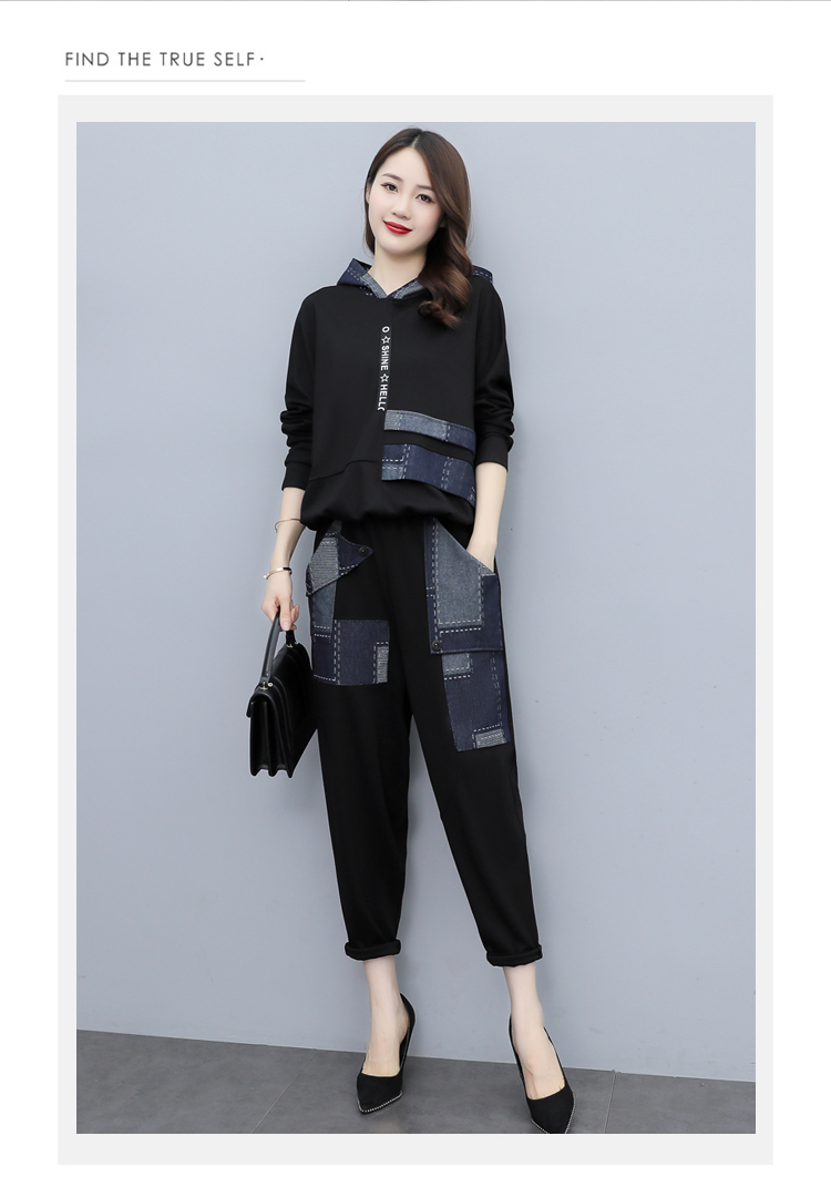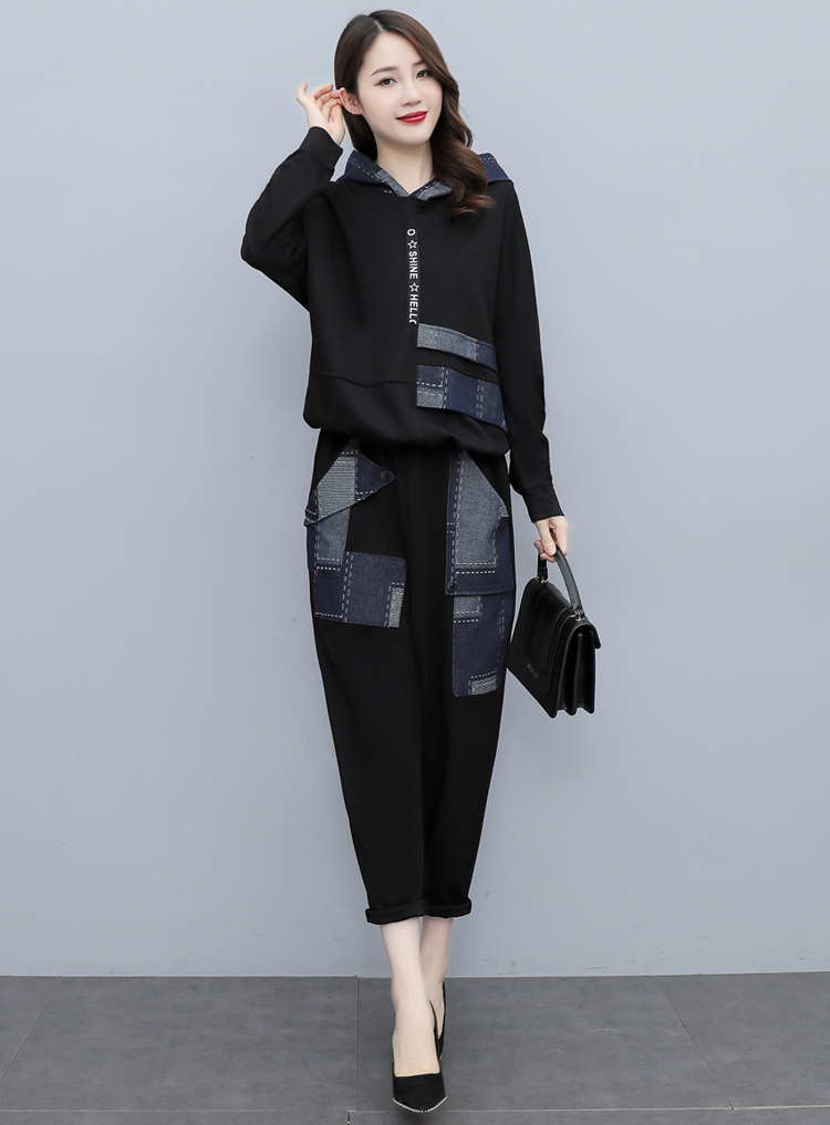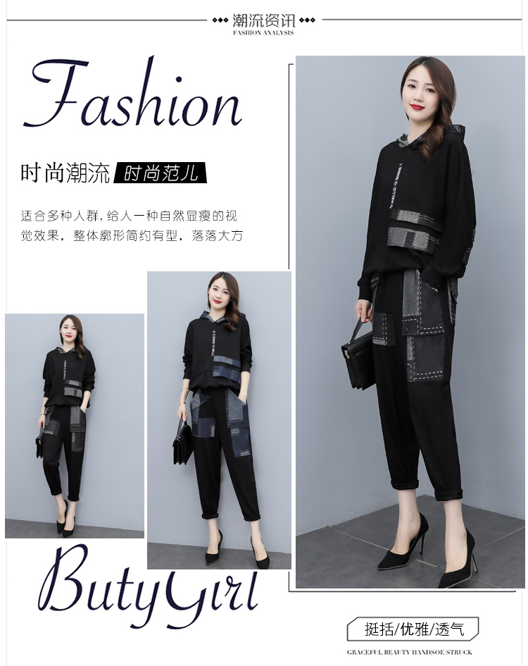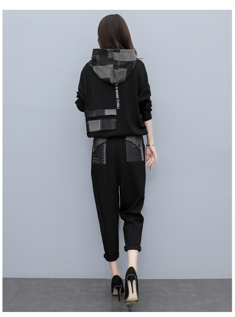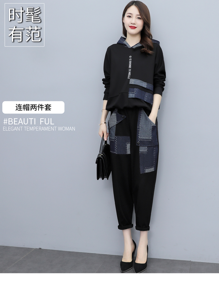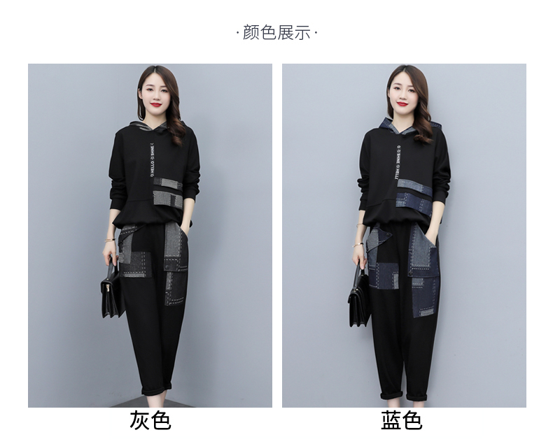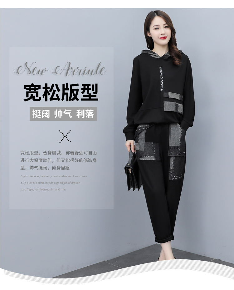 时尚气质减龄个性拼接连帽休闲舒适两件套 HR-YZC838-1