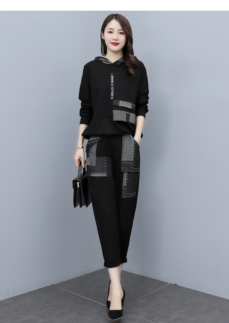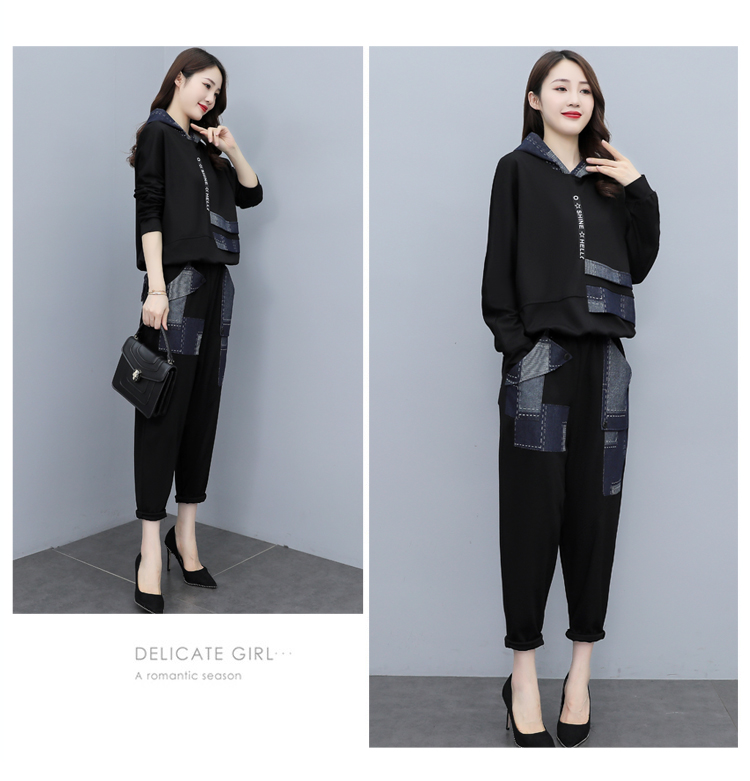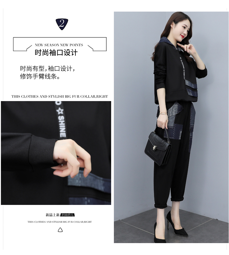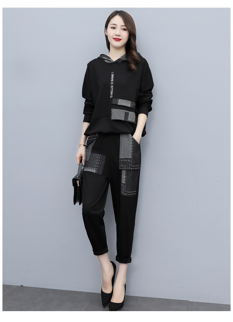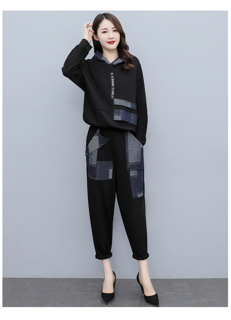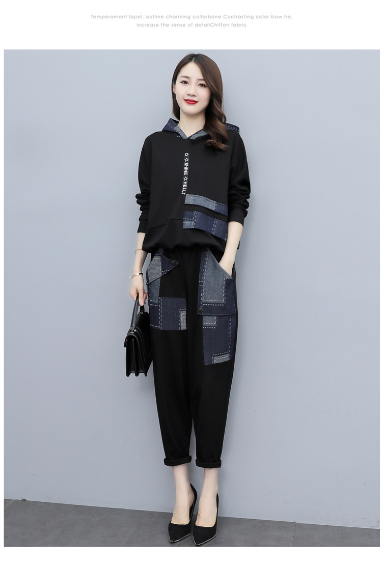时尚气质减龄个性拼接连帽休闲舒适两件套 HR-YZC838-1