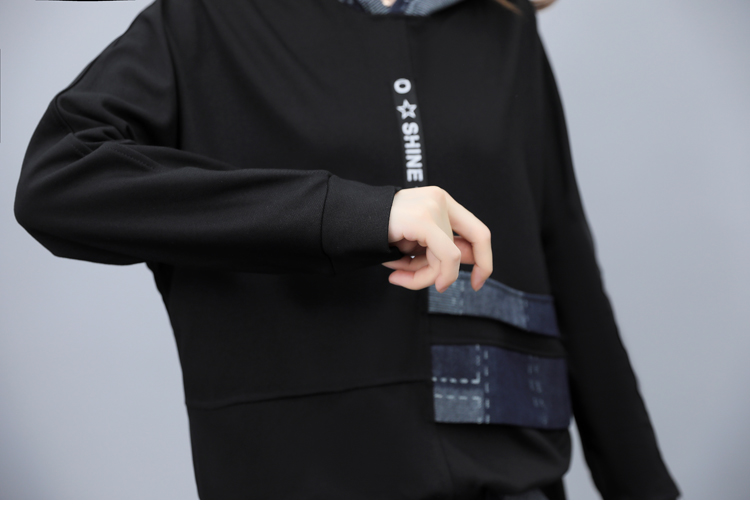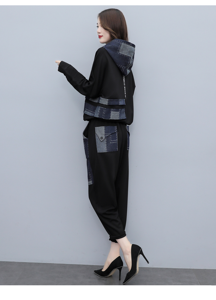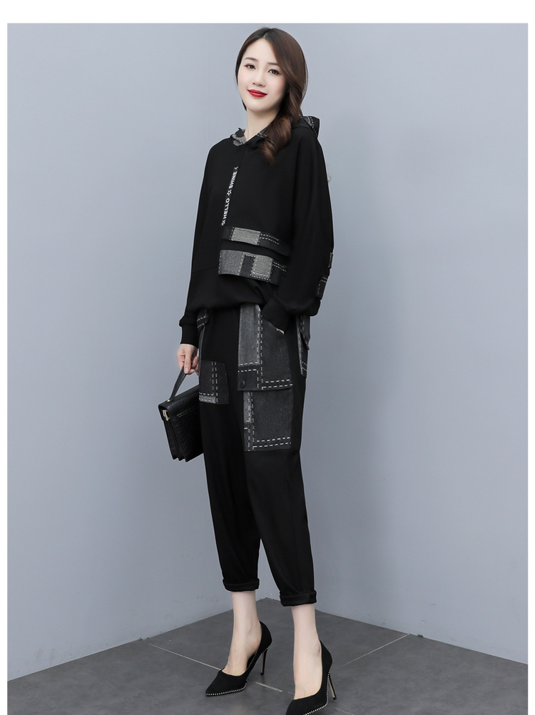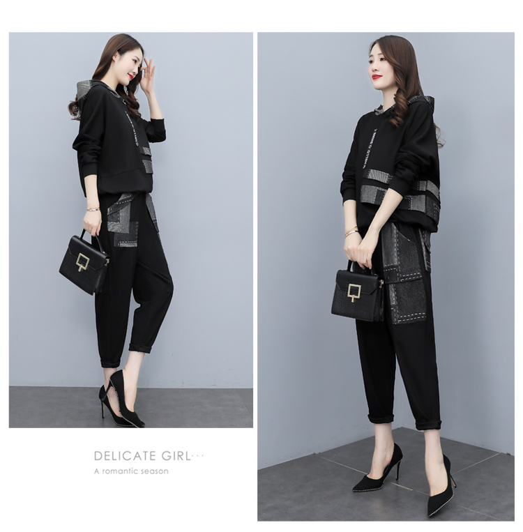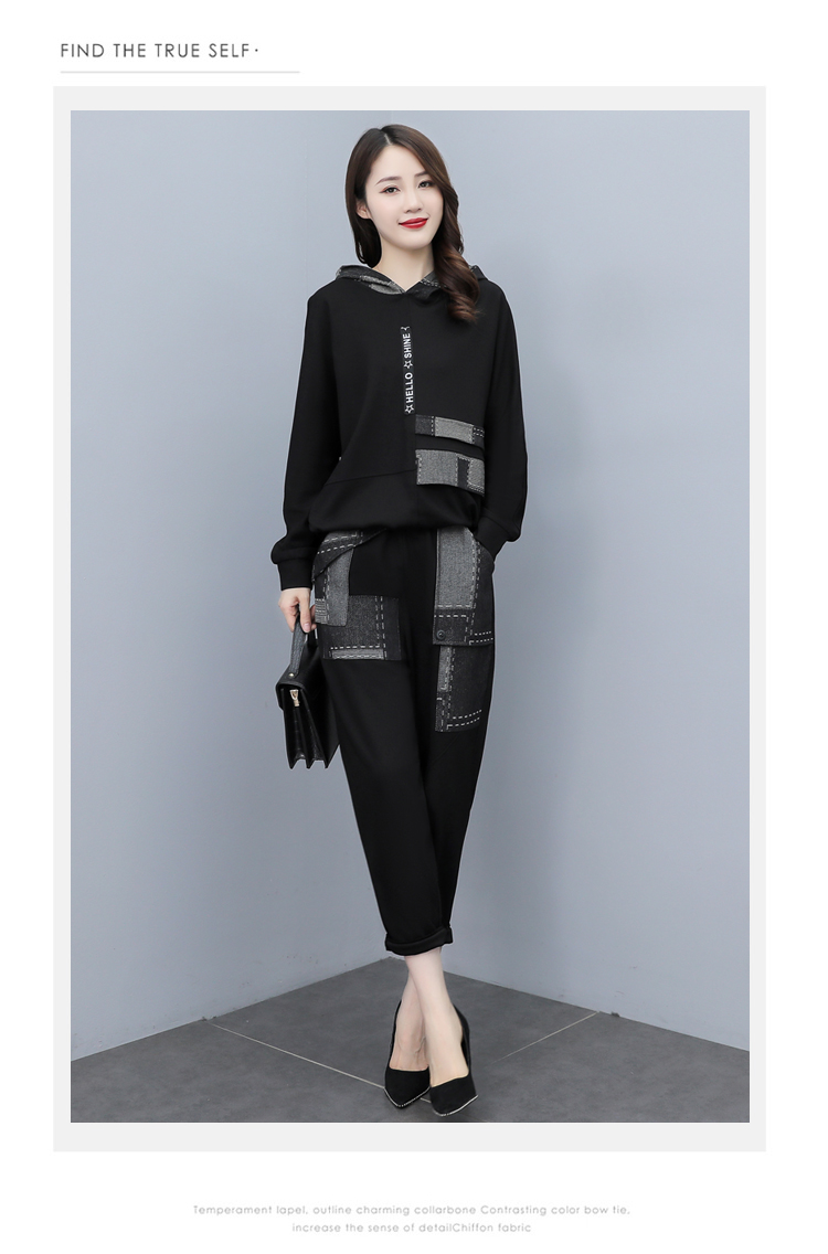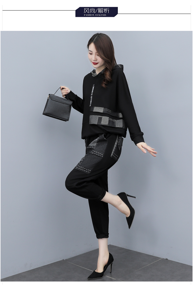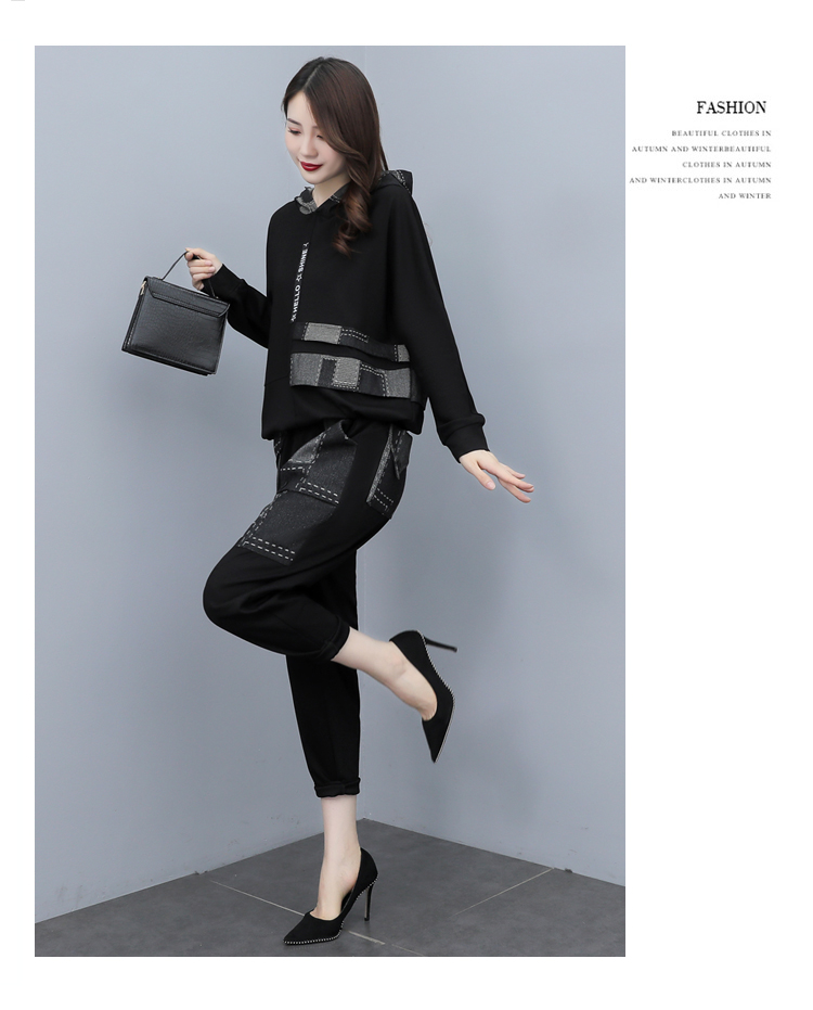 时尚气质减龄个性拼接连帽休闲舒适两件套 HR-YZC838-1