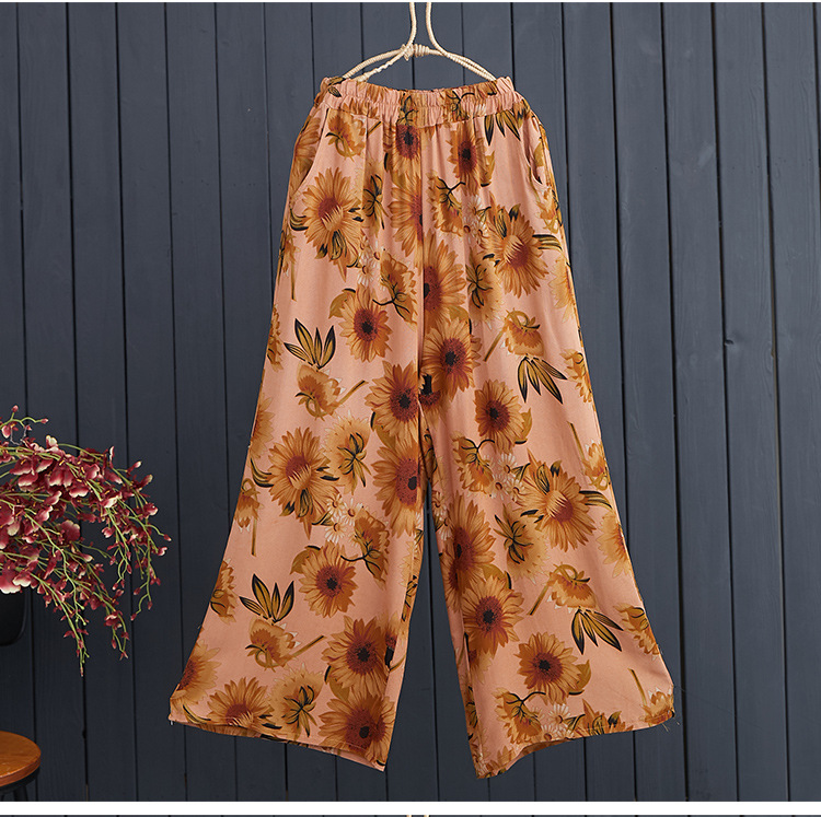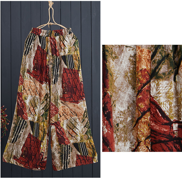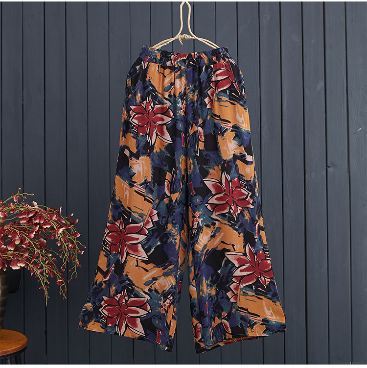 DYK-2662文艺垂感松紧腰宽松大码休闲棉麻阔腿裤