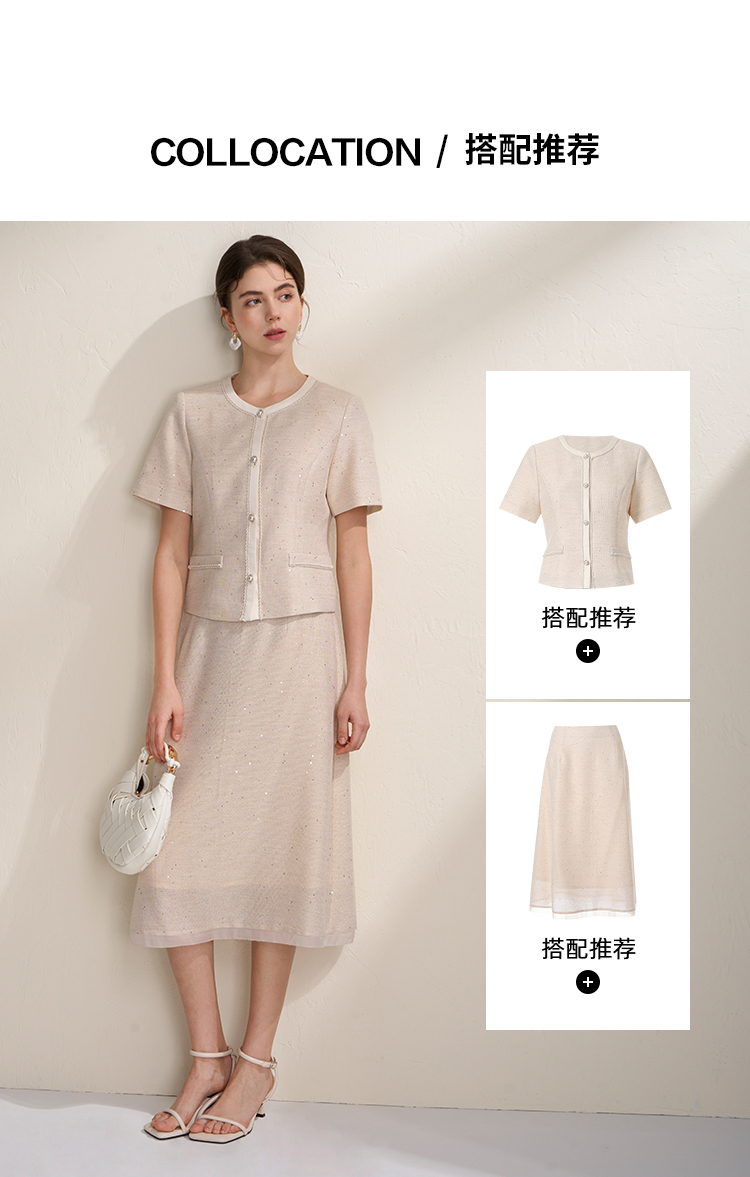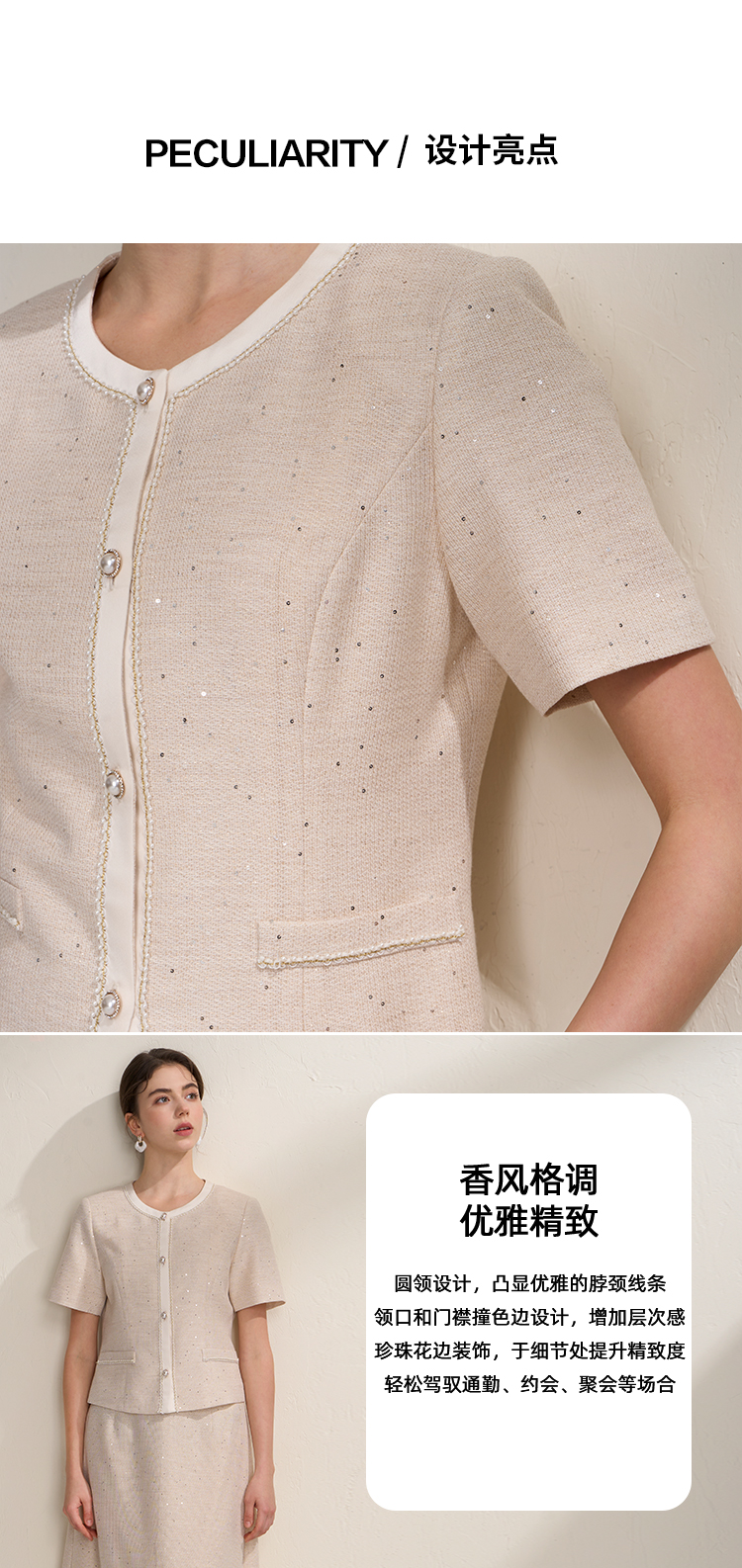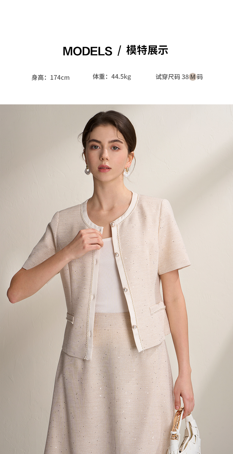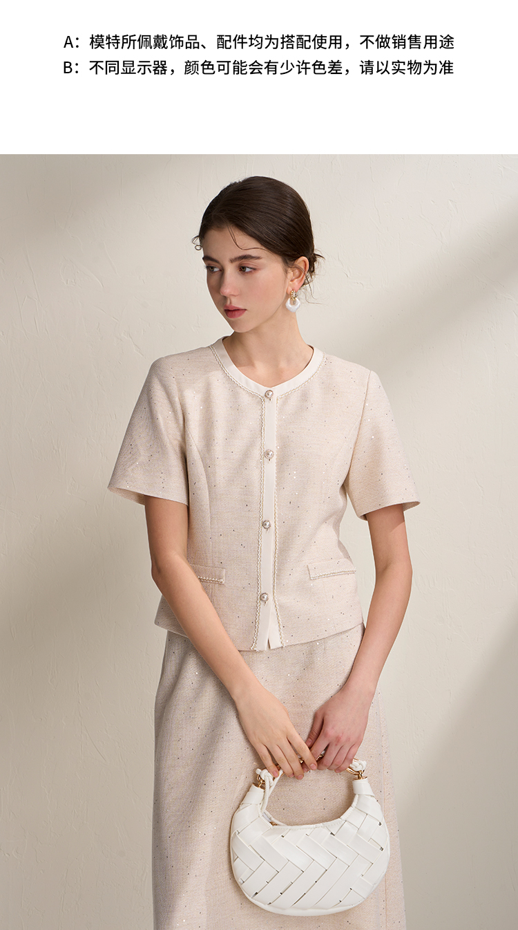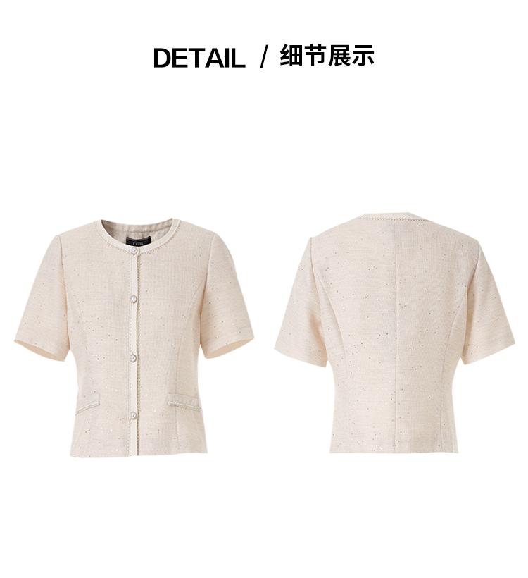 EITIE爱特爱法式小香风亮片金葱短袖精致外套上衣2026夏季新款B2603208