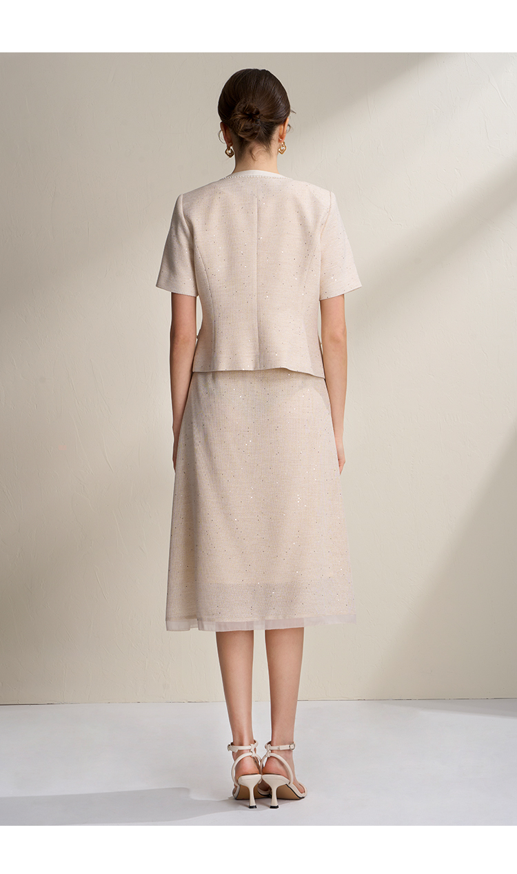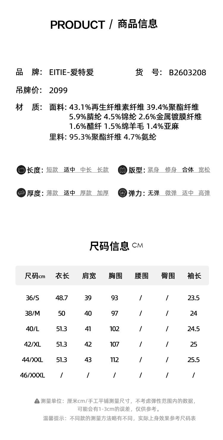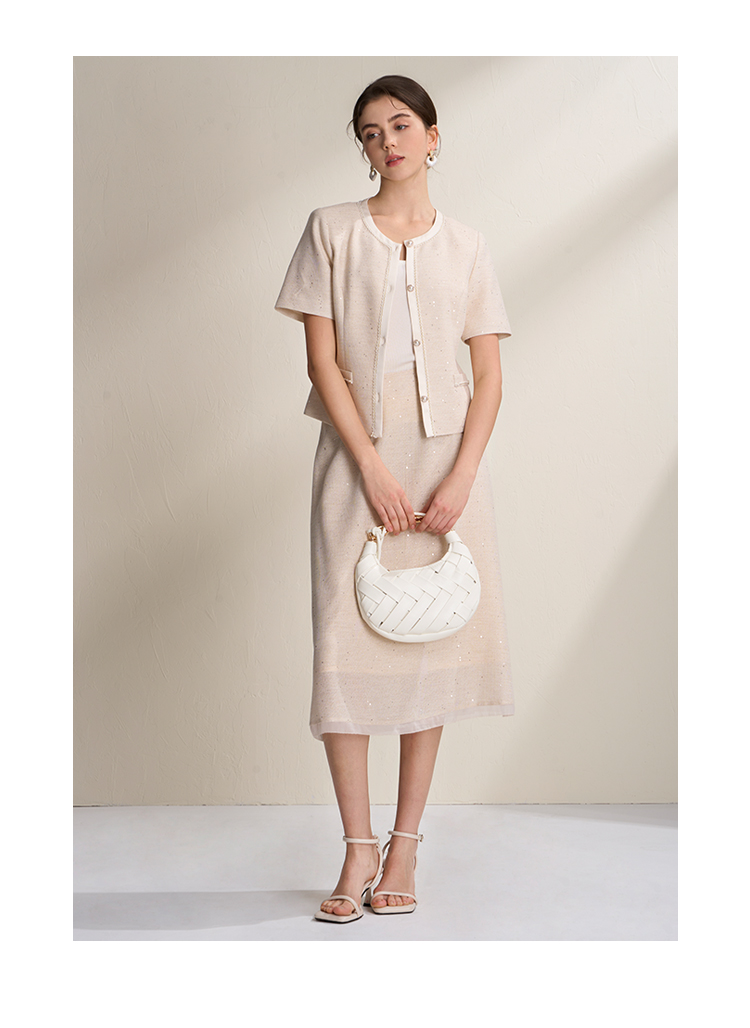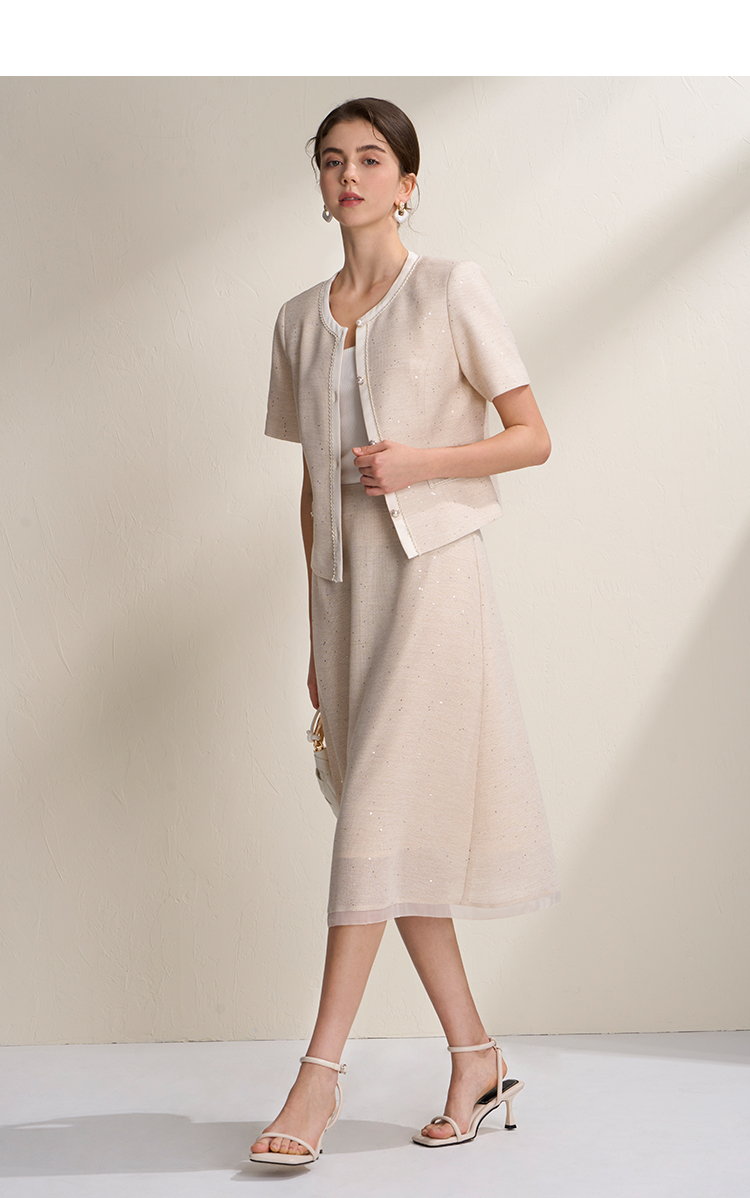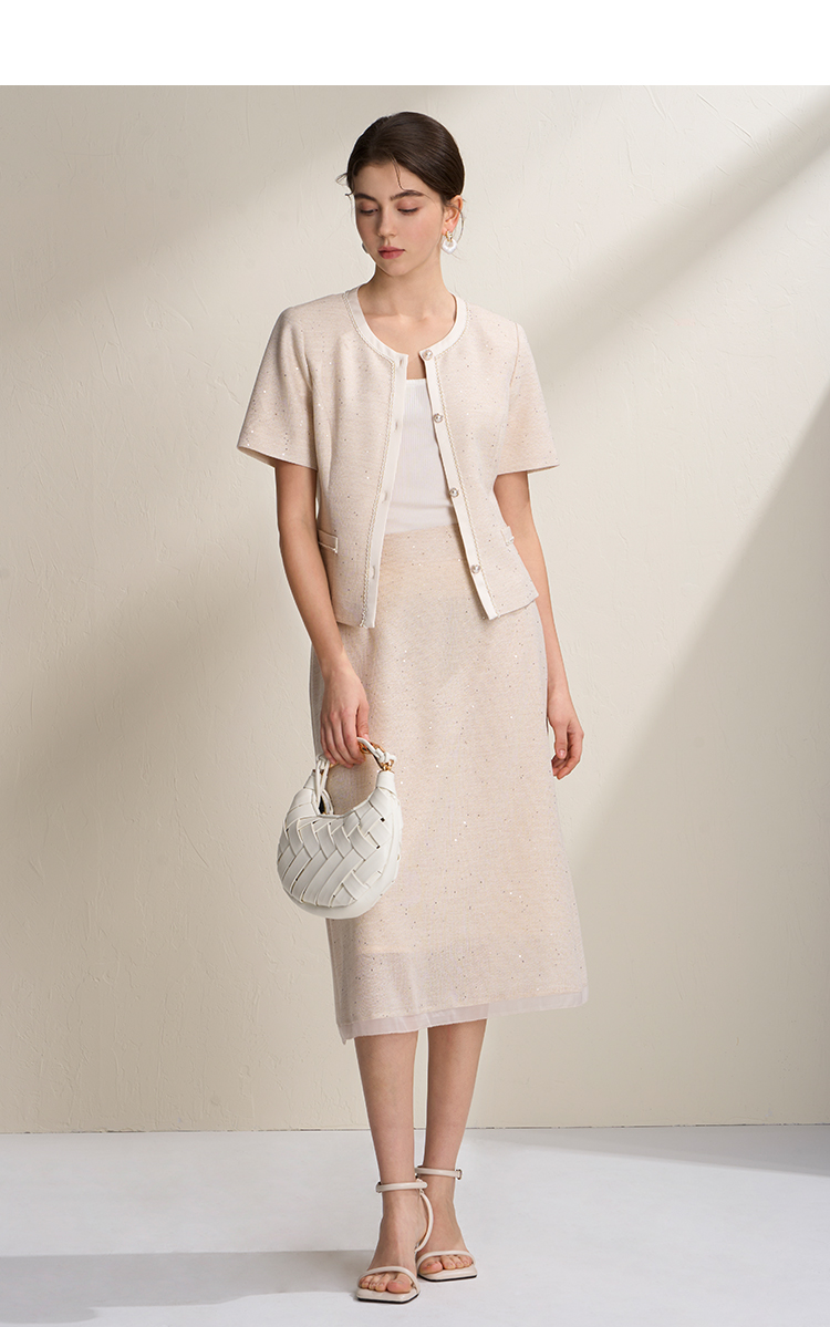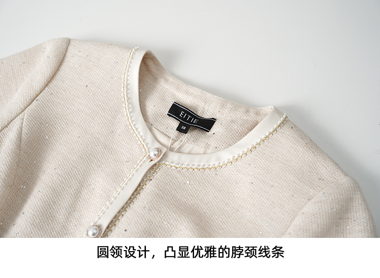 EITIE爱特爱法式小香风亮片金葱短袖精致外套上衣2026夏季新款B2603208
