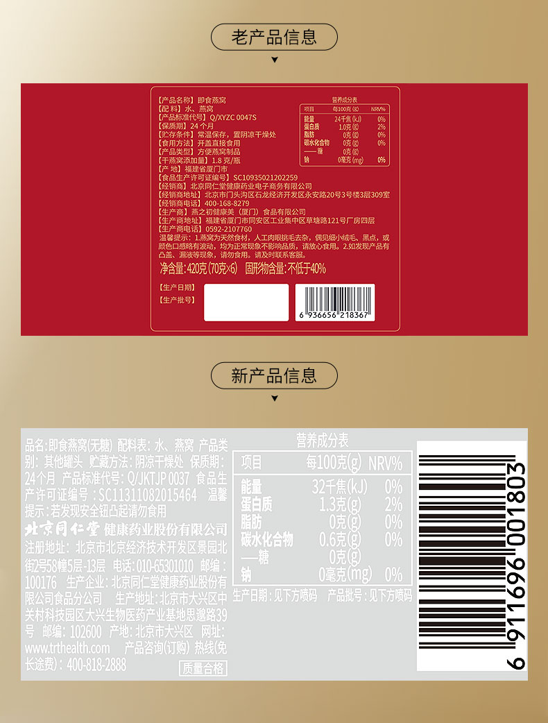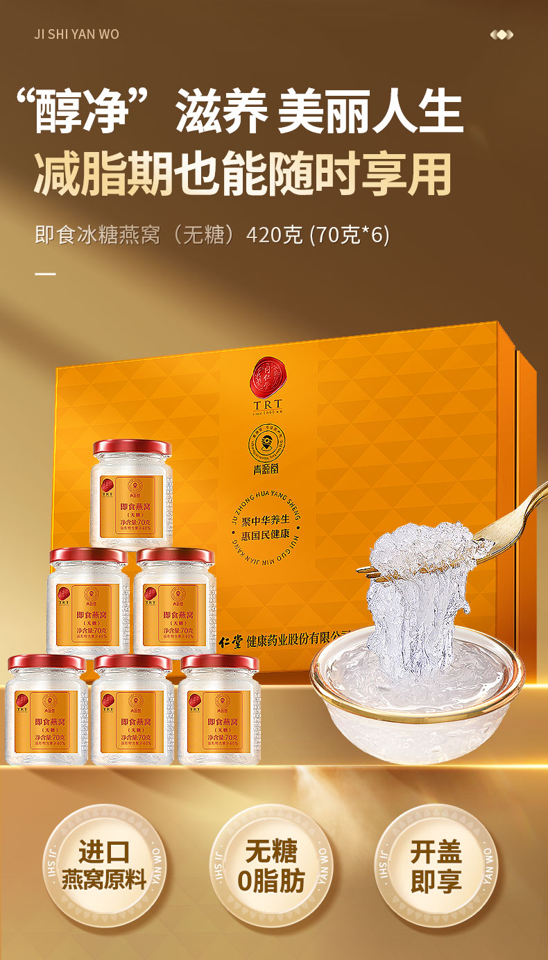 【正宗同仁堂品牌】北京同仁堂 青源堂 即食燕窝 无糖款 420g(70*6) 礼盒装 浓稠料足 每瓶1.8克干燕窝含量SY