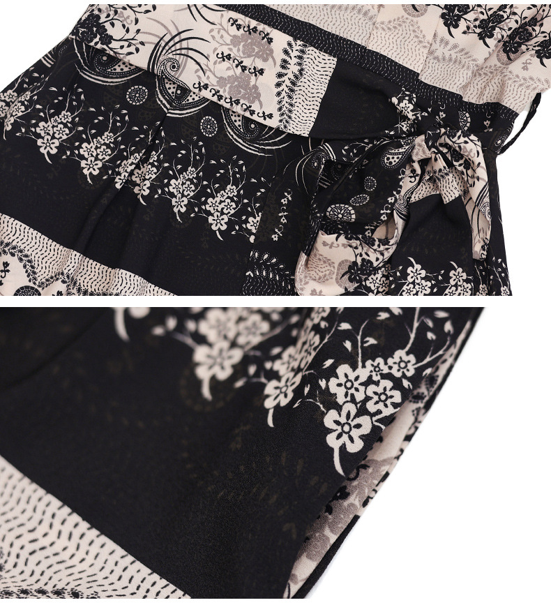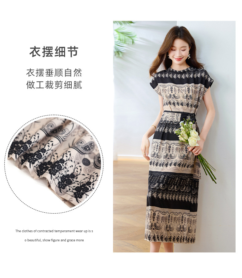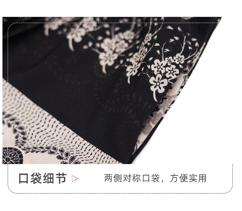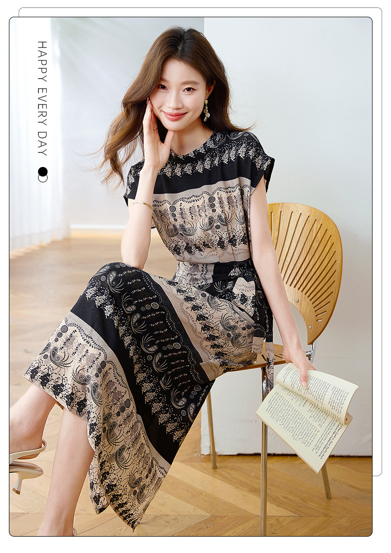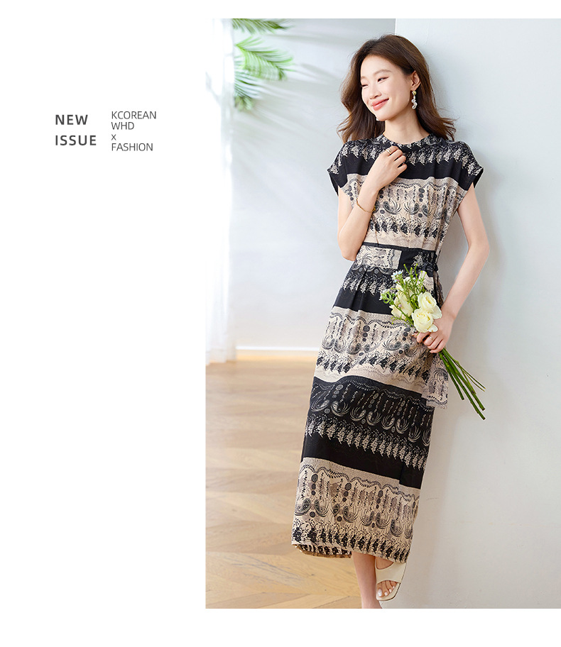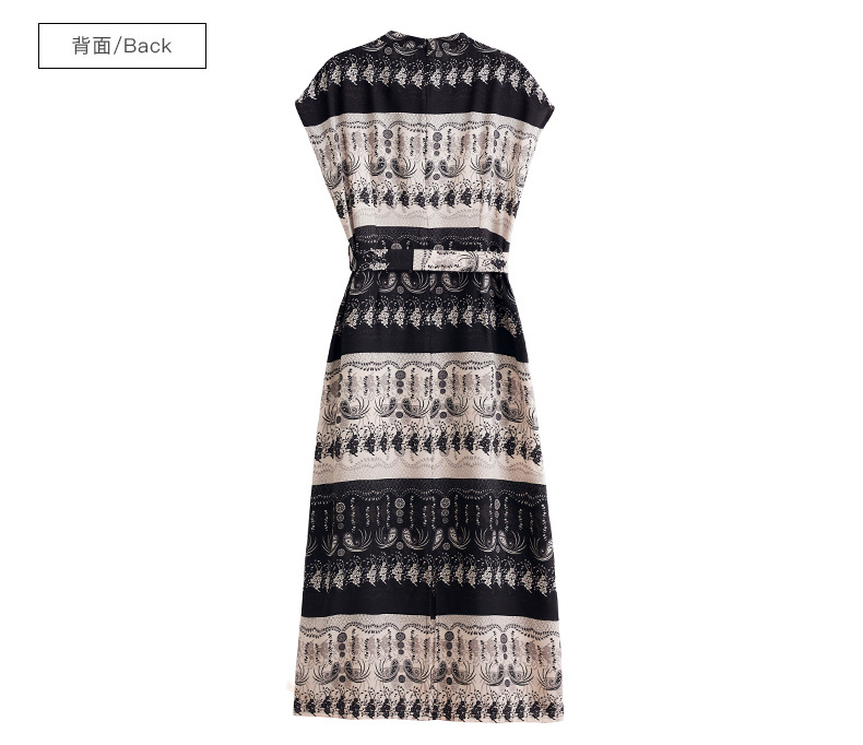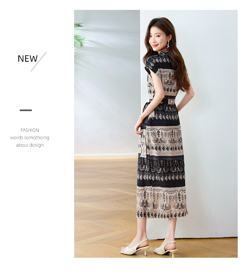 雀说新款女装显瘦气质圆领印花修身长款系带时尚连衣裙AL5013