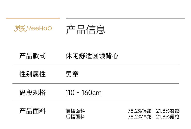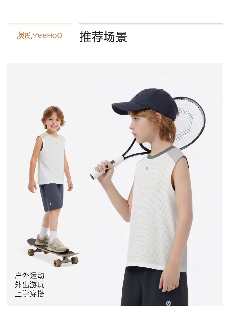 英氏儿童衣服夏季凉感防晒圆领背心男童运动背心休闲上衣26新款