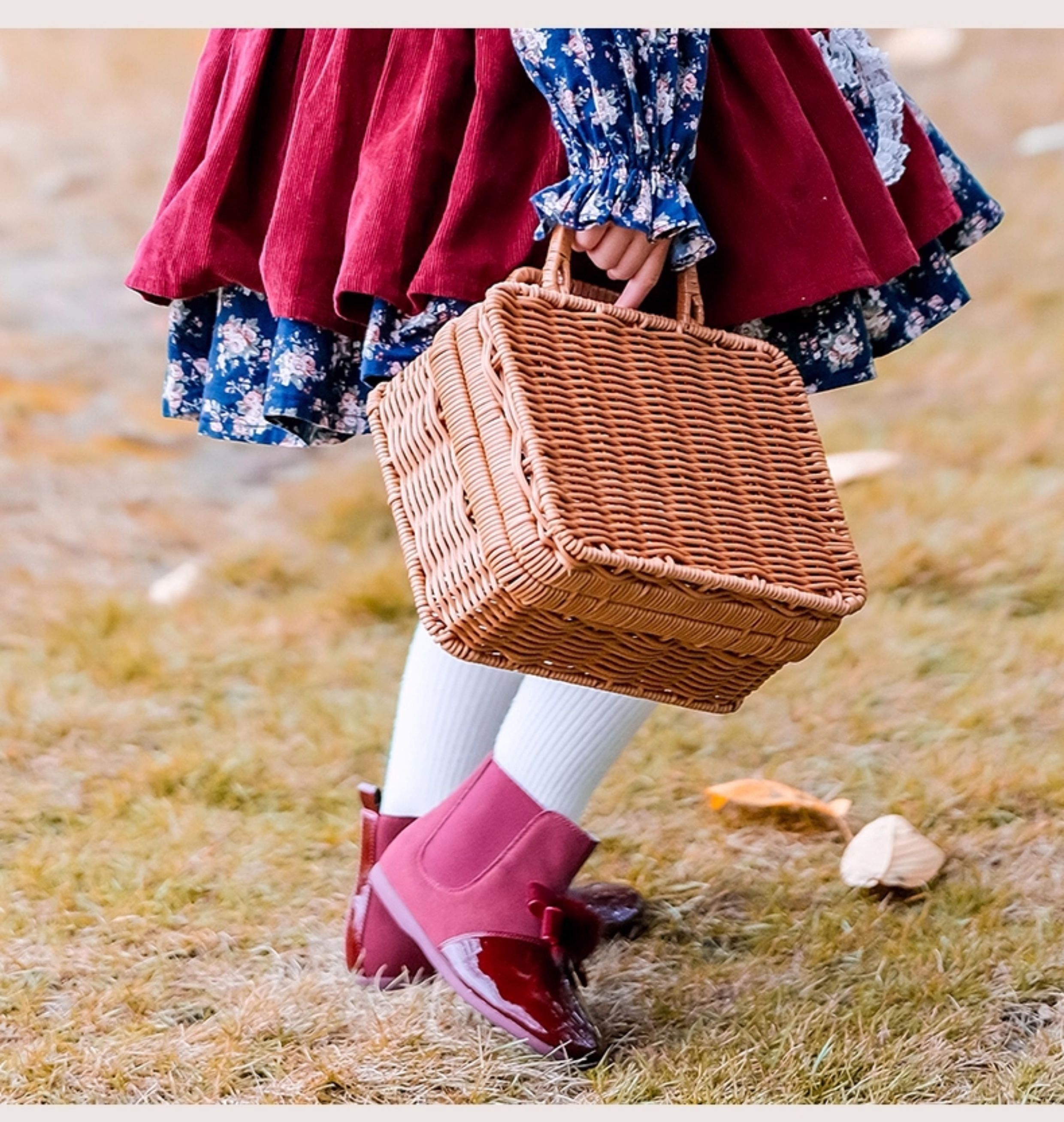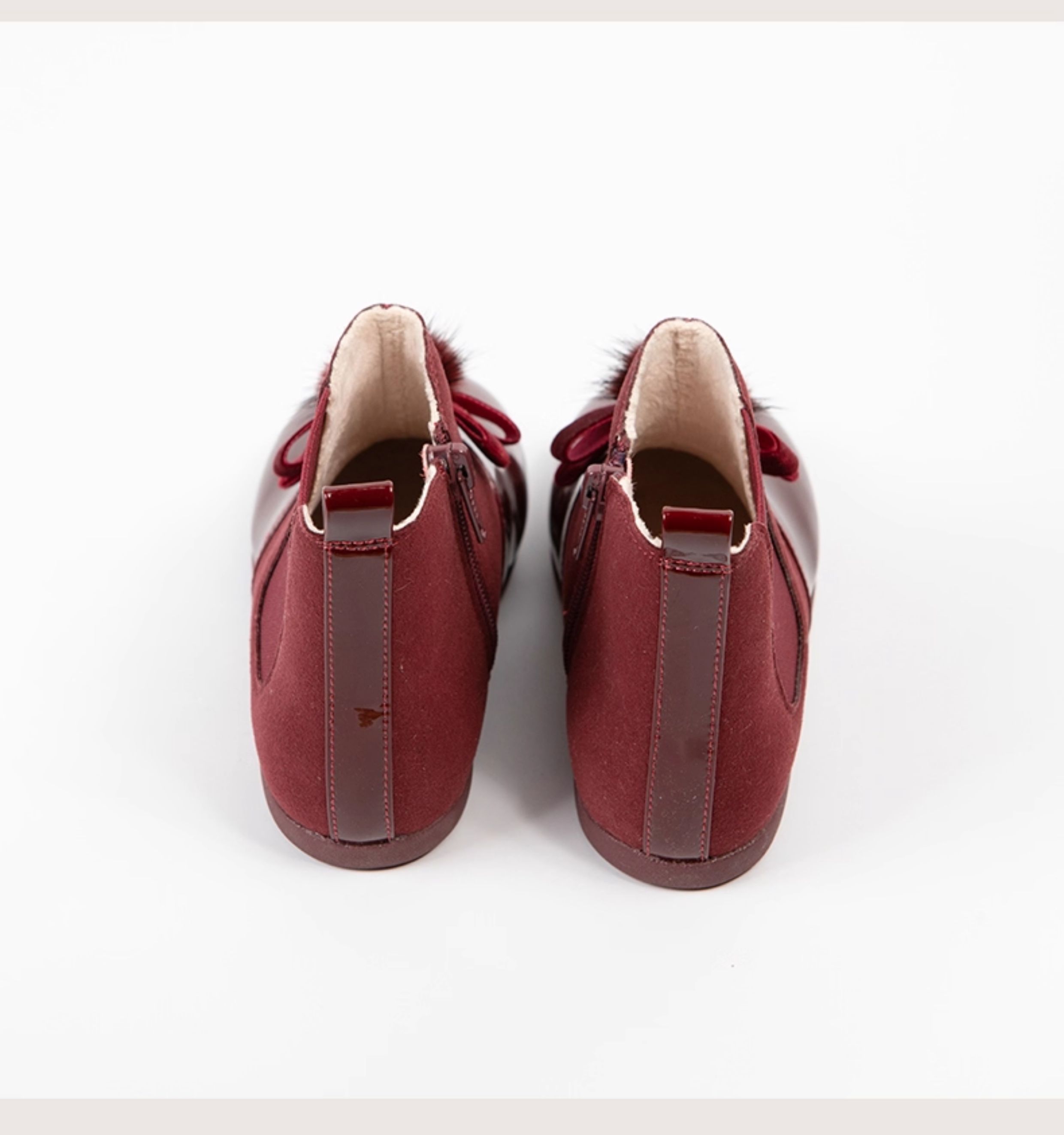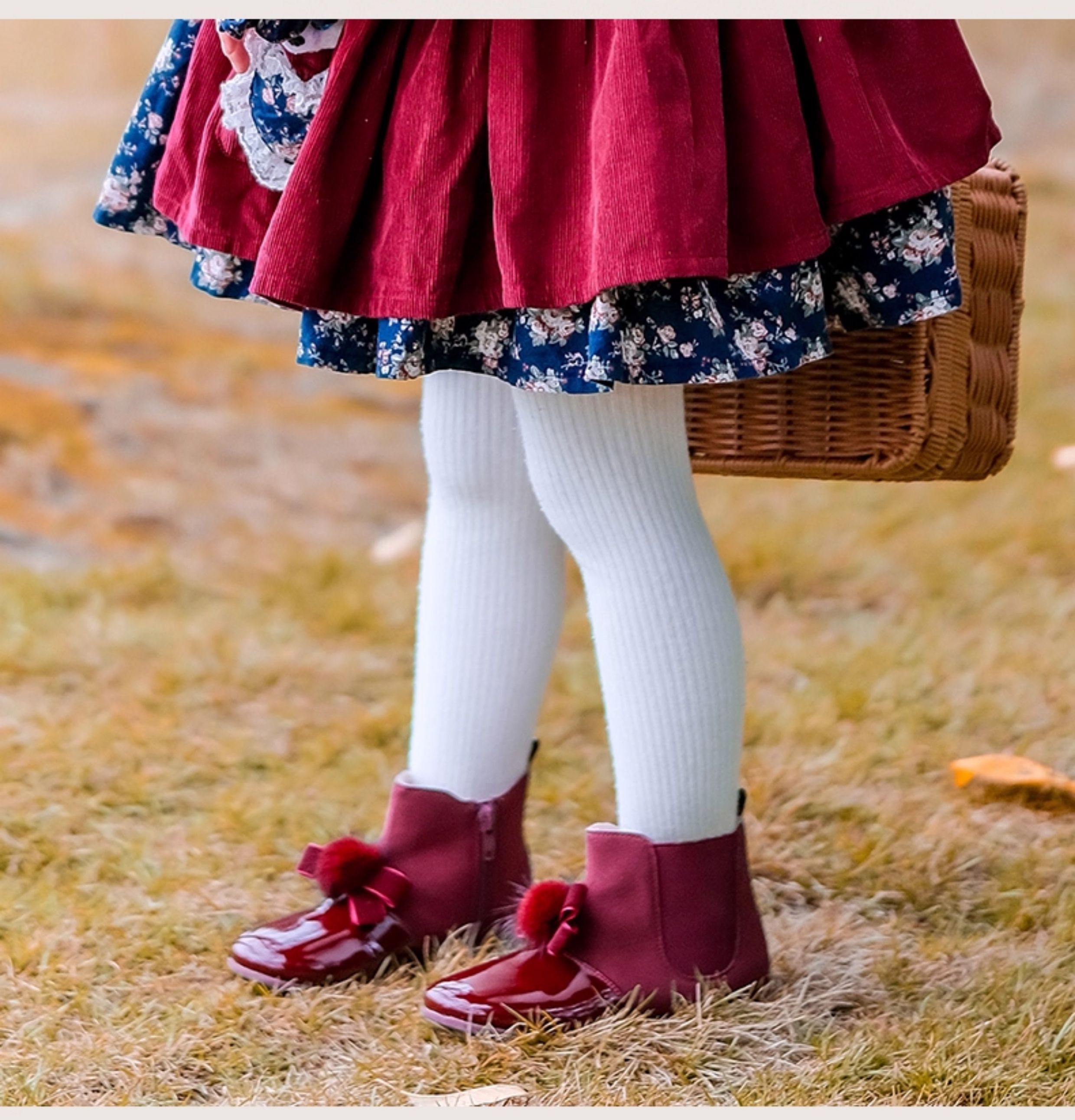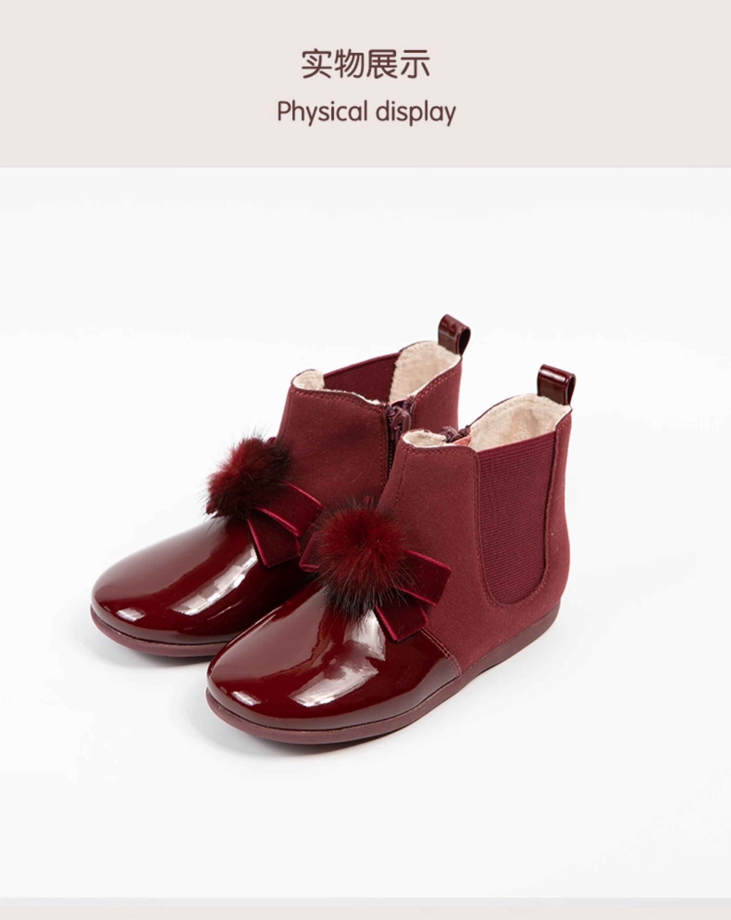 春节不打烊-西班牙little winkaa蝴蝶结毛球短靴女童公主皮靴2025新款冬季加绒