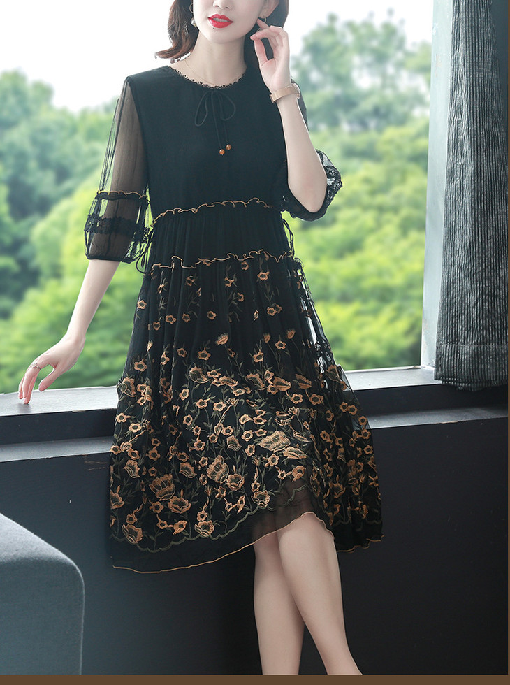 AHM-xysp7016复古森系甜美气质大码显瘦裙【优】