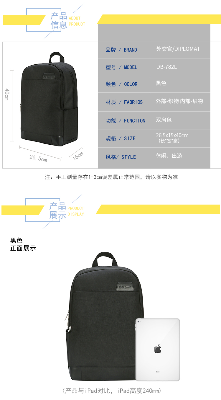 Diplomat外交官DB-782L黑色商务时尚双肩背包商场款-分销