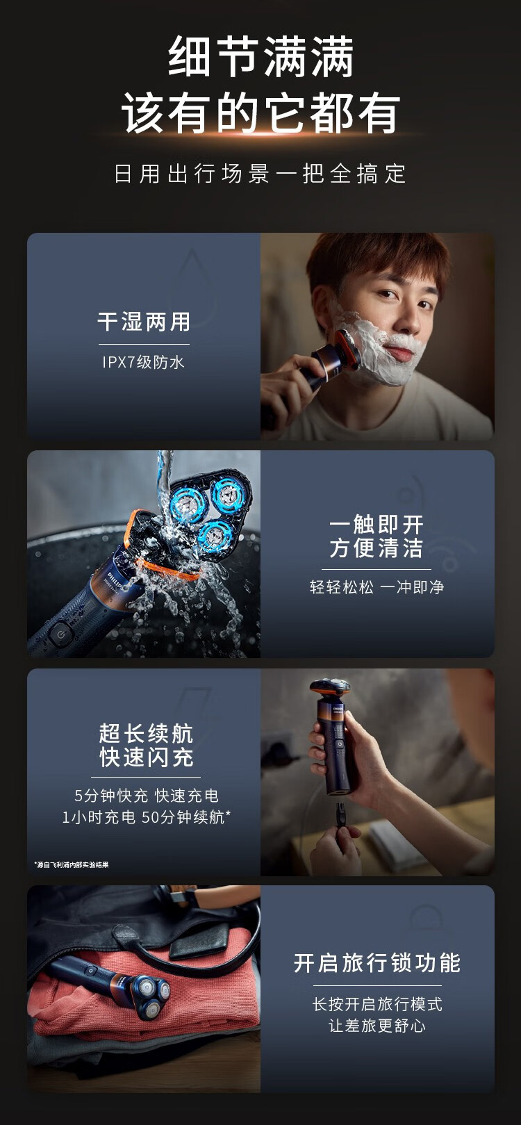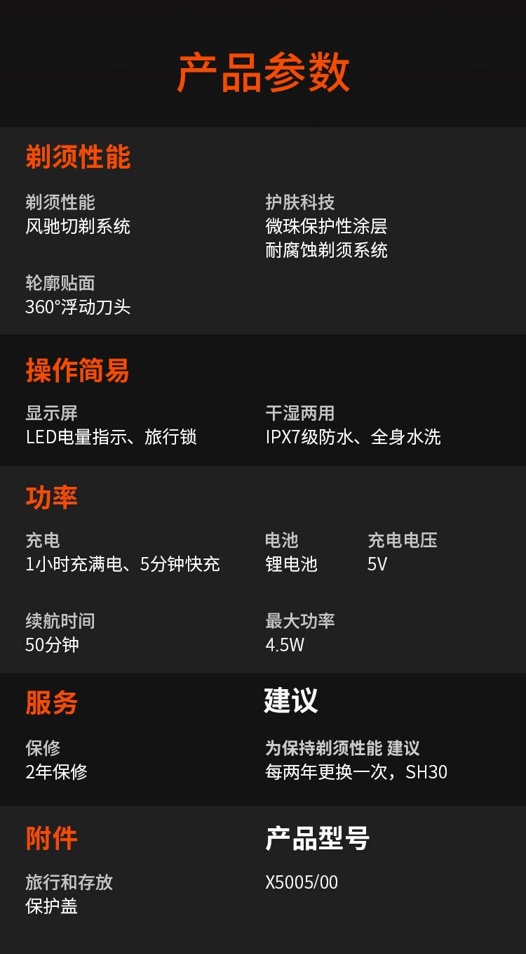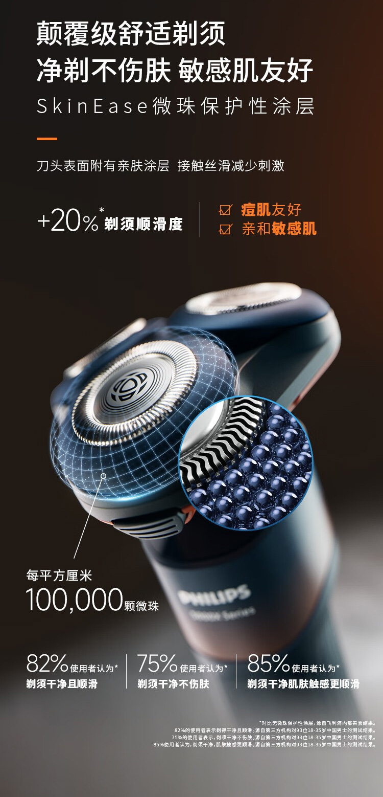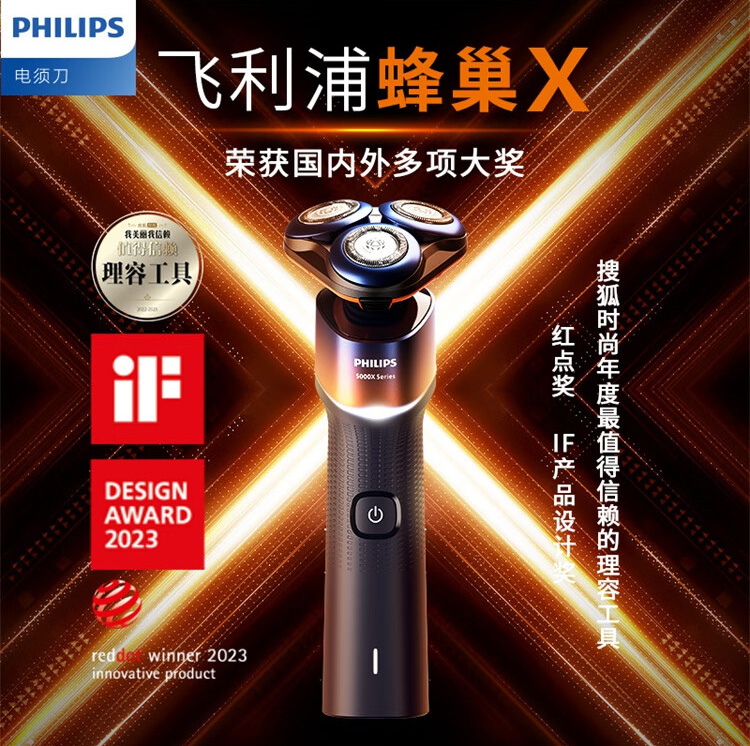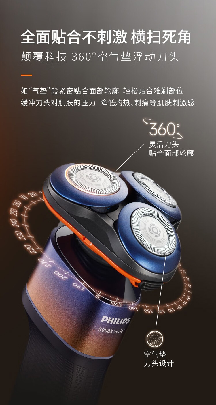 飞利浦PHILIPS全新5系蜂巢X剃须刀电动胡须刀 SkinEase肌能舒缓科技刮胡刀 【蜂巢X渐变橙】X5005