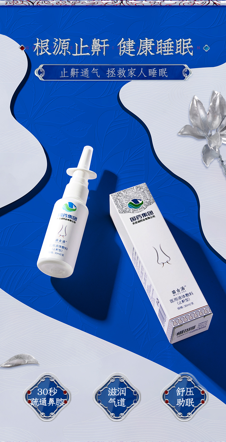 【睡前一喷整晚无鼾】国药集团天目湖苗古汤医用液体敷料止鼾喷剂草本植萃修护组织弹性温和止鼾型辅助情绪告别打呼噜