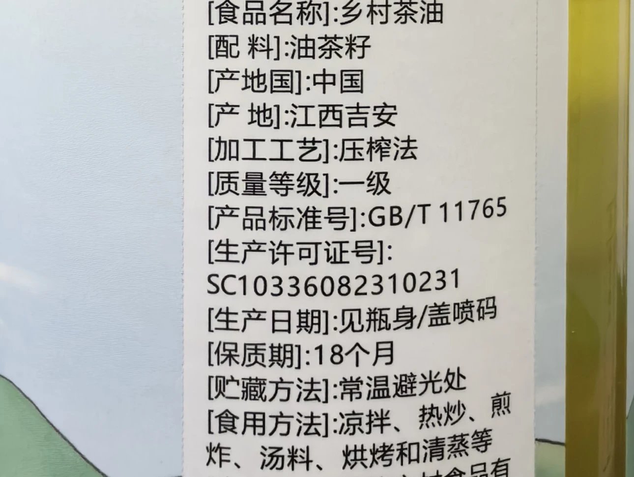 【 品名 】山茶油 【产品名称】:乡村茶油 【配料】:油茶籽 【产地】:江西吉安 【加工工艺】:压榨法 【质量等级】:一级 【 规格 】500mL、500mLx2 【 快递 】中通/邮政随机 【 产地 】江西吉安 【生产日期】1个月内生产 【发货地】江西省 【保质期】18个月 【发货区域】除新疆西藏青海不发 【发货时效】24~48小时 【不发货区域】东北三省(黑龙江、吉林、辽宁) 【售后】如出现异常情况,请带面单+产品拍照+产品包装照片与我们联系,我们会第一时间处理,如产品有质量问题可在收货24小时之内,联系客服进行售后或者补发 温馨提示⚠️温度过低可能有絮状物为正常物理现象,不影响食用