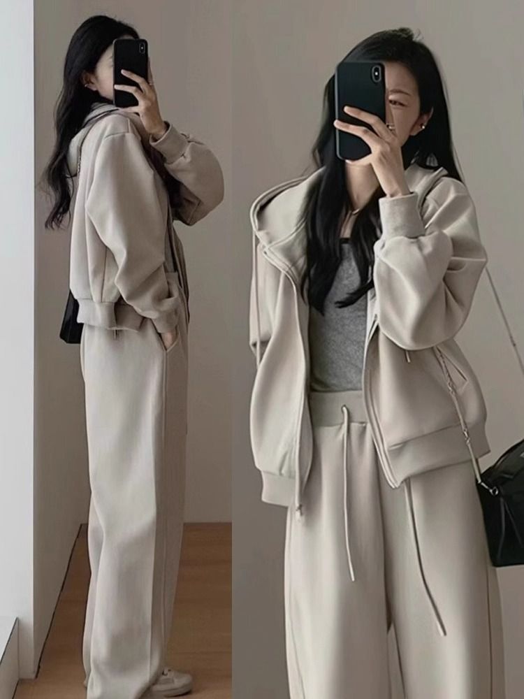 【时尚运动套装】春秋季 宽松显瘦韩版 学生连帽卫衣休闲两件套