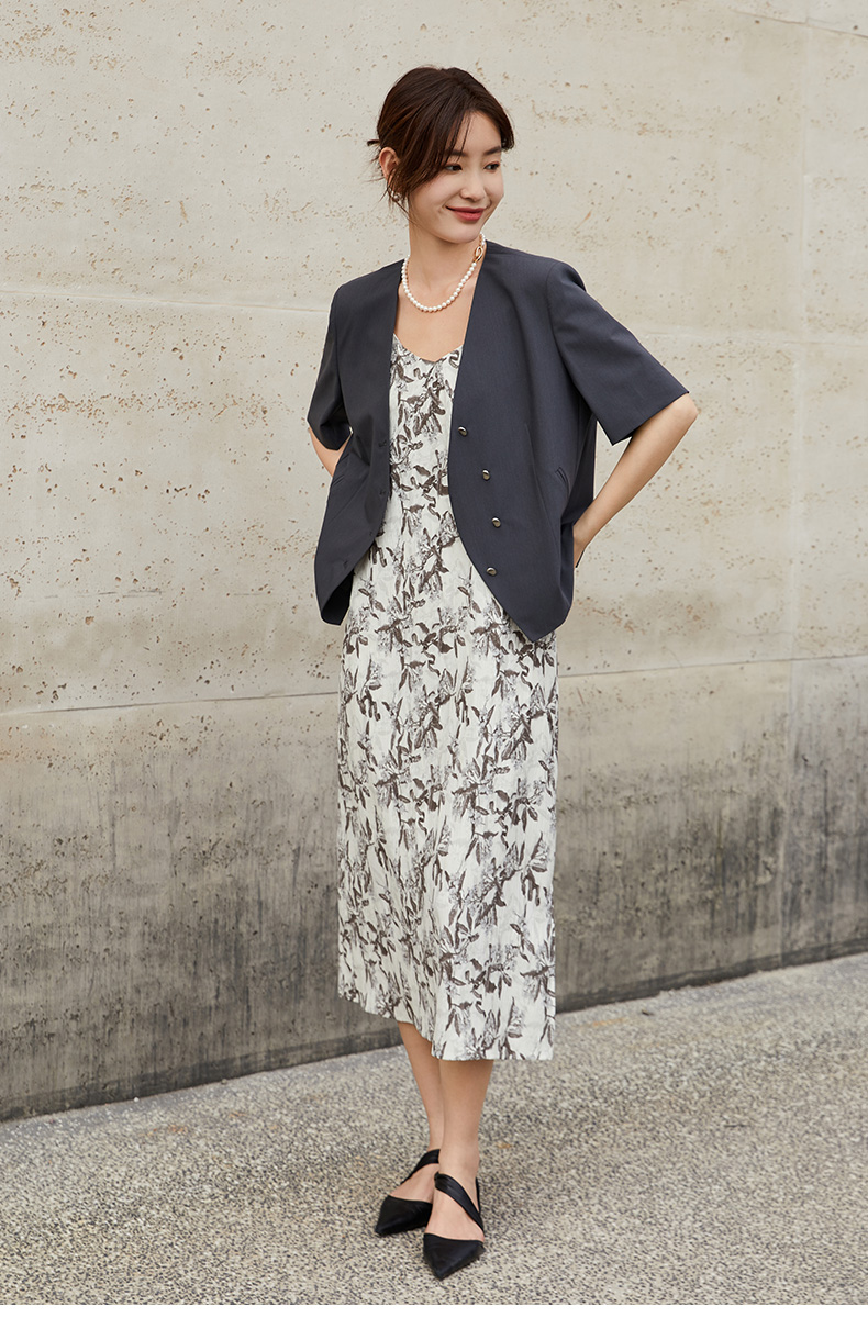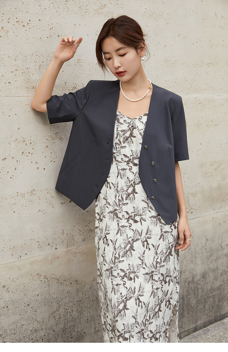 法式温柔风米白色小香风短袖外套女 圆领单排扣短款小西装 小个子通勤百搭开衫