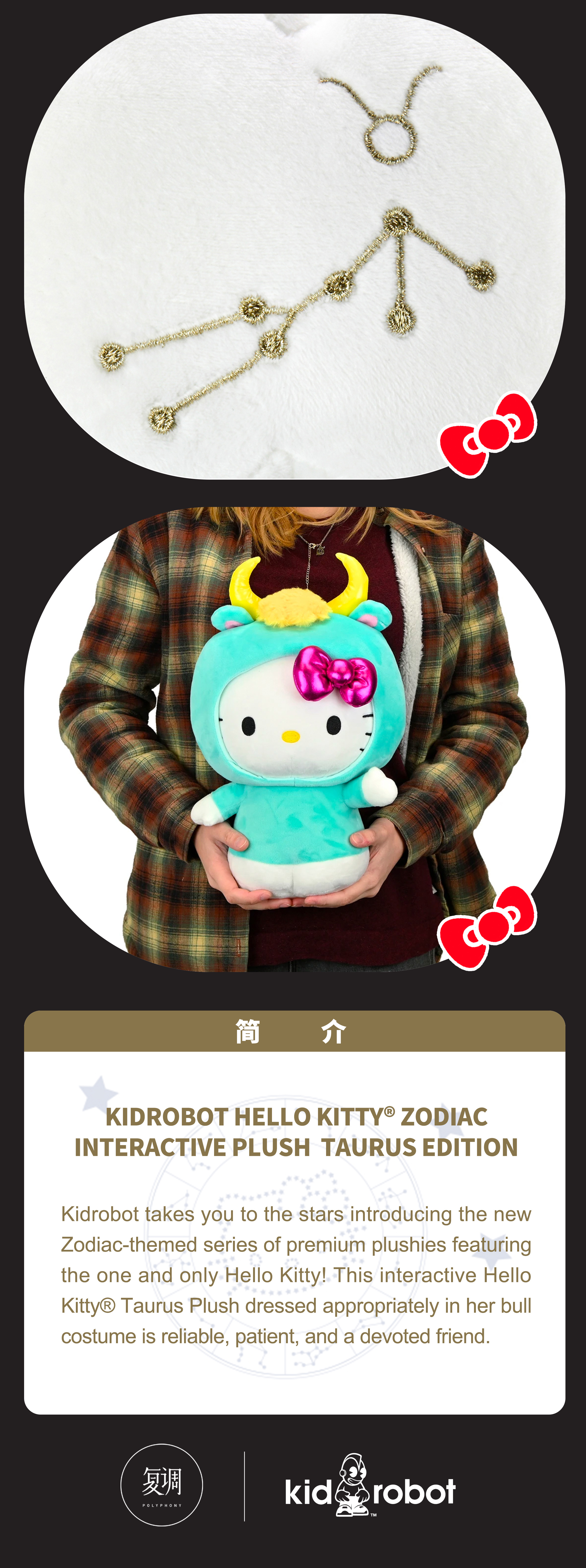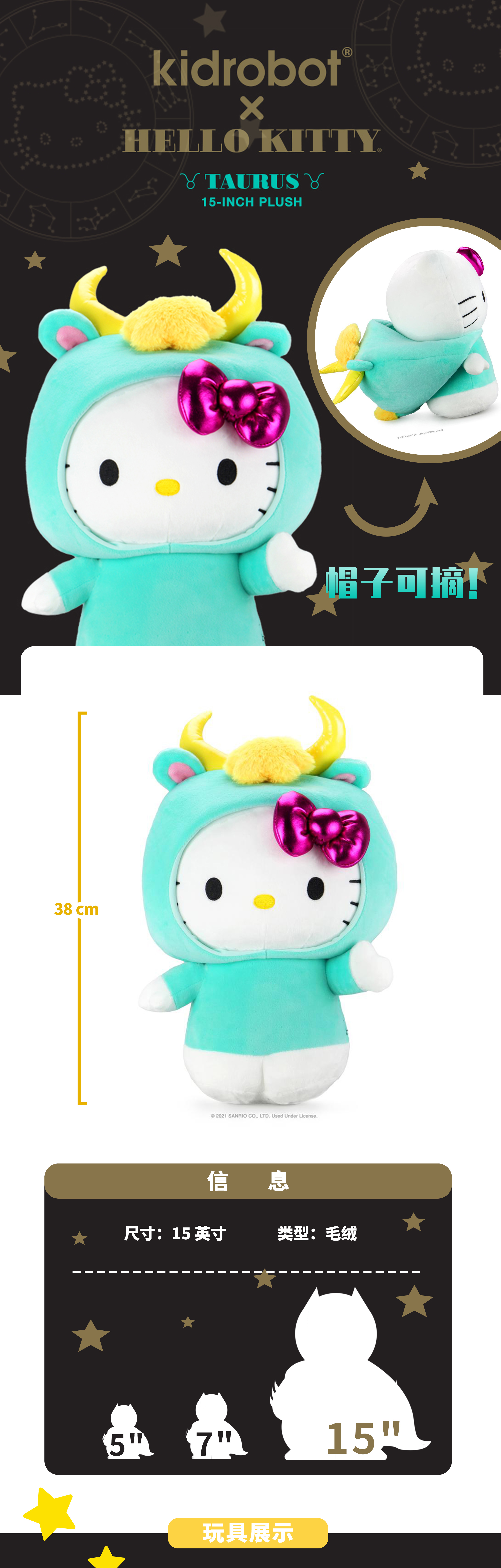 现货 Kidrobot 凯蒂猫 星座毛绒系列 金牛座 Hello Kitty 抱枕 可爱