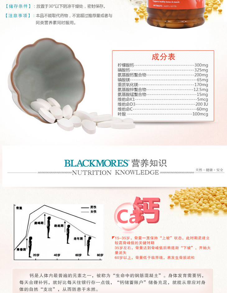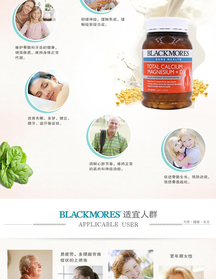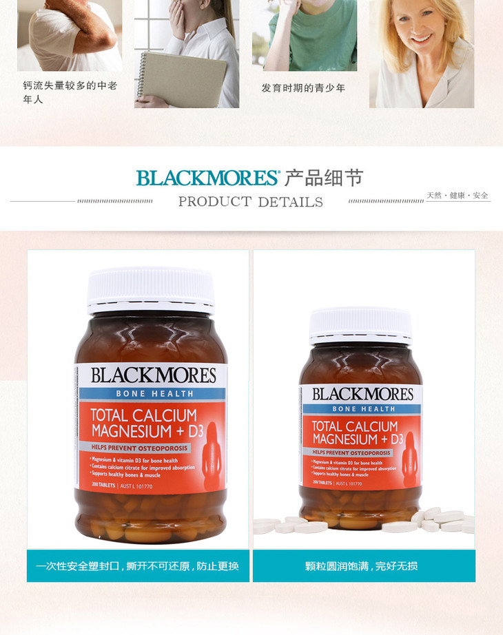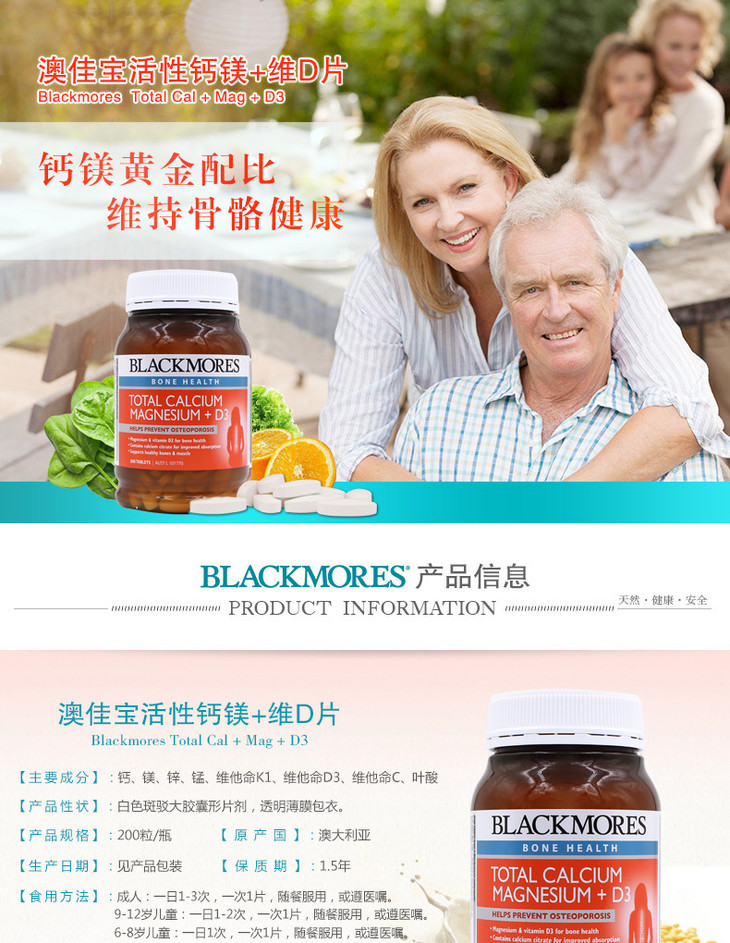 Blackmores total calcium+D3 活性钙镁片+维生素D3 200粒