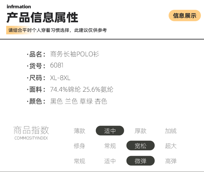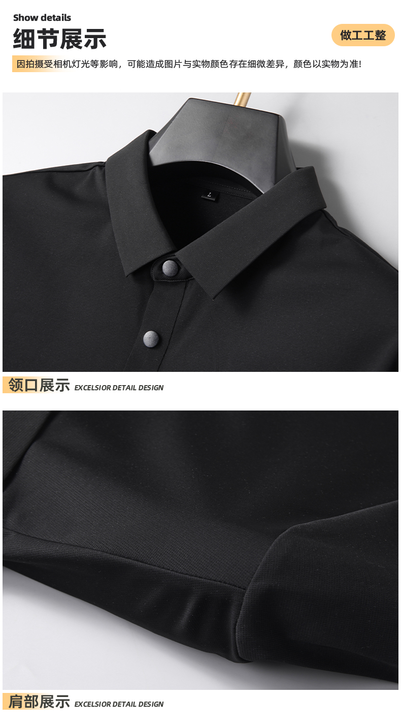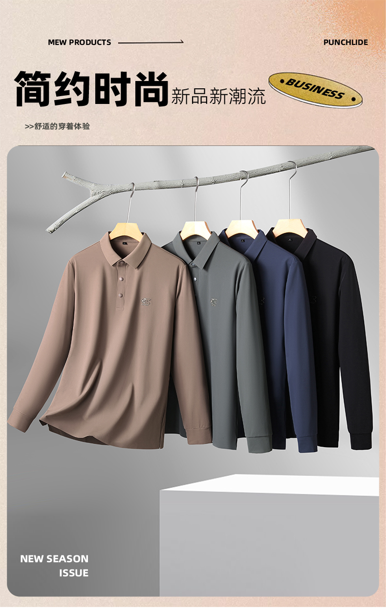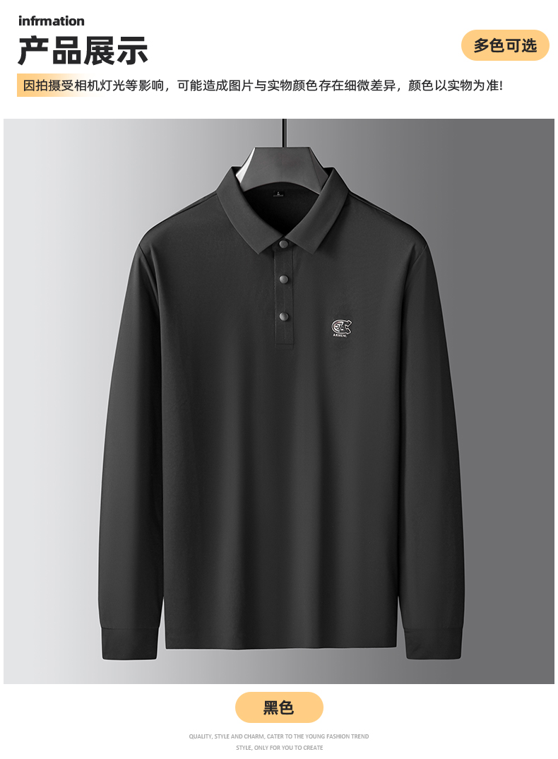 【新款DK】大依优型大码长袖Polo衫锦氨无痕翻领男士加肥加大休闲大码男装宽松长袖体恤上衣