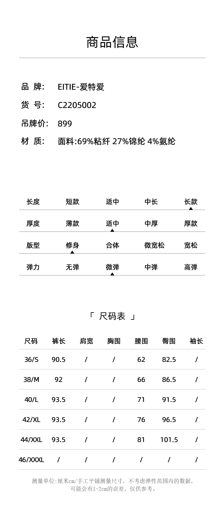 EITIE爱特爱秋季新款时尚百搭小脚裤打底裤高腰长裤C2205002