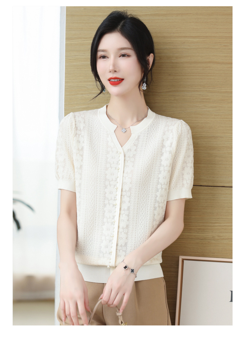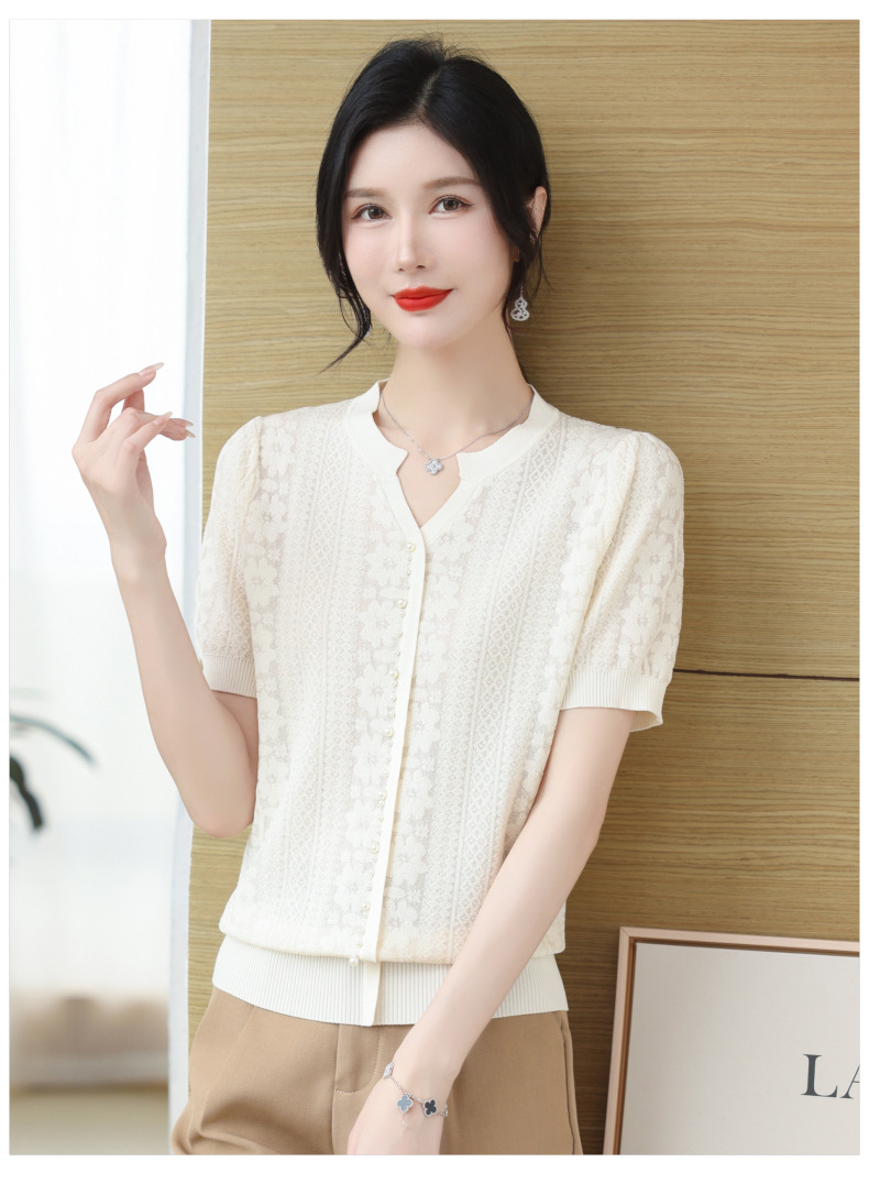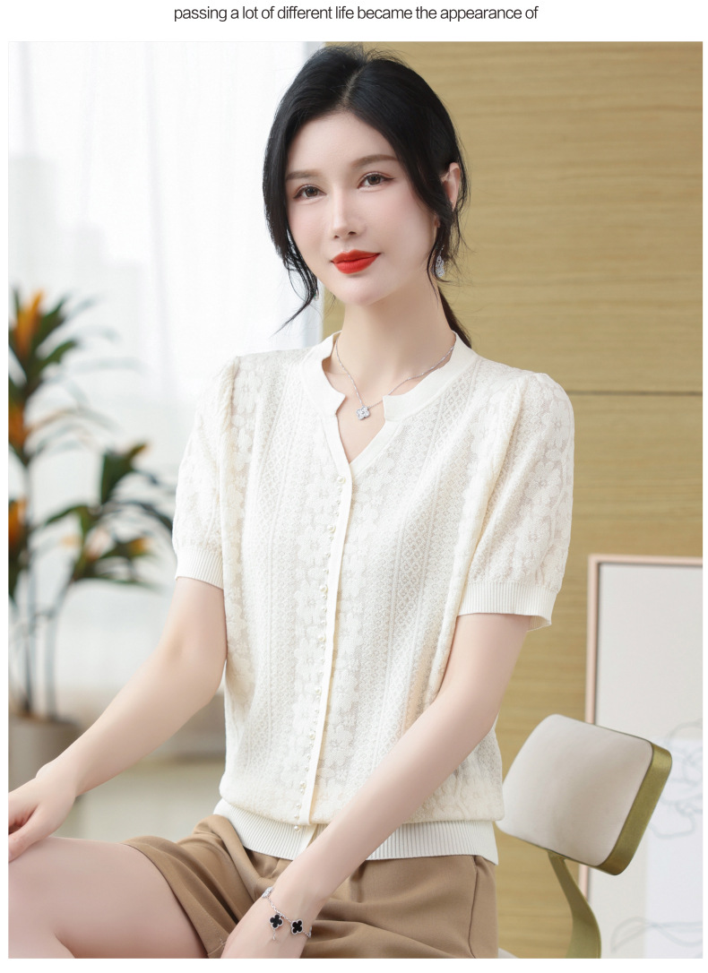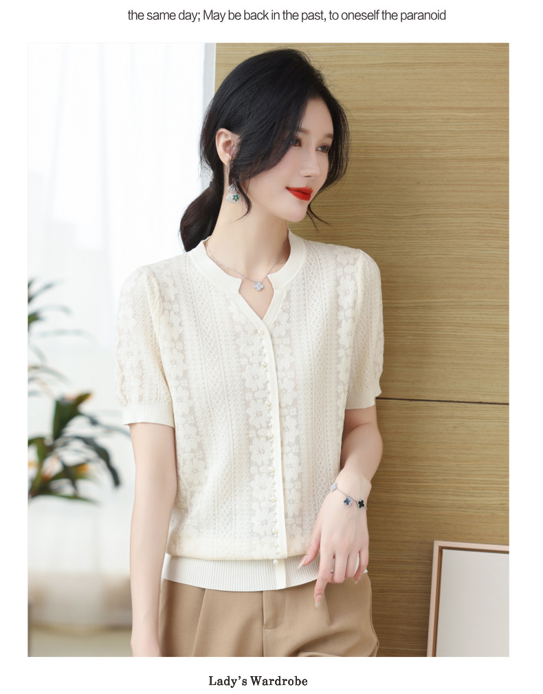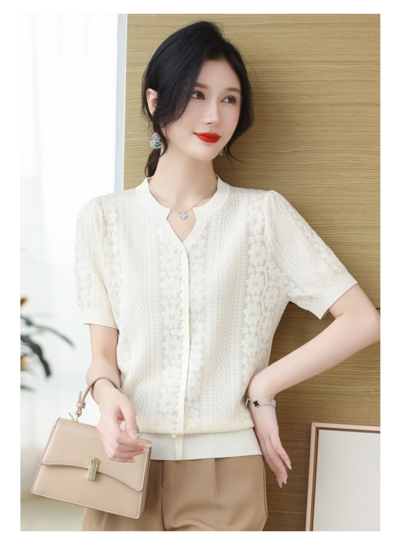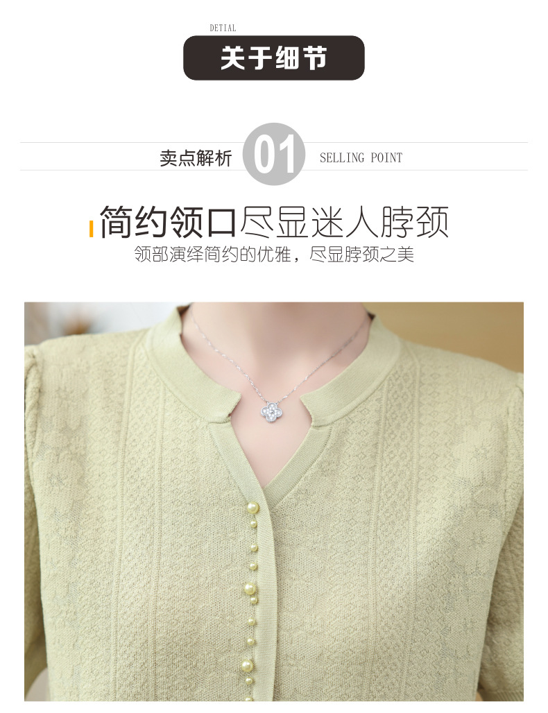 百媚生 蚕丝羊毛蕾丝假两件针织开衫外套V领上衣NS-6010A-70