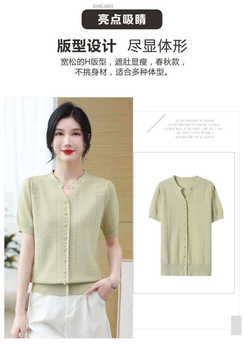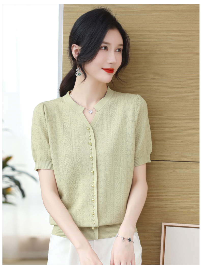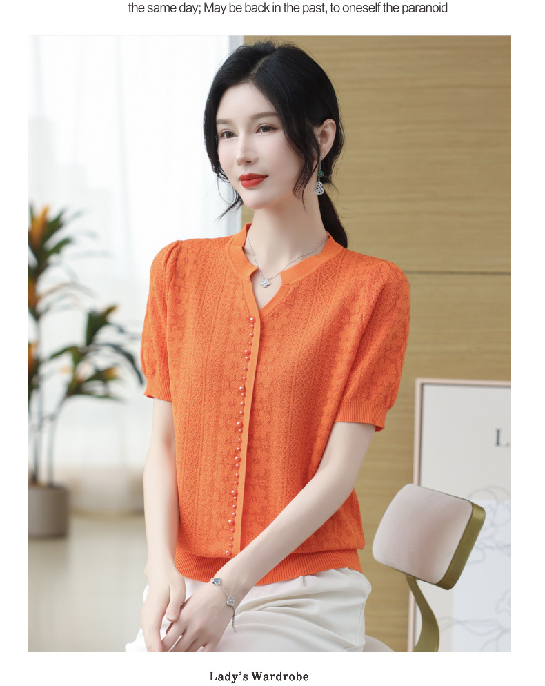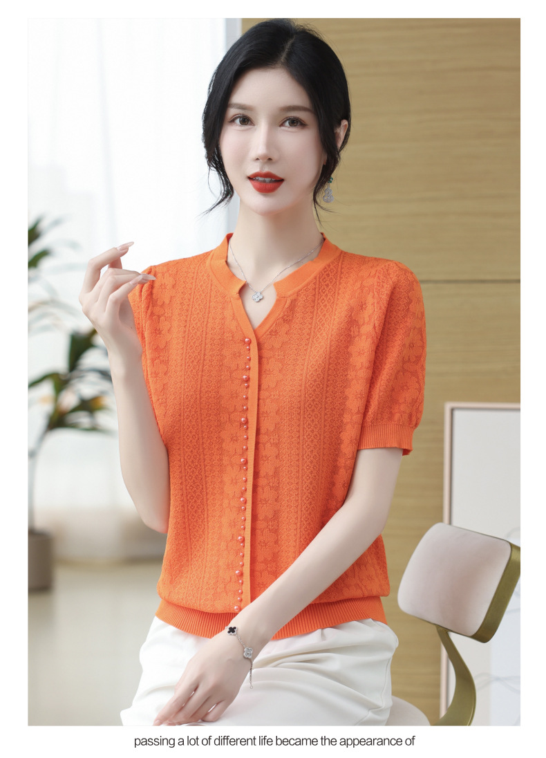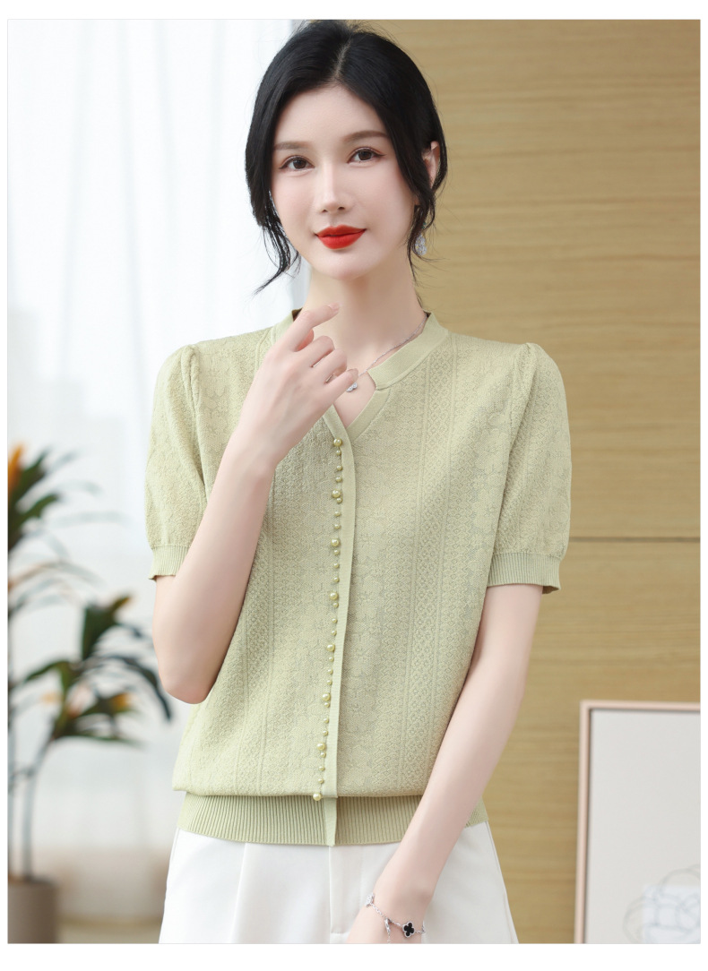 雀说冰丝短袖t恤新款洋钉珠气显瘦体恤衫针织衫宽松上衣AL