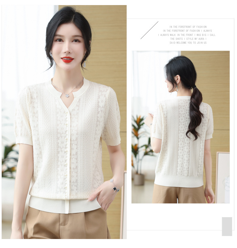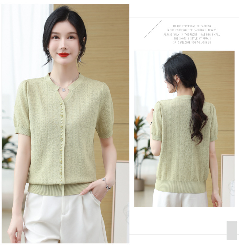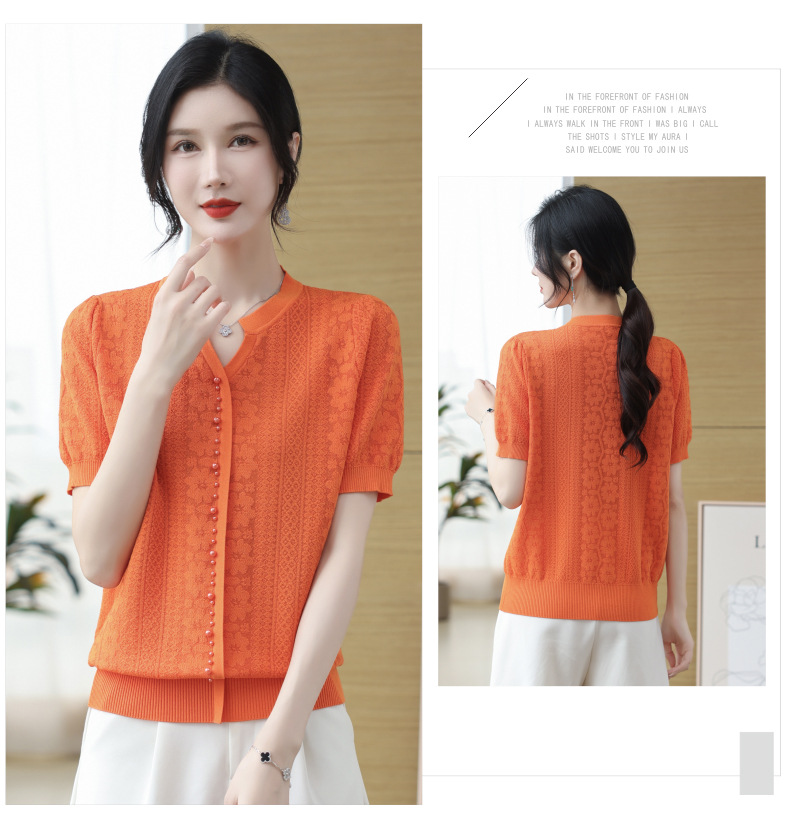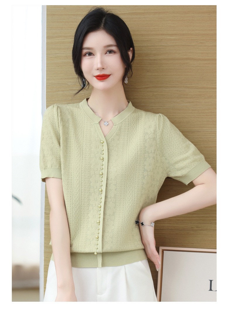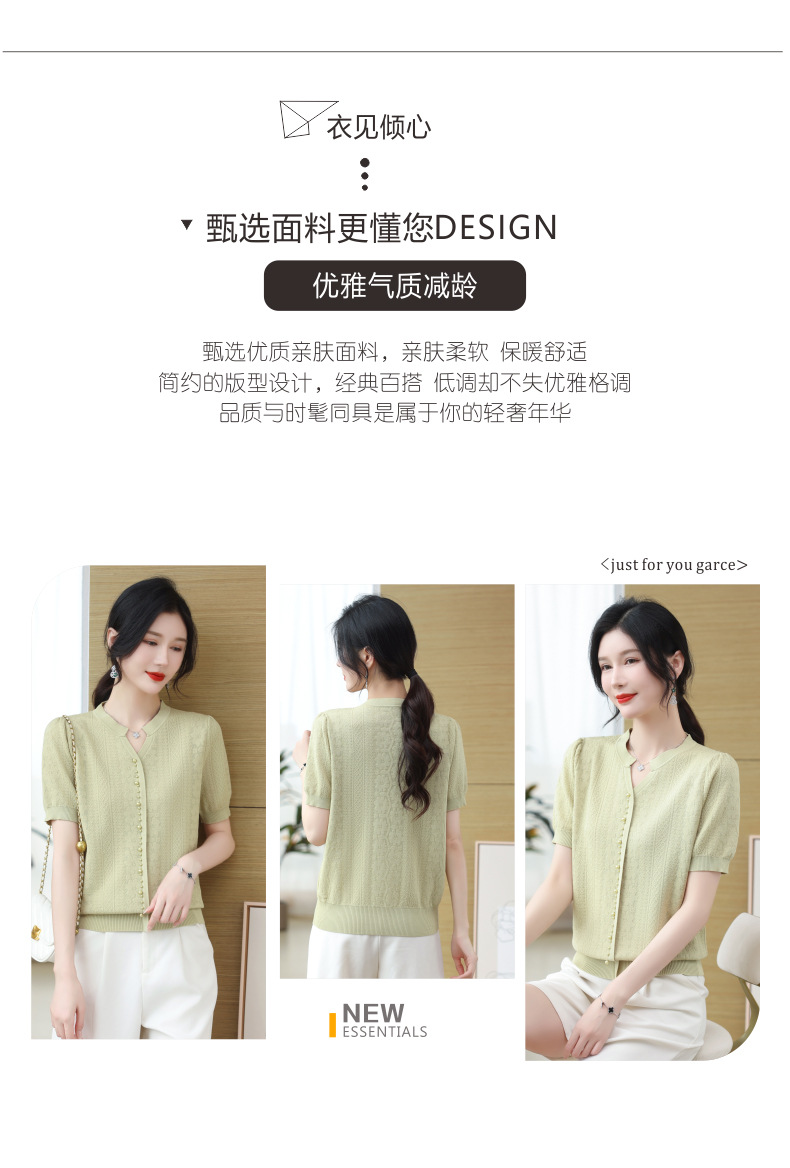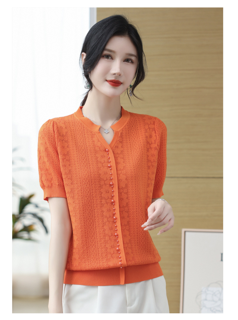 雀说冰丝短袖t恤新款洋钉珠气显瘦体恤衫针织衫宽松上衣AL