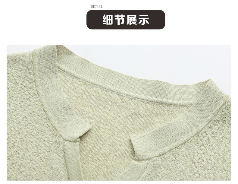 丁摩~100纯羊毛圆领五分袖针织衫女春秋短袖上衣宽松中袖T恤纯色打底衫JJIA209