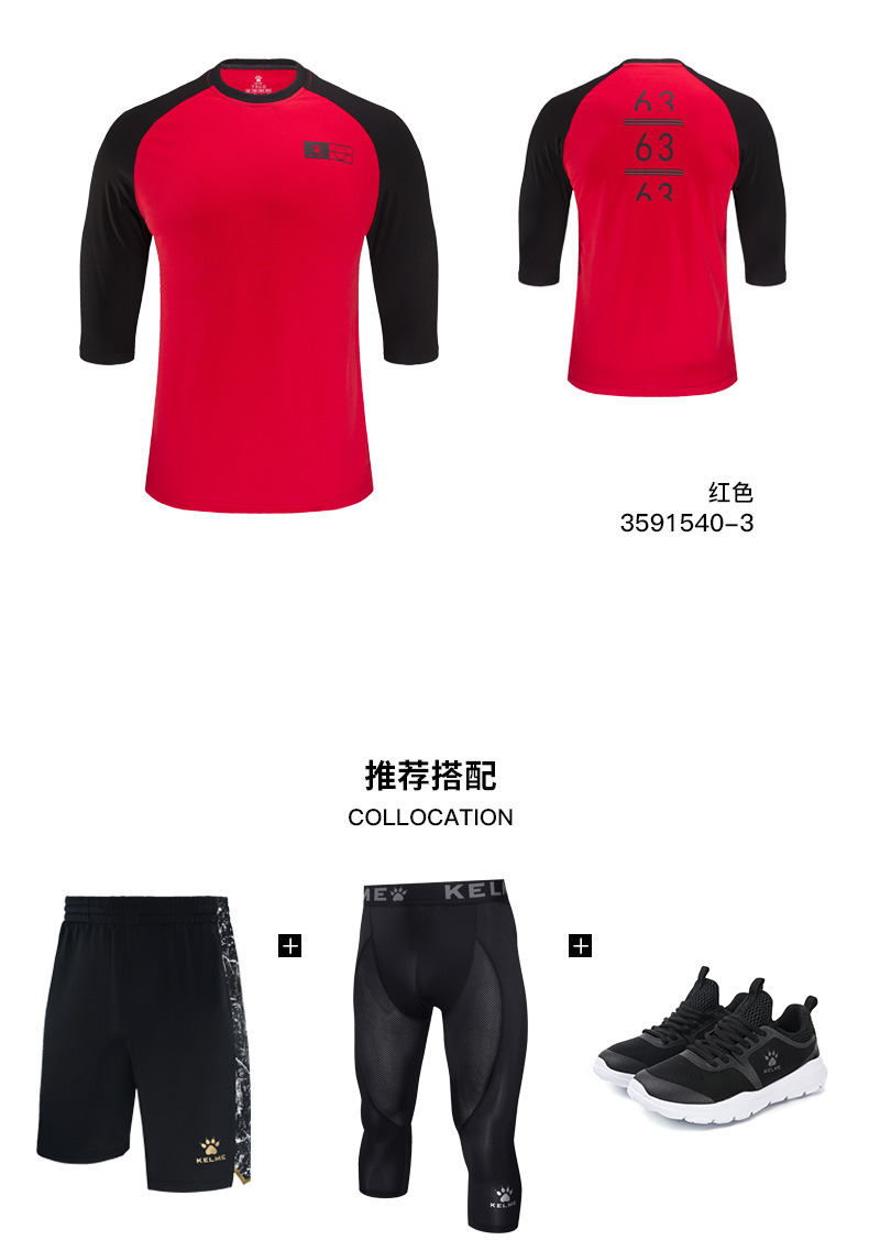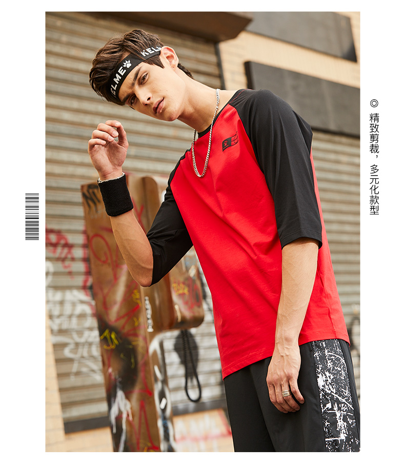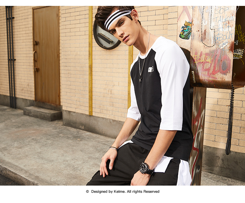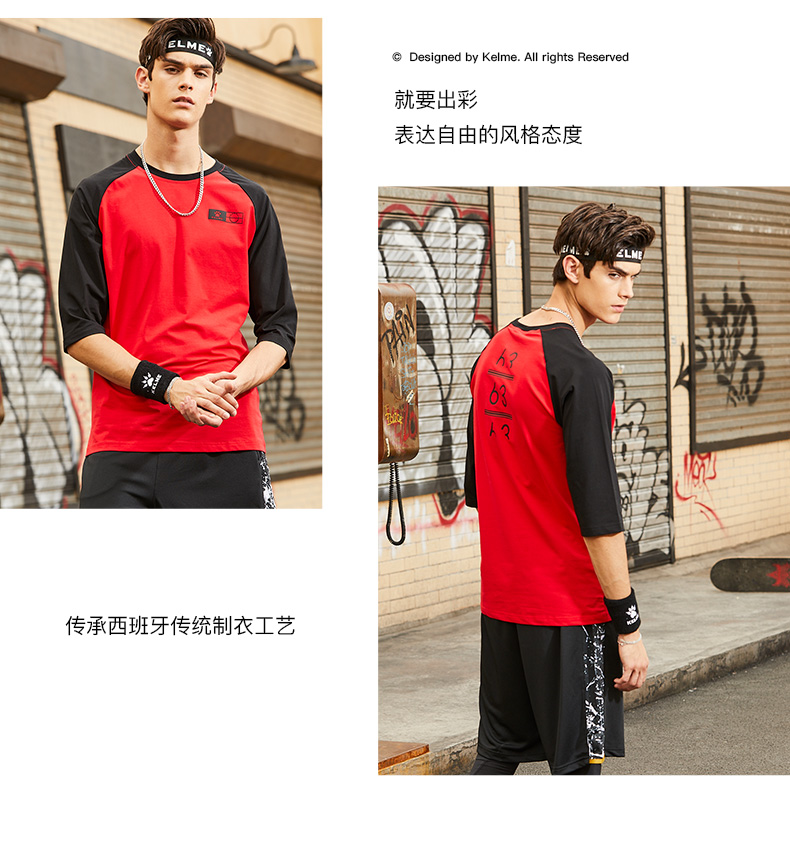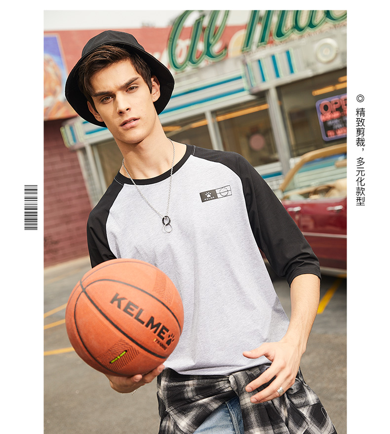 kelme卡尔美春夏新款运动T恤男士休闲篮球七分袖中袖宽松韩版短袖