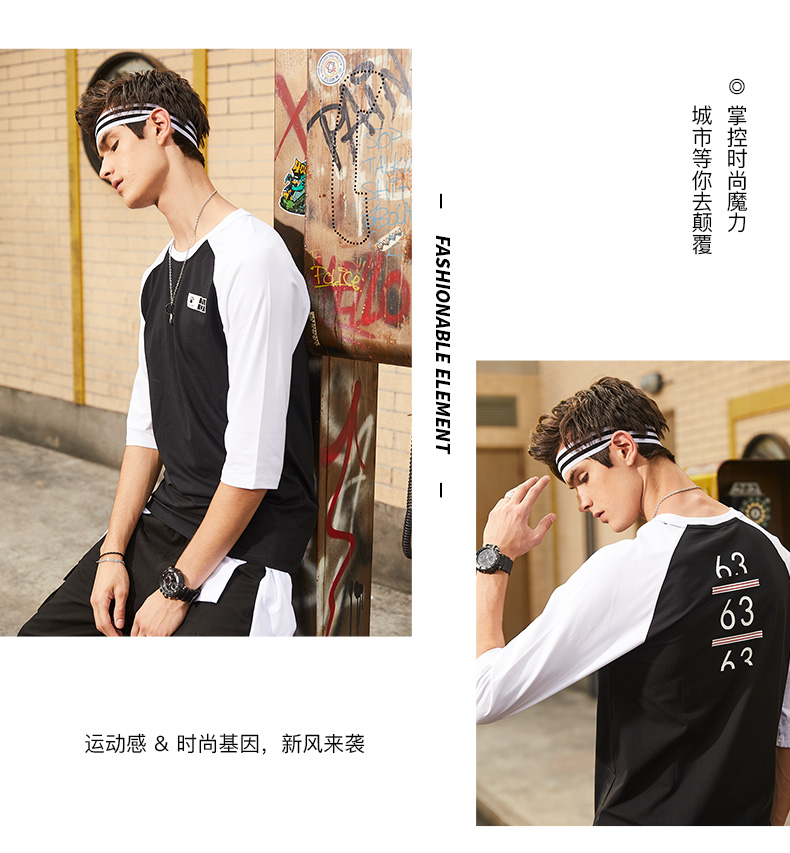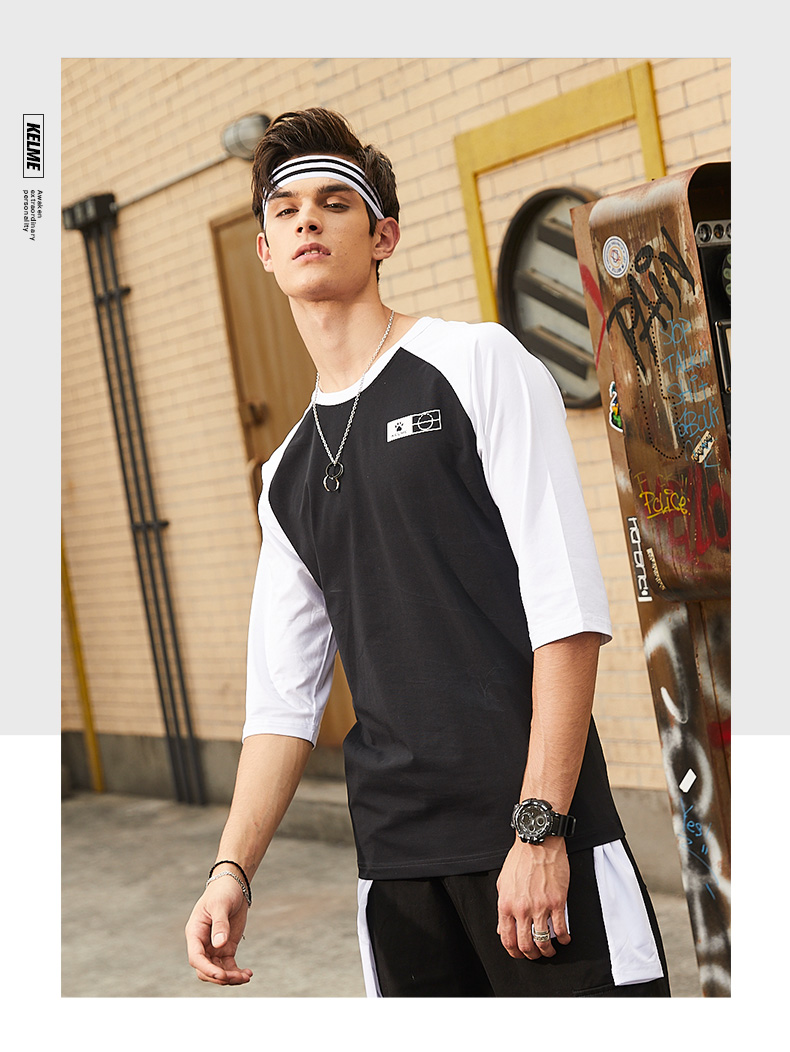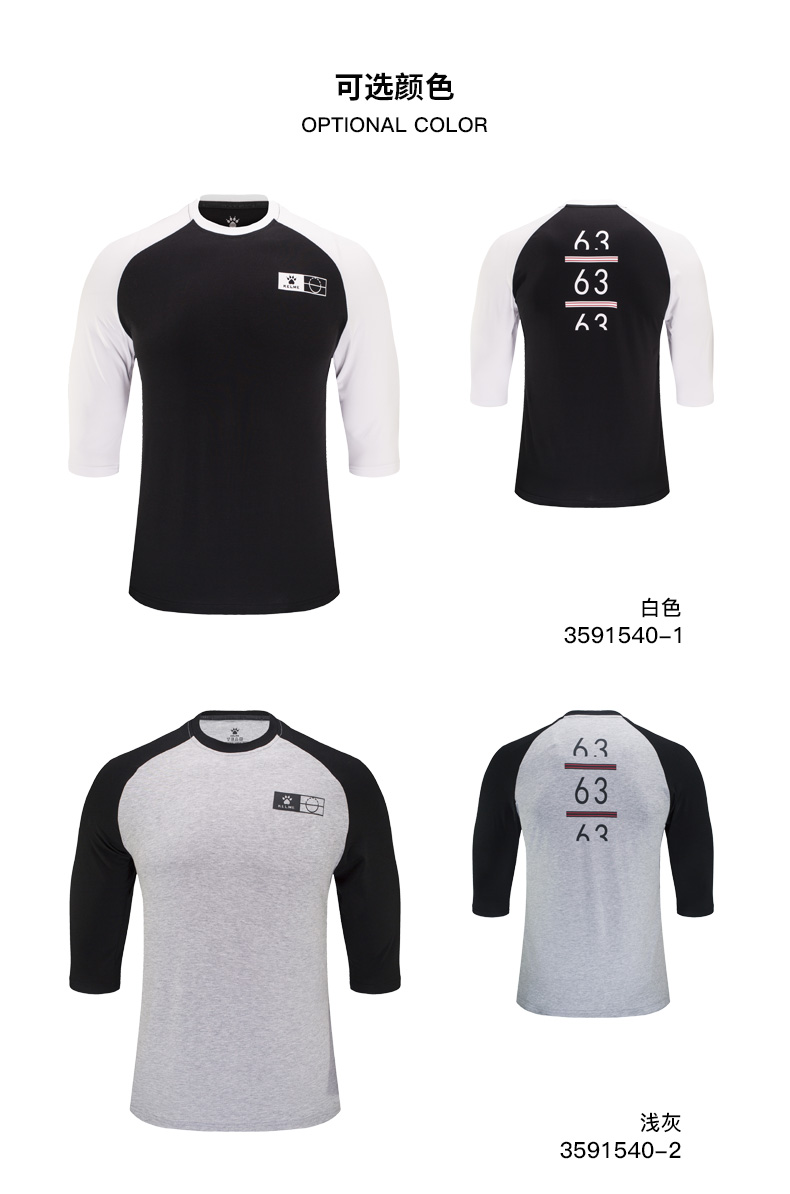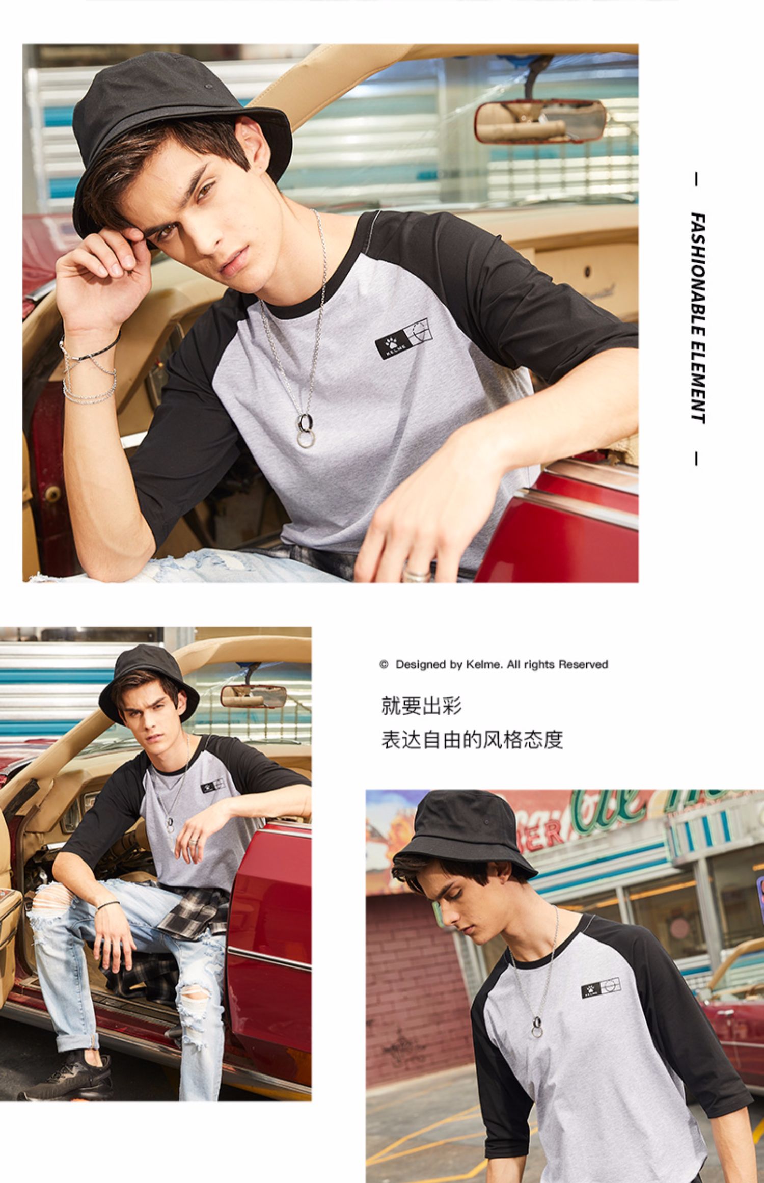 kelme卡尔美春夏新款运动T恤男士休闲篮球七分袖中袖宽松韩版短袖