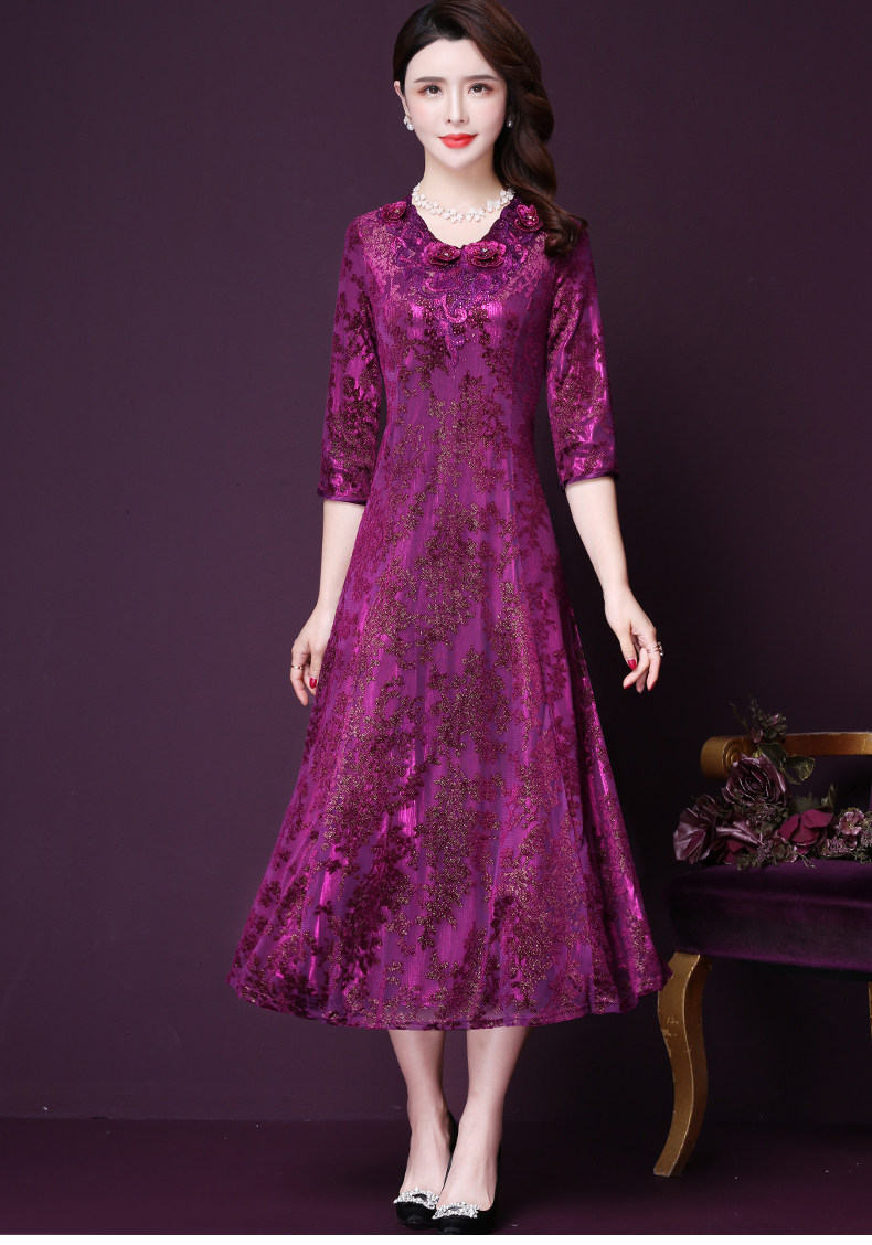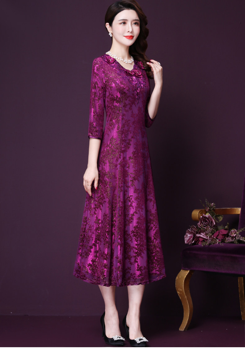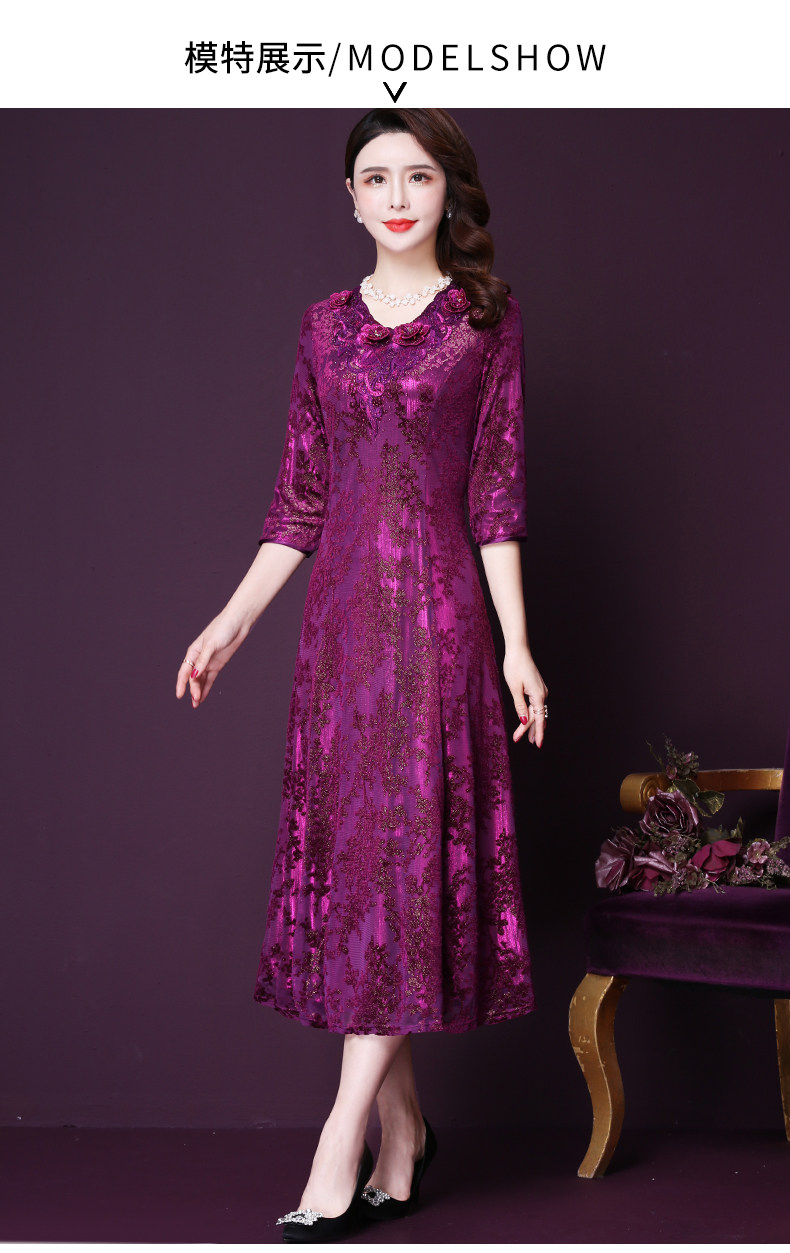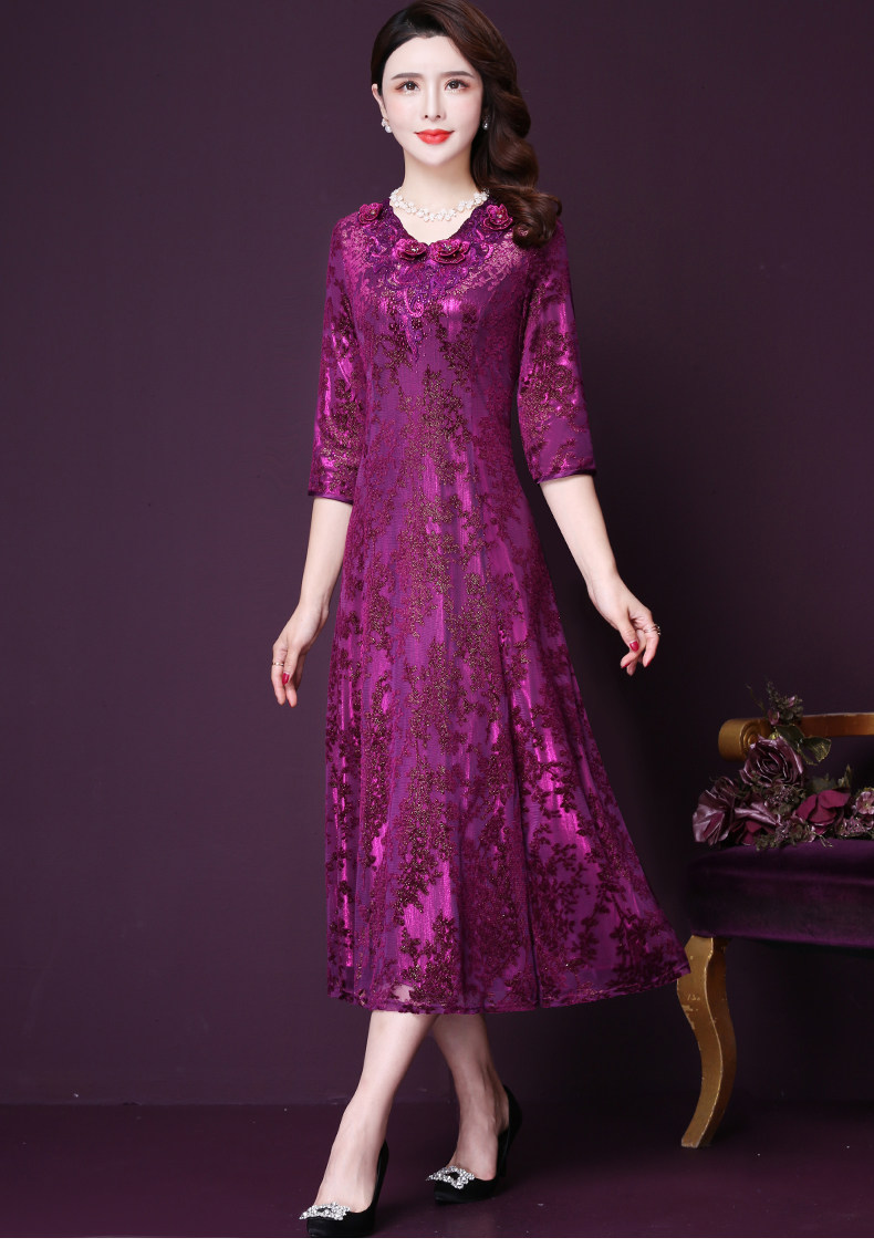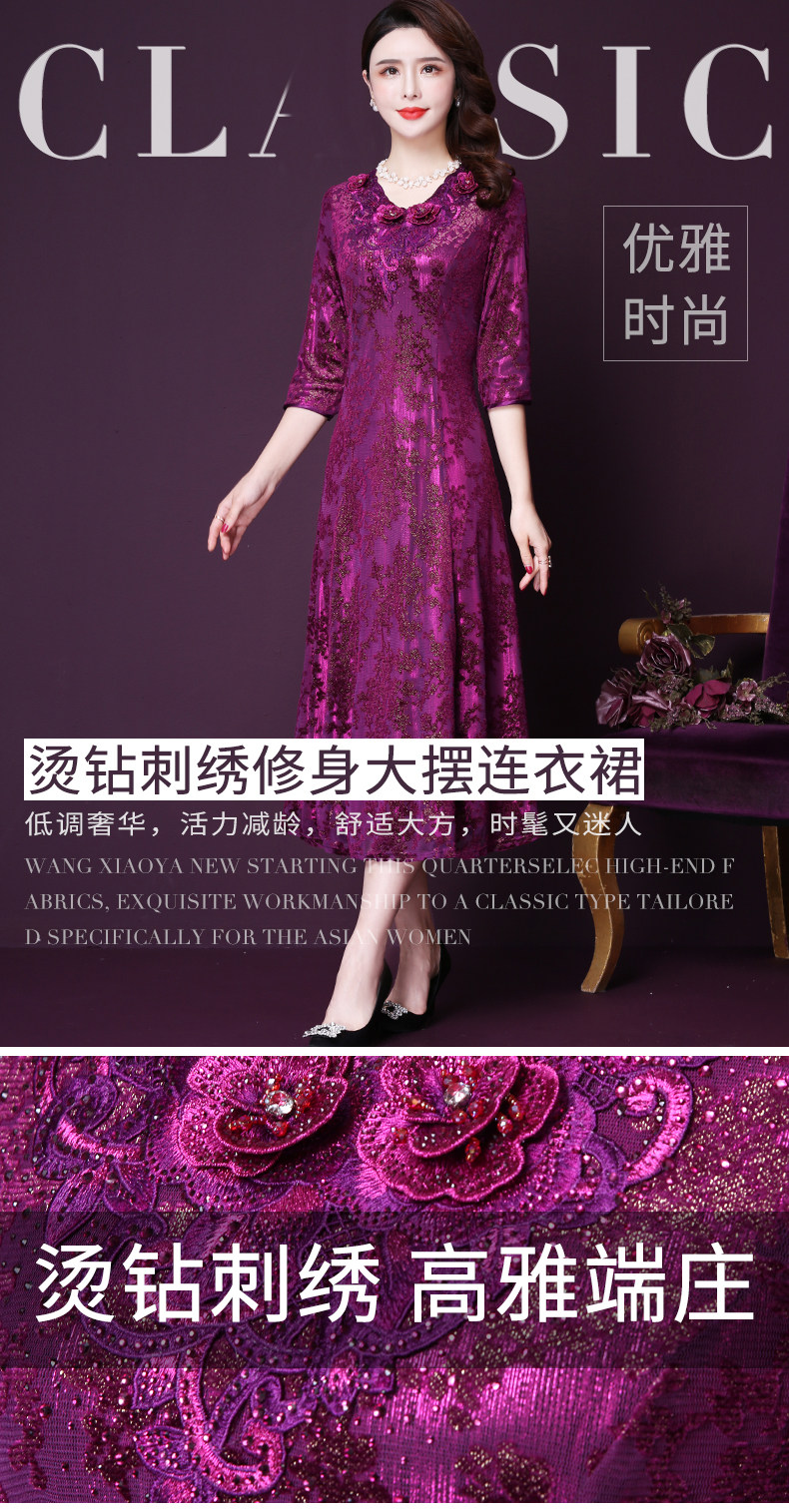 WXY-72403-1春季婚宴长款连衣裙优雅中长袖礼服