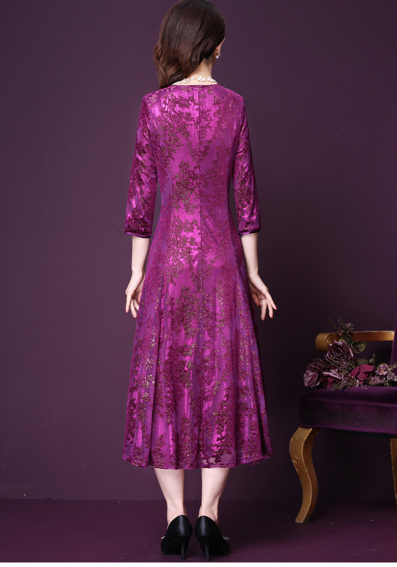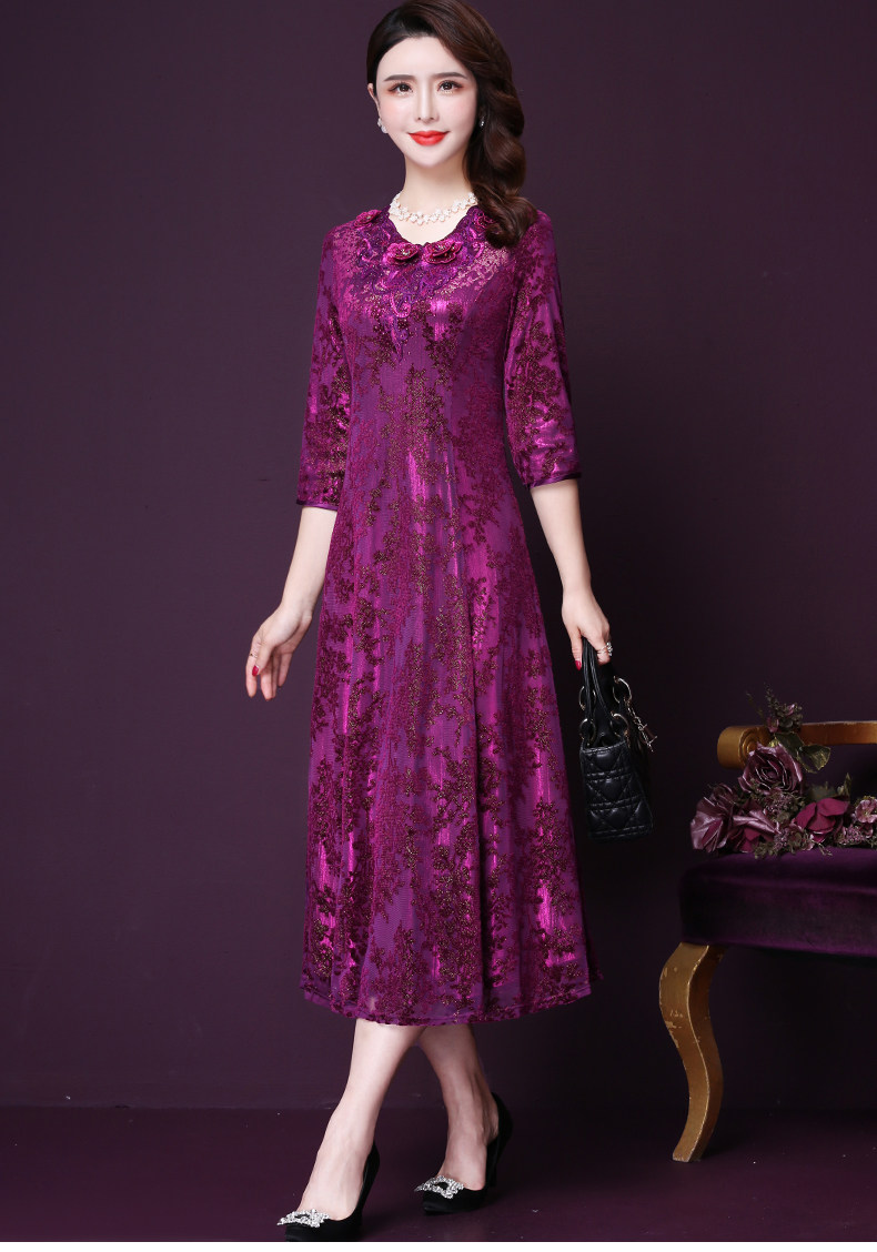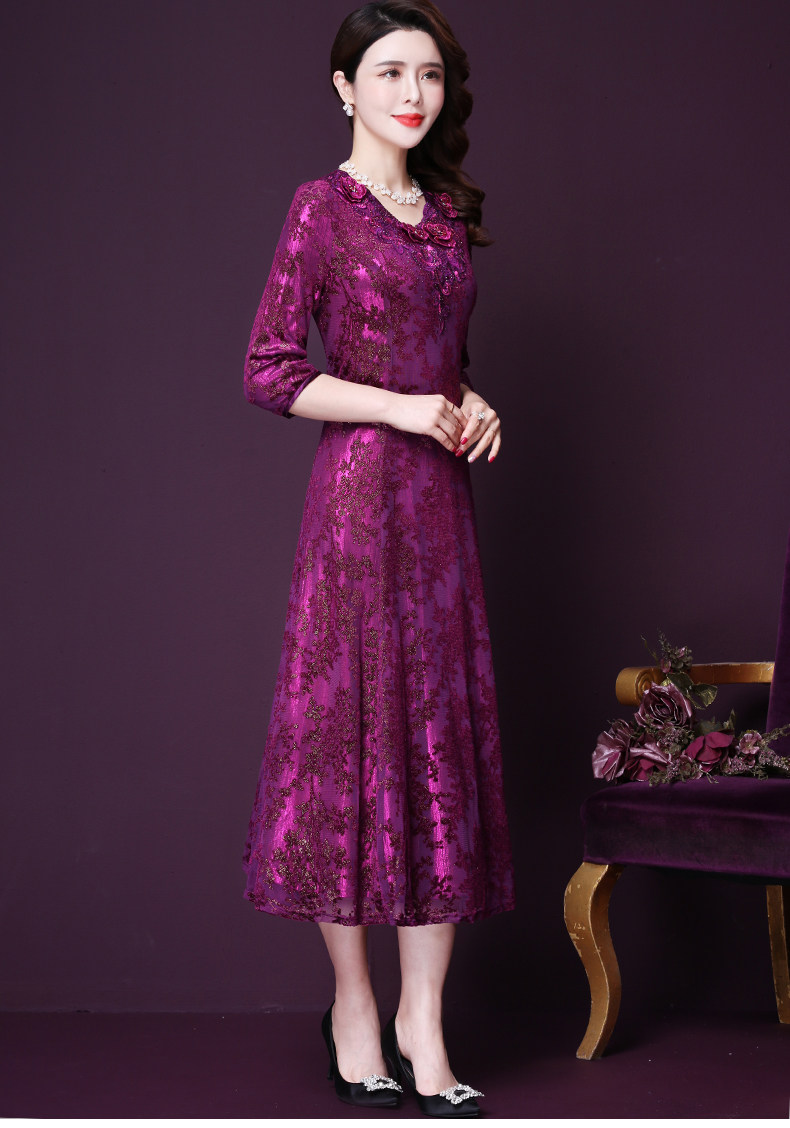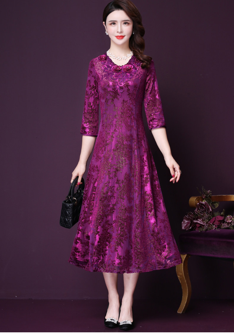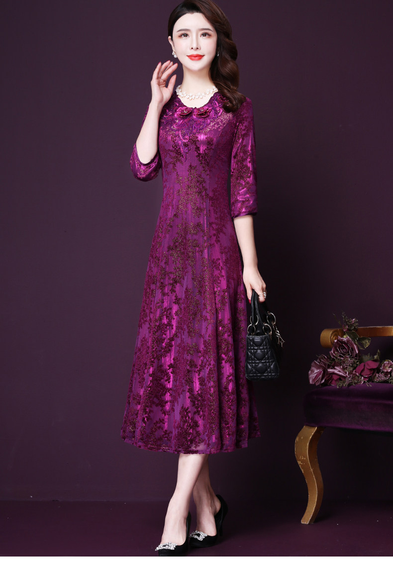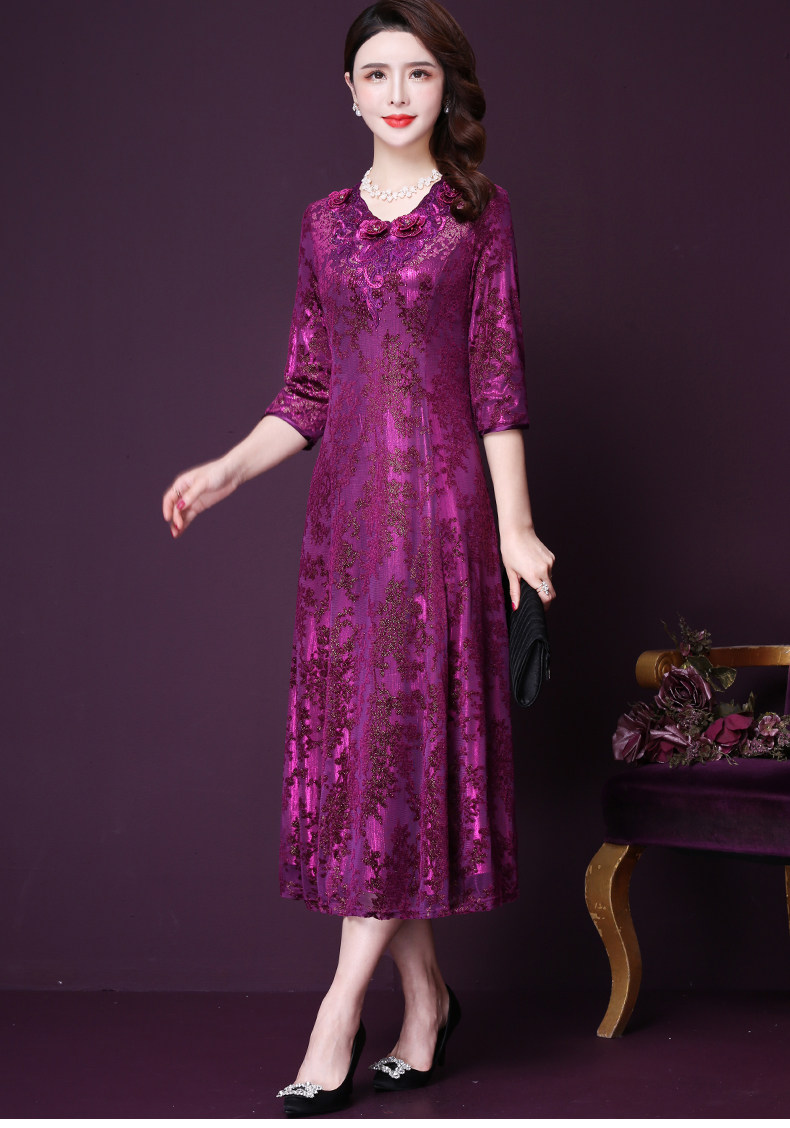 WXY-72403-1春季婚宴长款连衣裙优雅中长袖礼服