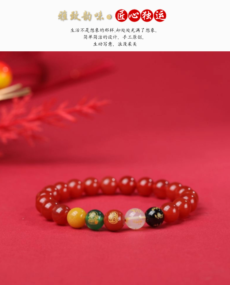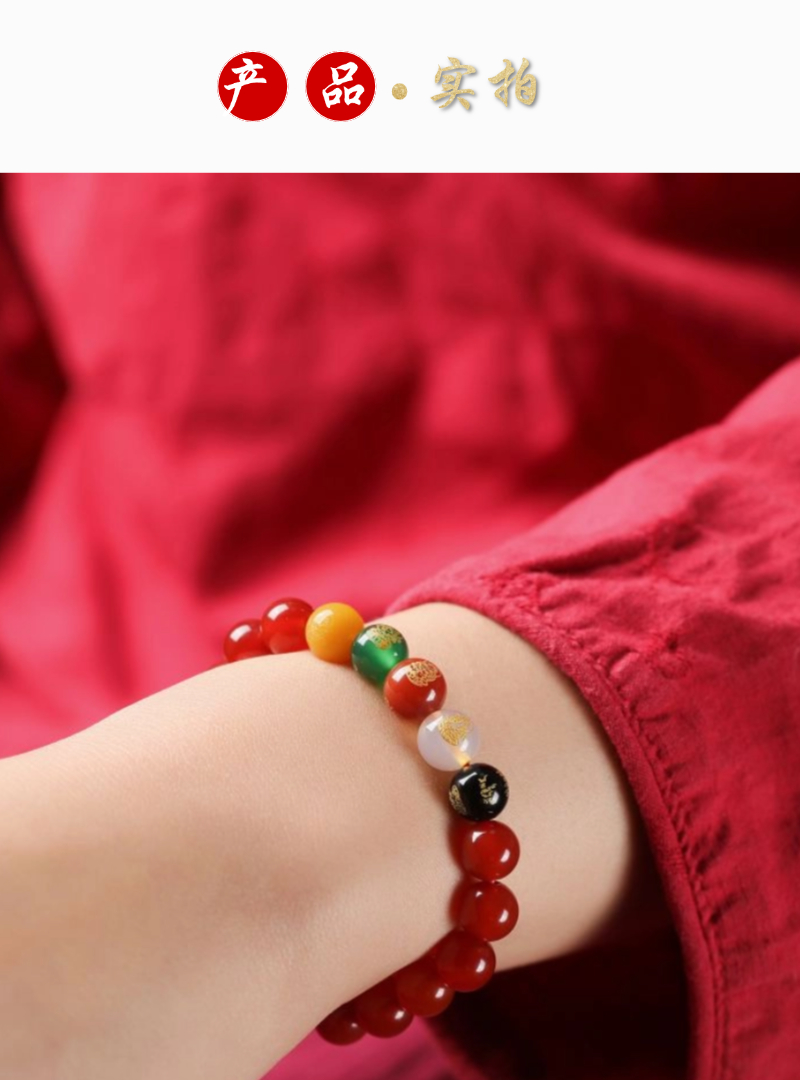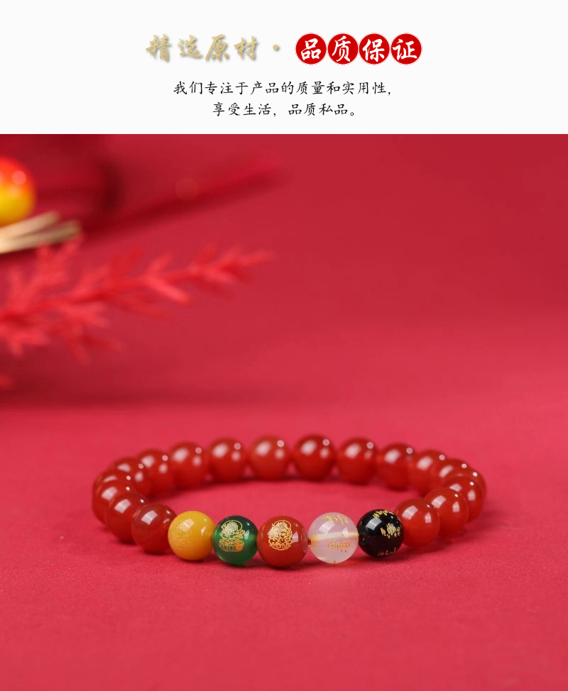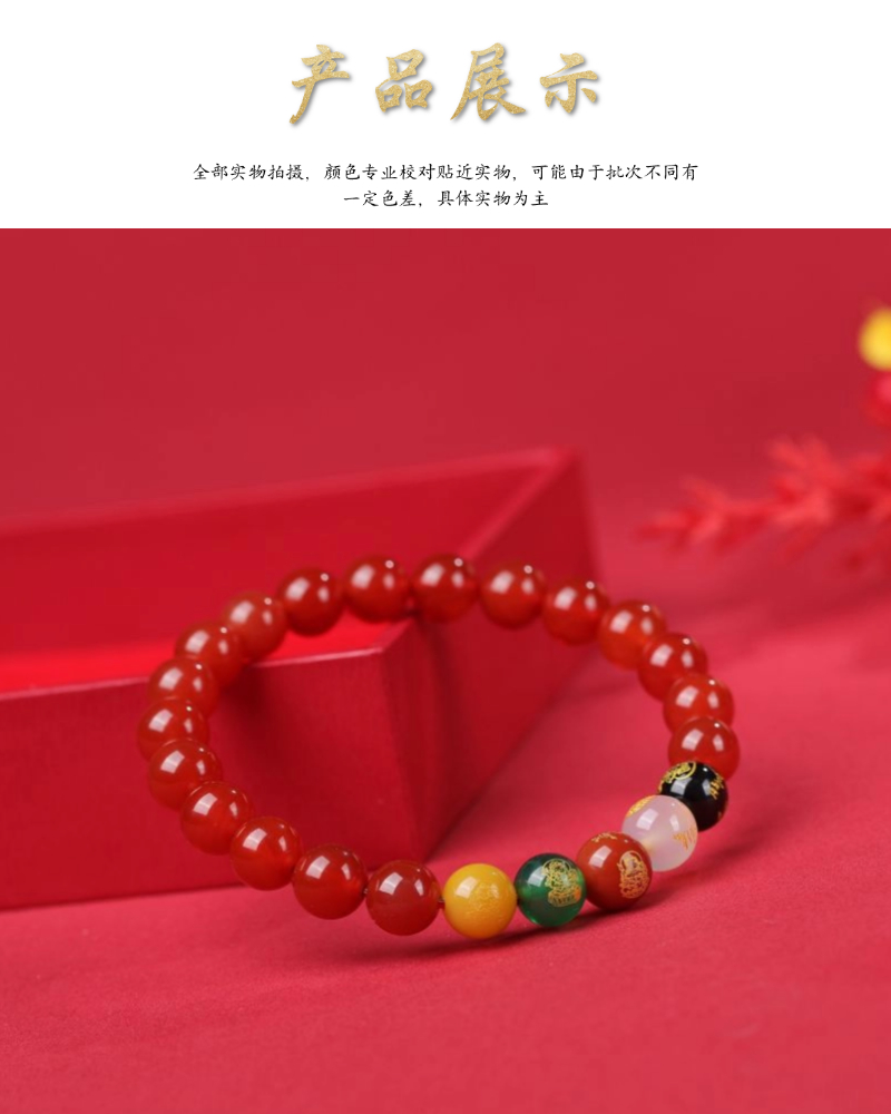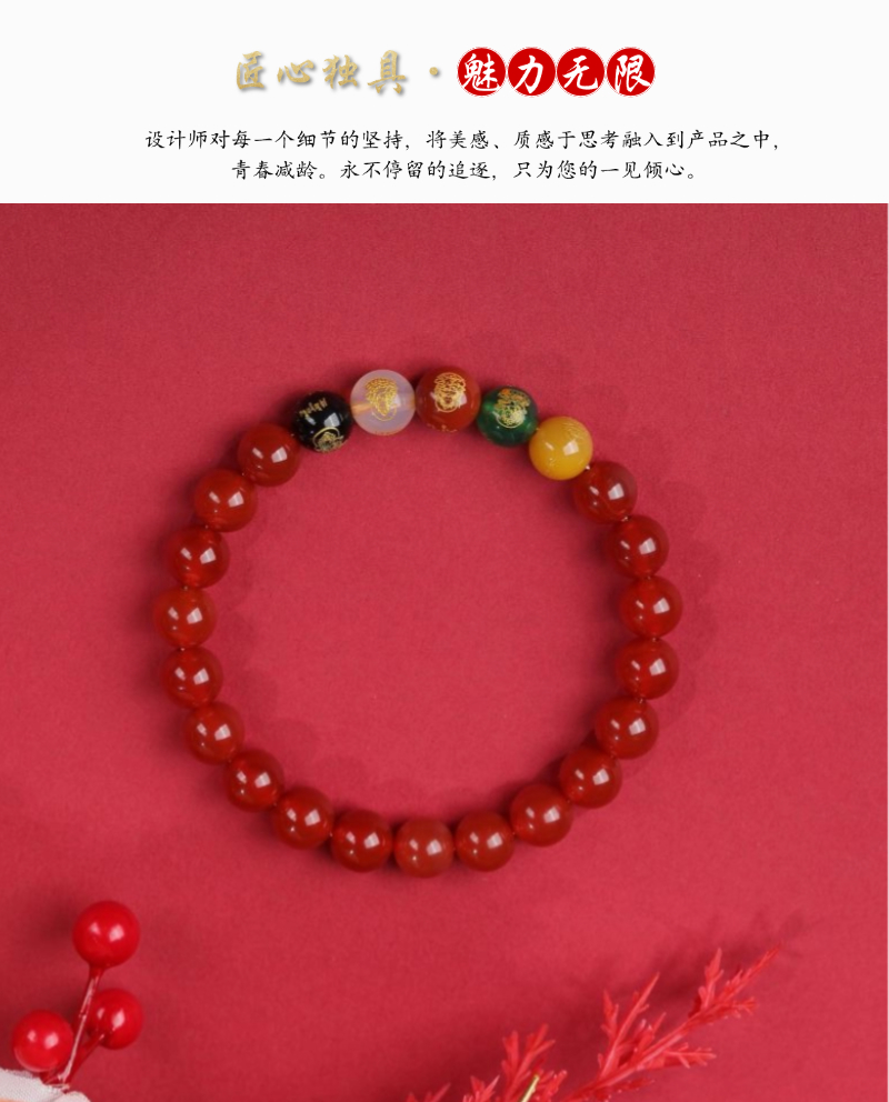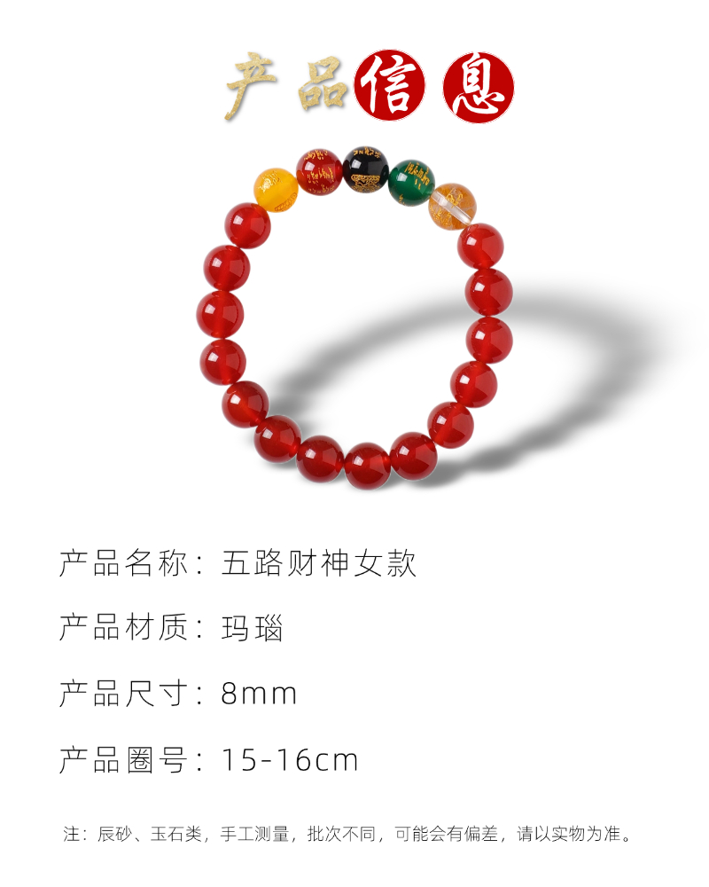珩钻 新中式五路财神女款红玛瑙手串国潮手链8mm