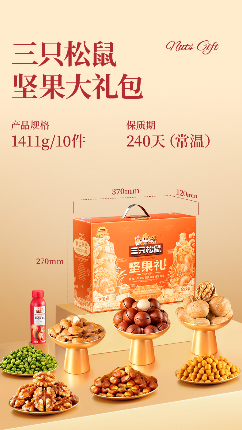 三只松鼠 坚果礼盒/孔庙橙10件/1411g-fx