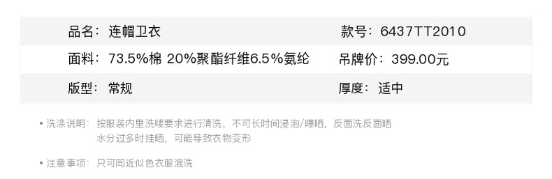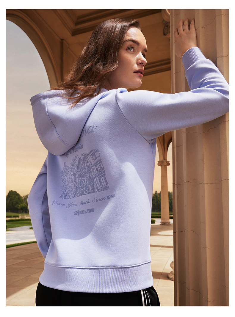 卡尔美秋季新款方寸之间系列女士连帽卫衣