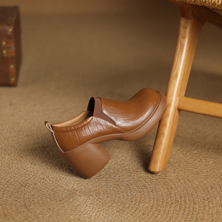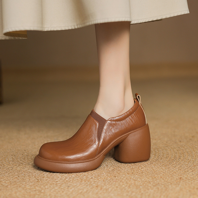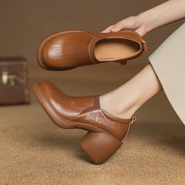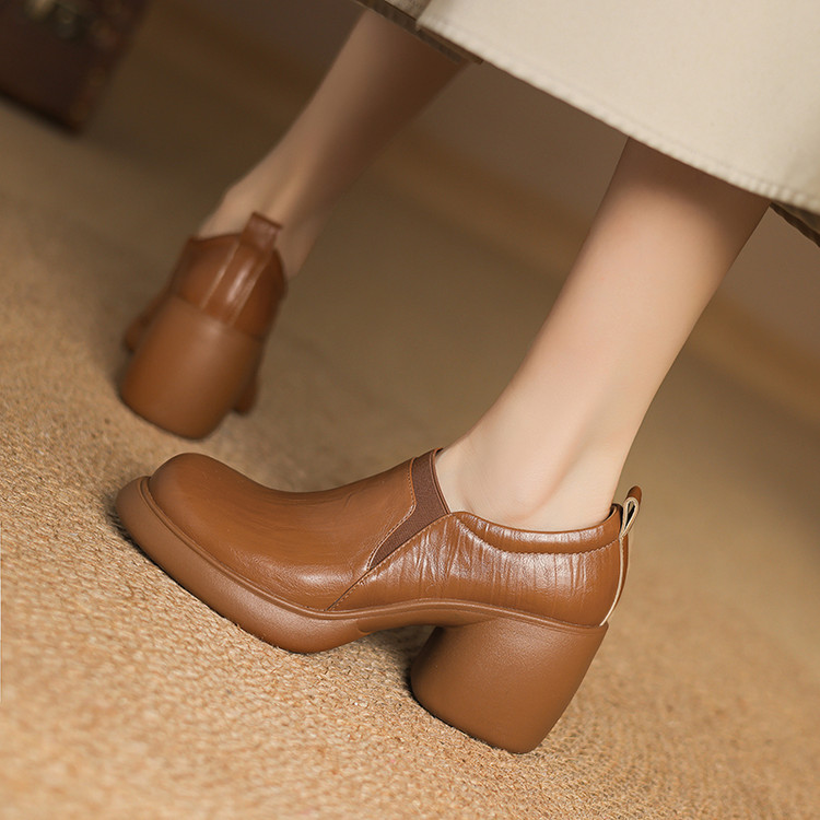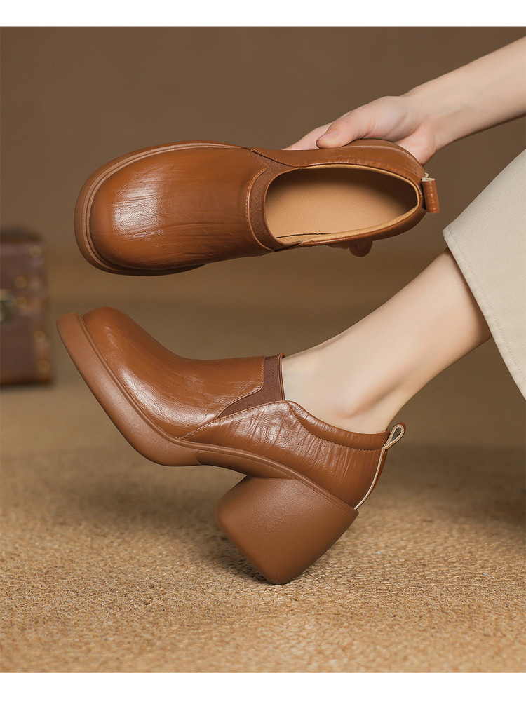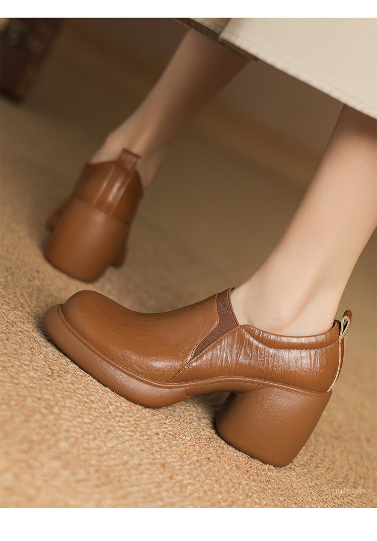 【货 号】A1908【鞋面材质】羊皮【内里材质】头层猪皮【垫 脚】头层猪皮【鞋 底】橡胶大底【跟 高】8cm【颜 色】棕色 黑色【尺 码】34 35 36 37 38 39