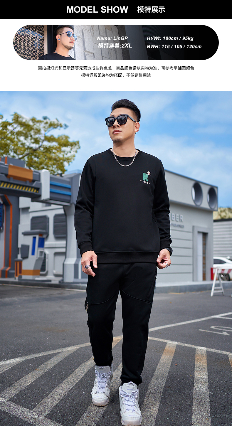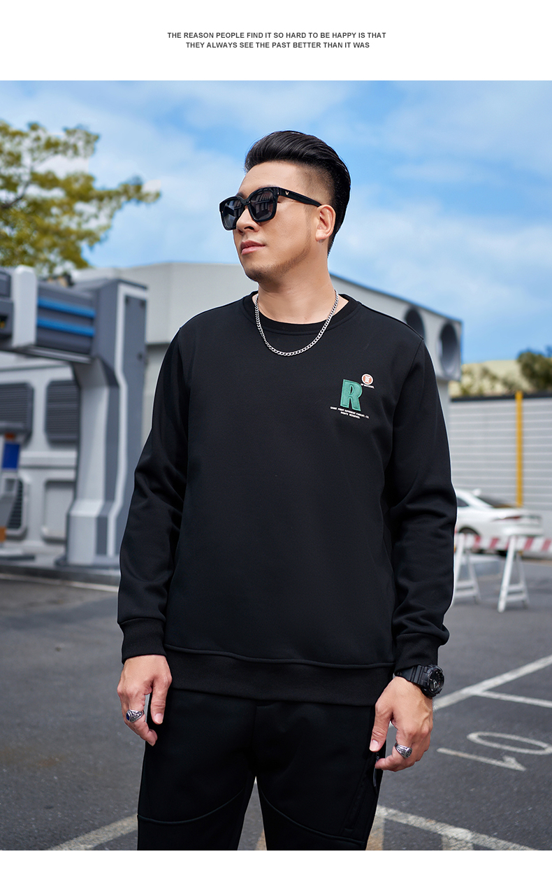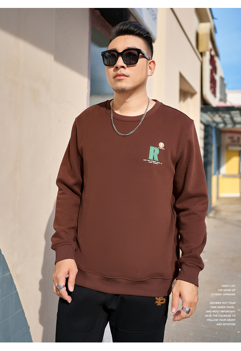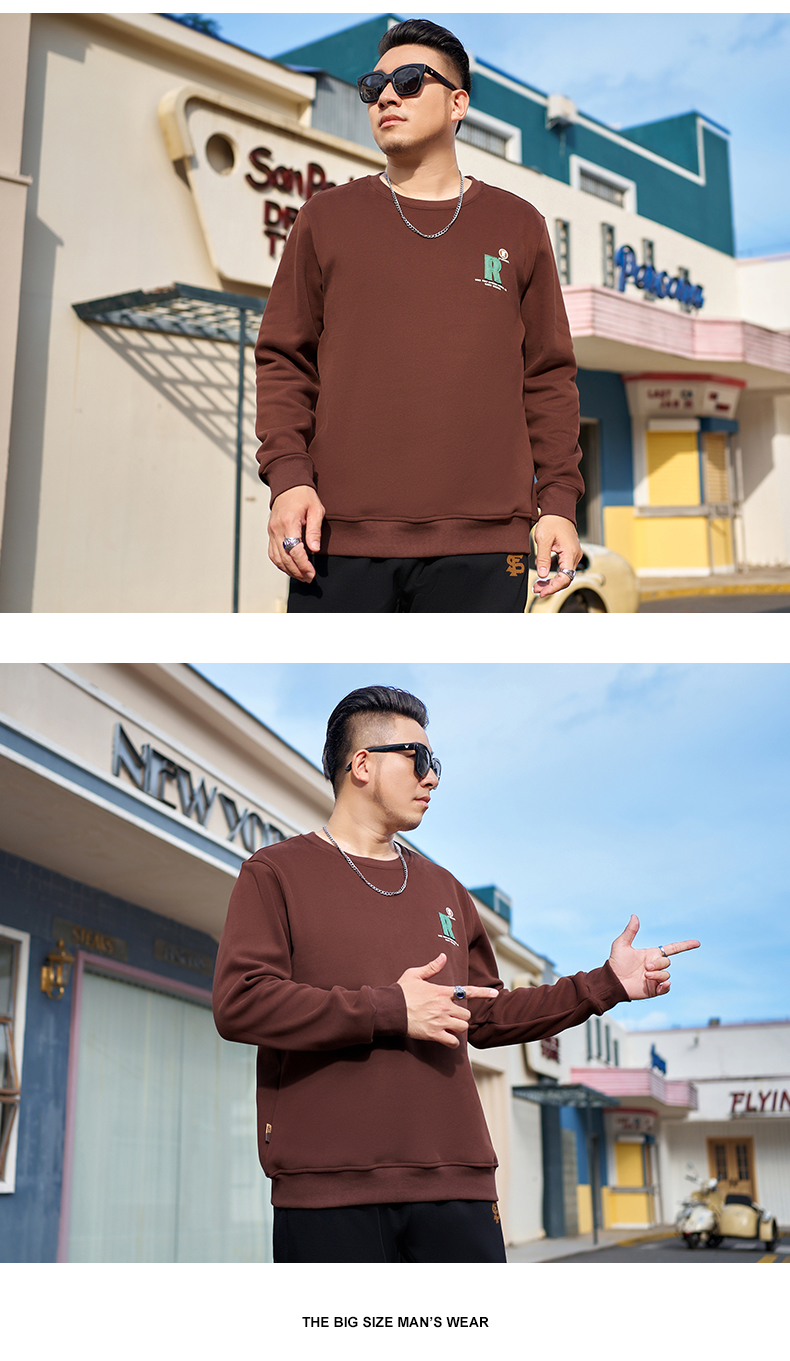 【圈】【新款DMH】大依优型大码加绒卫衣圆领弹力加肥加大胖子长袖上衣男士T恤肥佬男装潮款