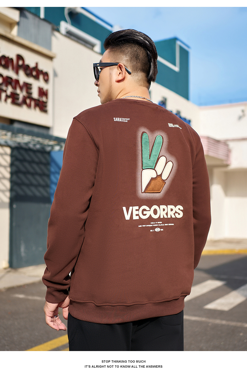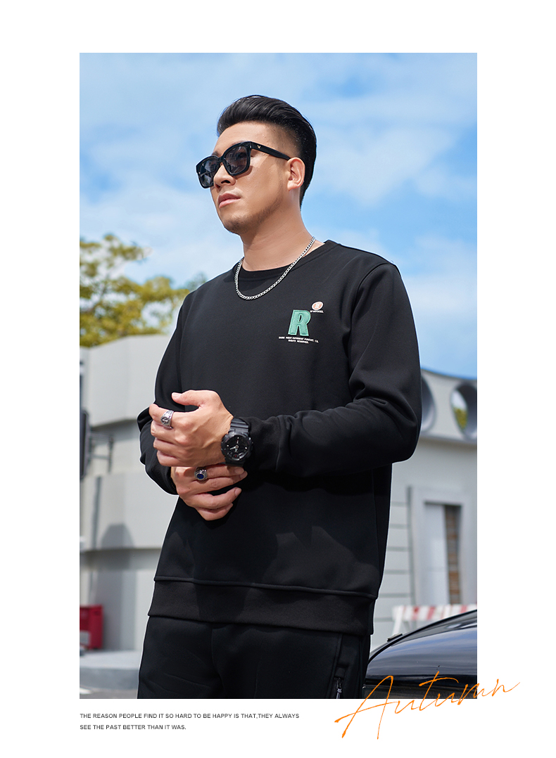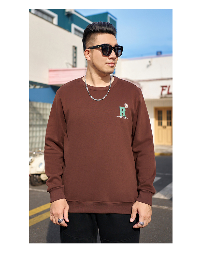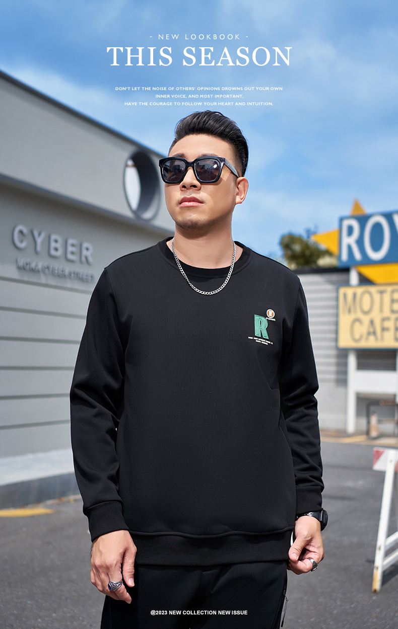 【圈】【新款DMH】大依优型大码加绒卫衣圆领弹力加肥加大胖子长袖上衣男士T恤肥佬男装潮款