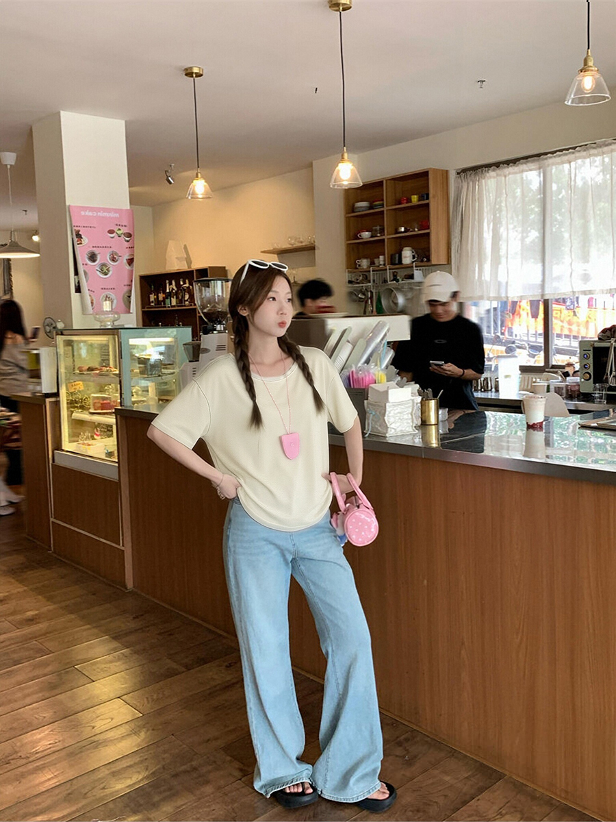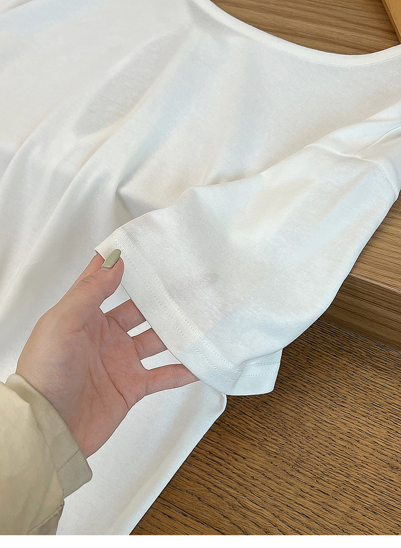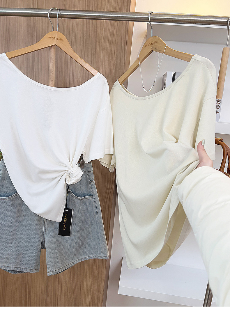 专柜实拍【亚麻+莱赛尔】拉夏贝尔/La Chapelle小心机设计感!宽松显瘦圆领后背镂空扭结四色短袖T恤