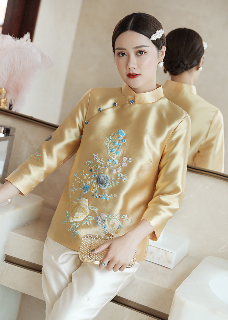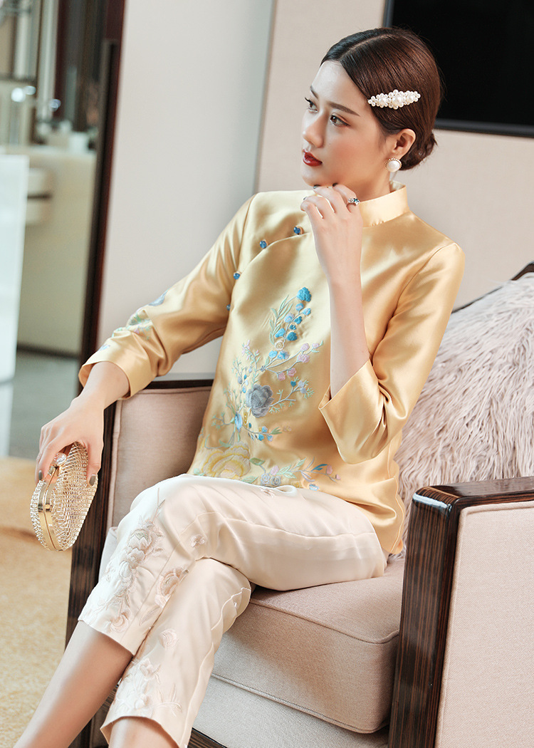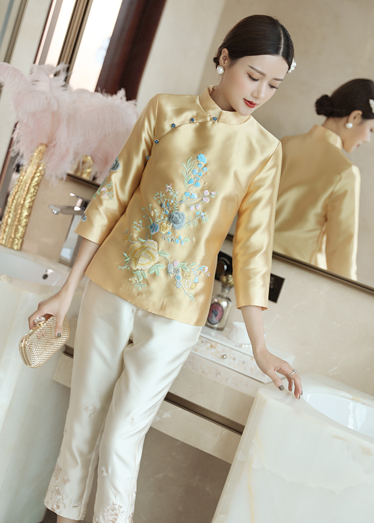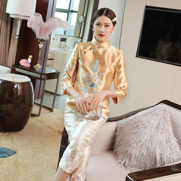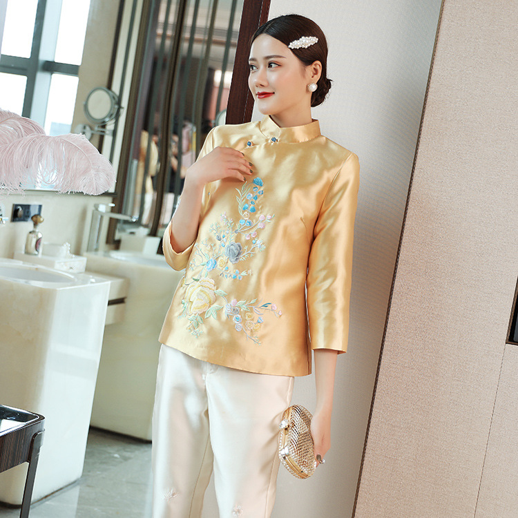 HLW-9647秋季新款刺绣改良唐装立体绣花优雅端庄上衣