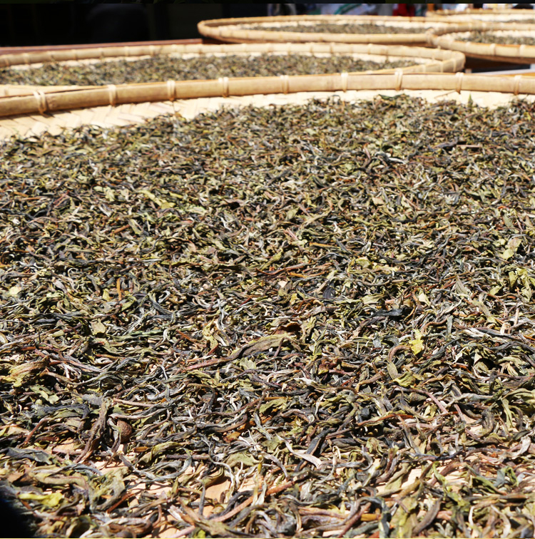 制作普洱晒青毛茶过程中,由于叶片粗老,或是杀青不当,造成色泽偏黄的芽叶梗,将会剔捡出来,严格意义上来说,这些叶片的外观并不符合制作标准。