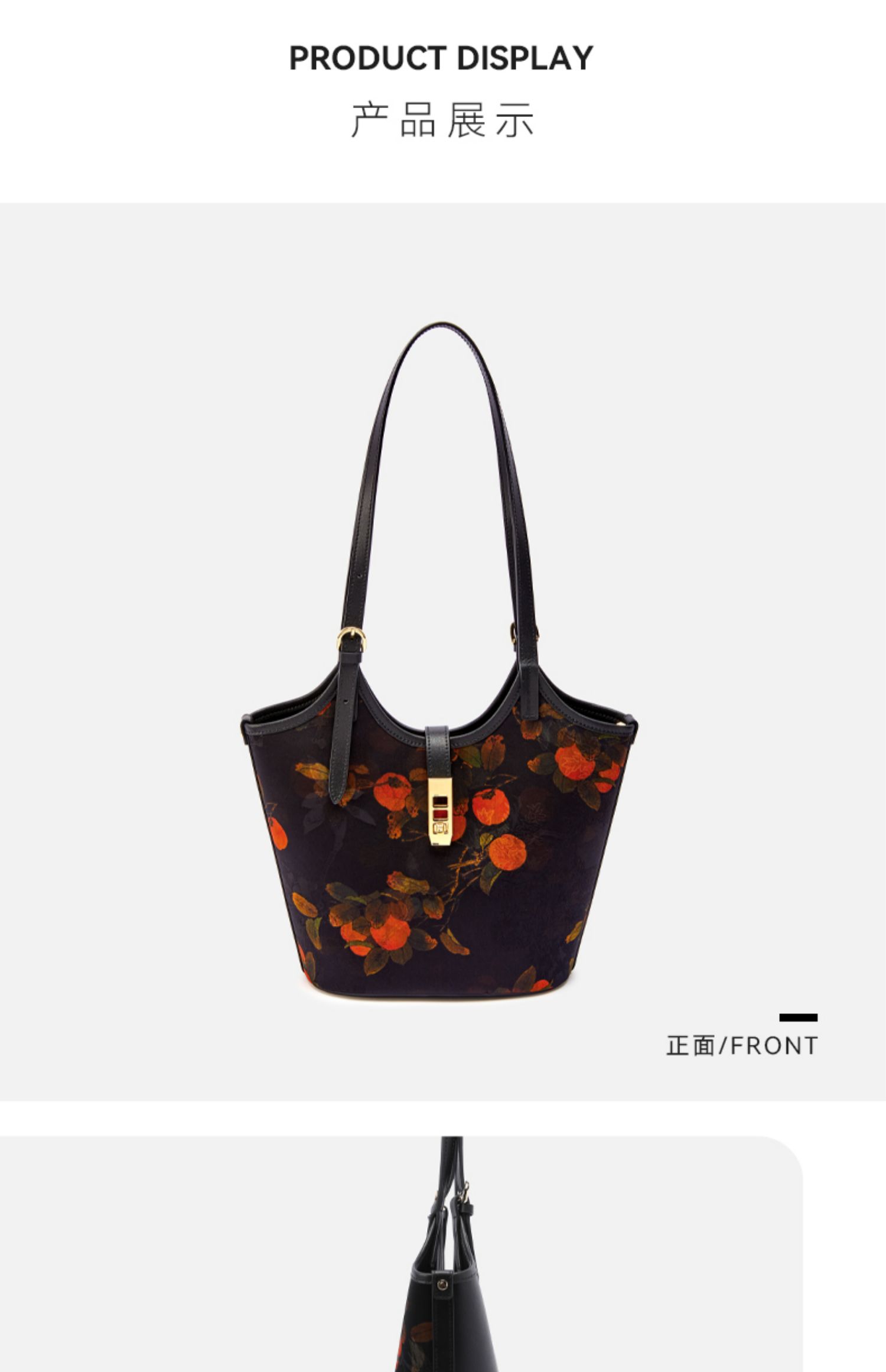 非遗香云纱花柿柿如意,新中式国风单肩斜挎手提水桶包TX-YS120762