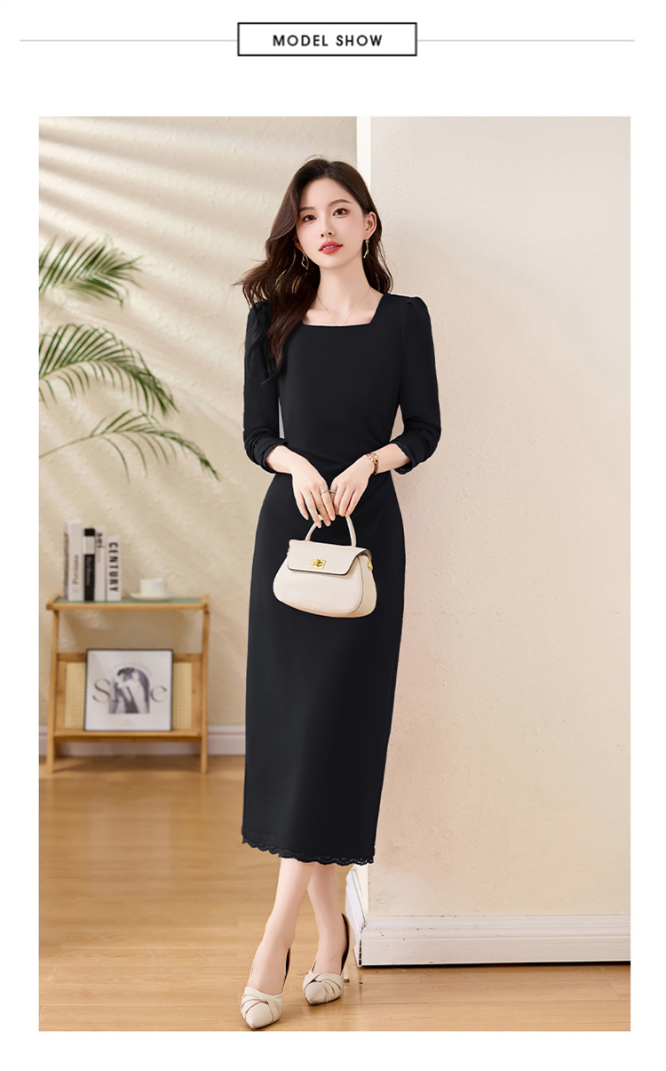 HR ZRX5658气质时尚潮流法式纯色连衣裙 商品图4