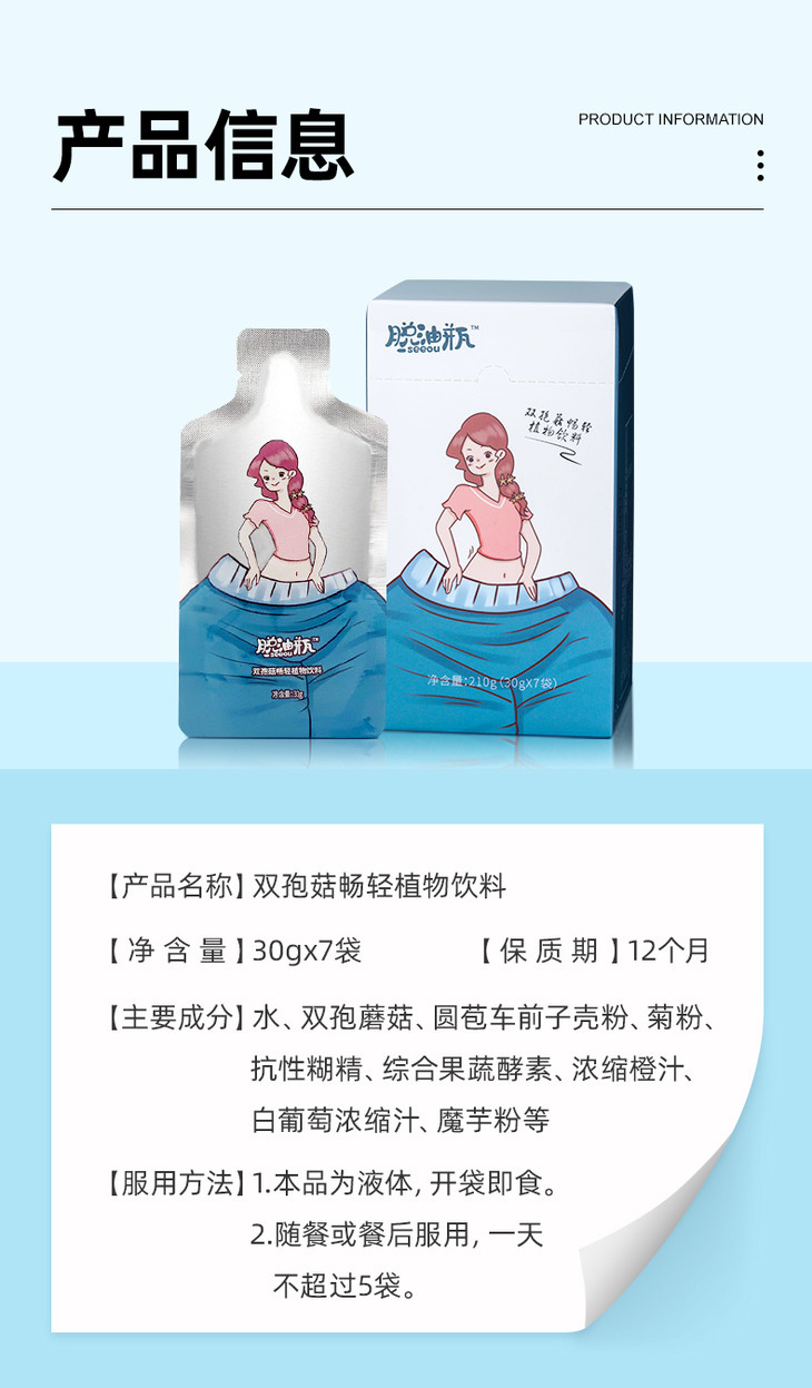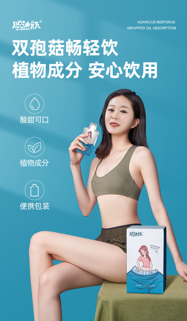 【买2送1】双孢菇脱油瓶排油收腹肚子变小皮肤白净7袋/盒