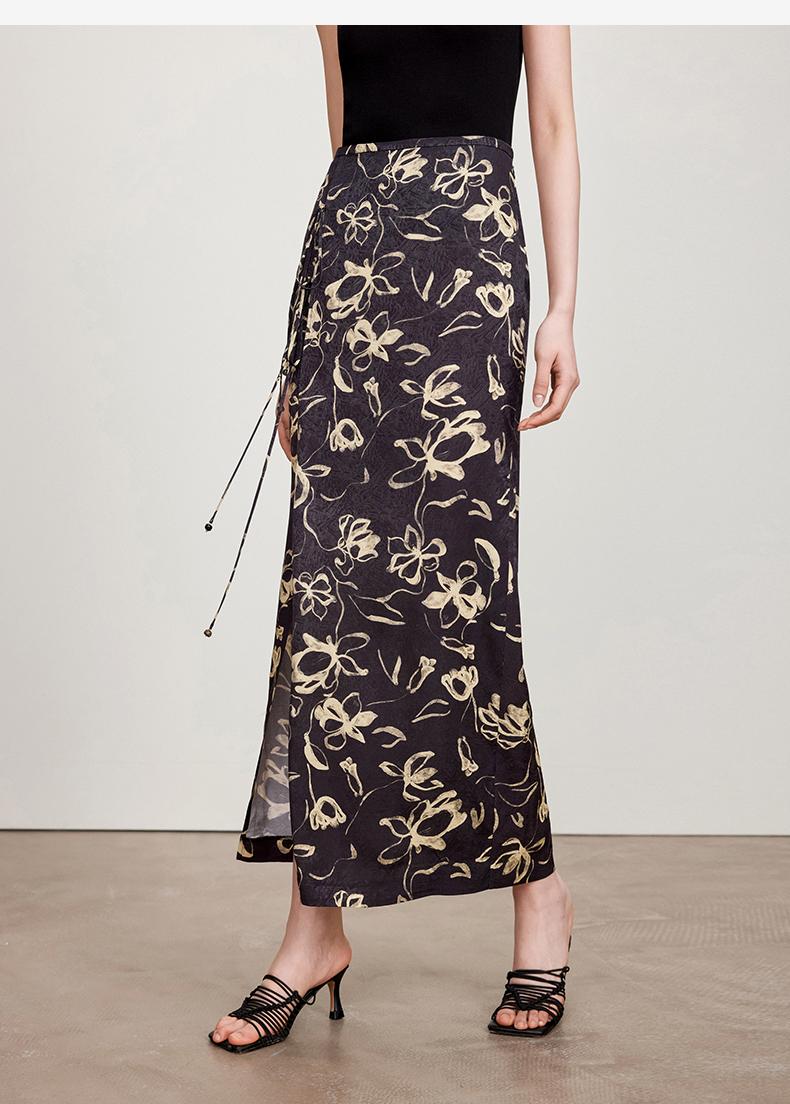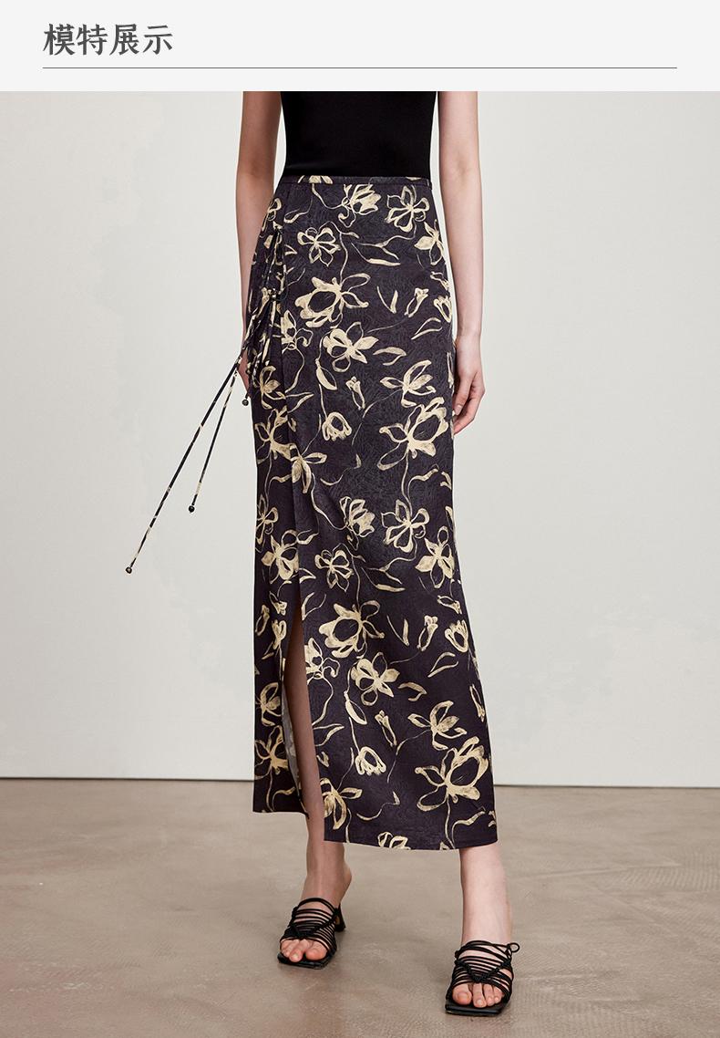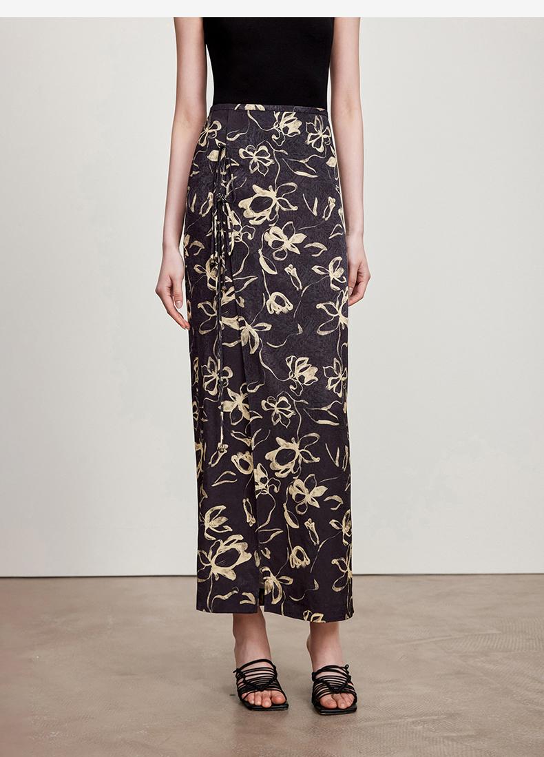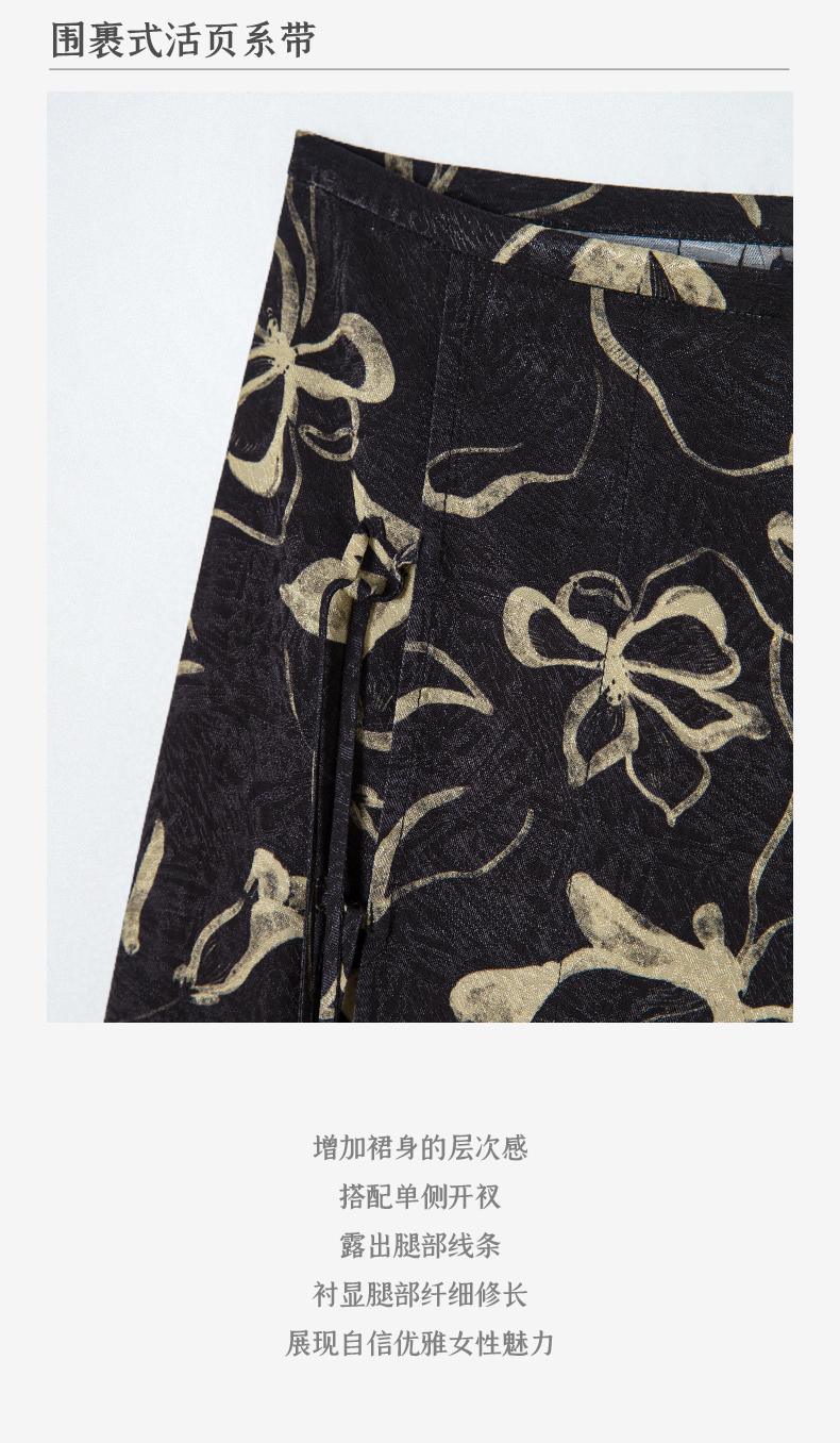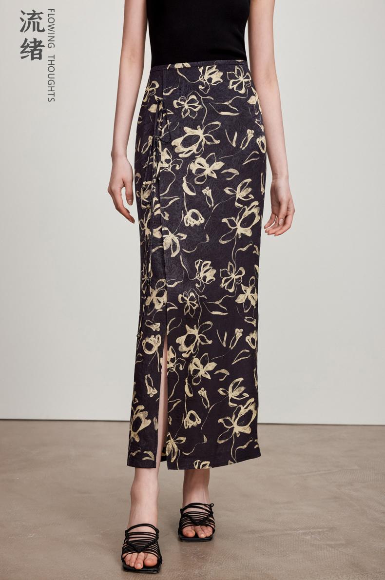 西嘉C+IMPRESS/西嘉老钱风提花新中式半身裙女夏季气质修身系带侧开衩BQ2402023