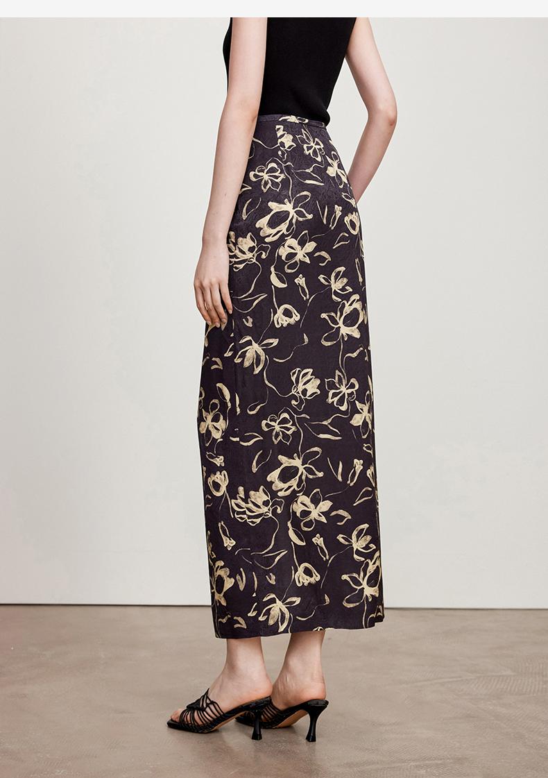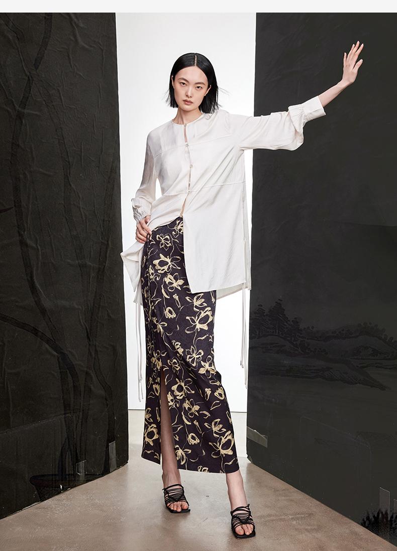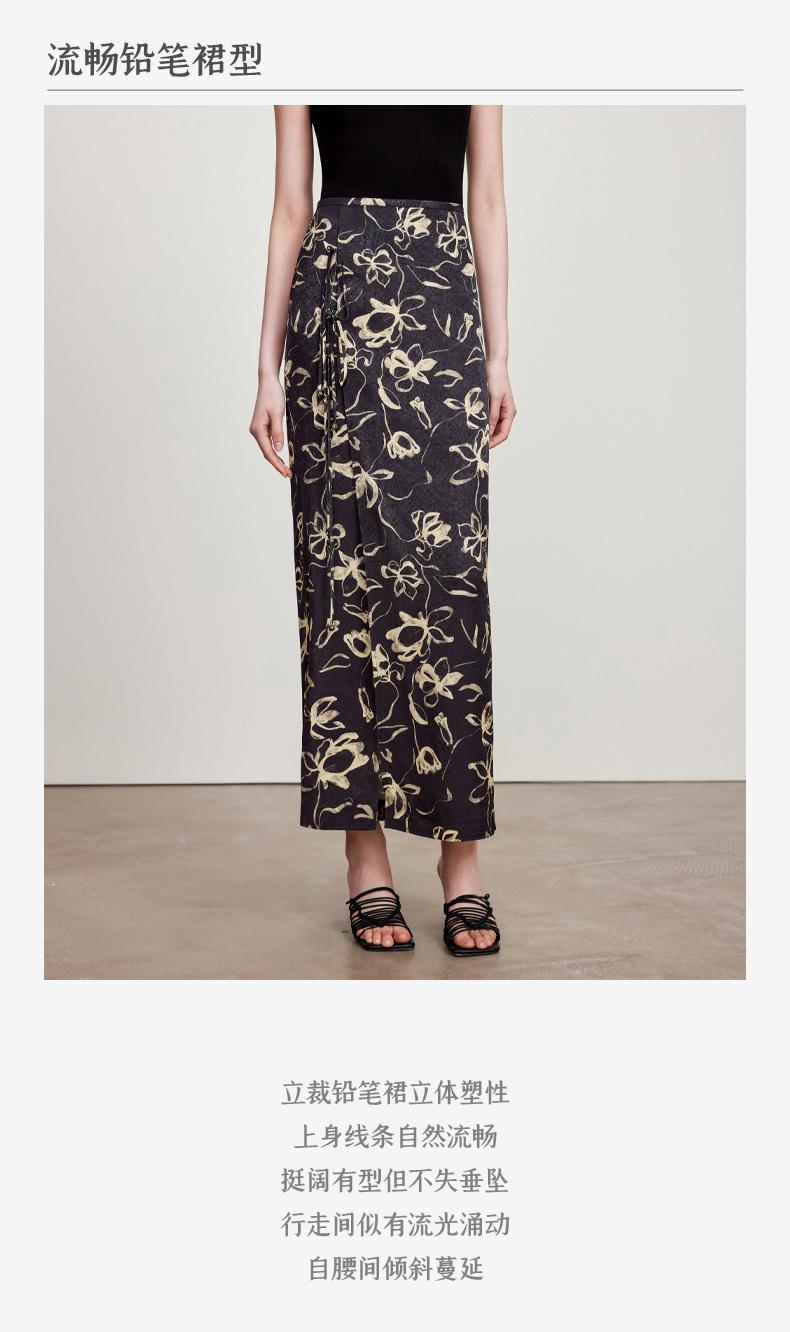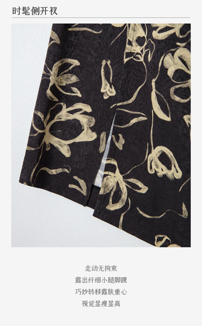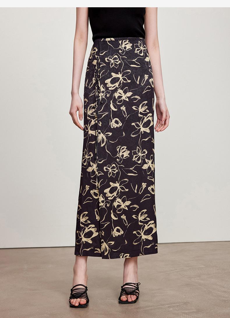 西嘉C+IMPRESS/西嘉老钱风提花新中式半身裙女夏季气质修身系带侧开衩BQ2402023