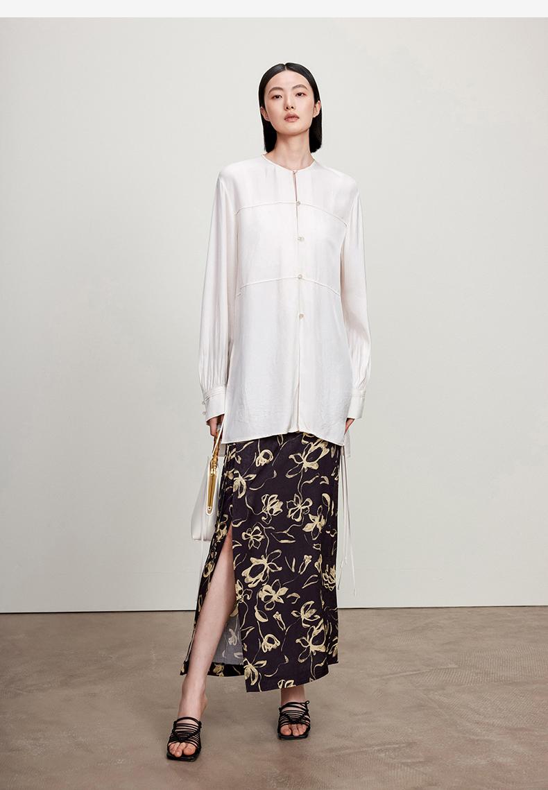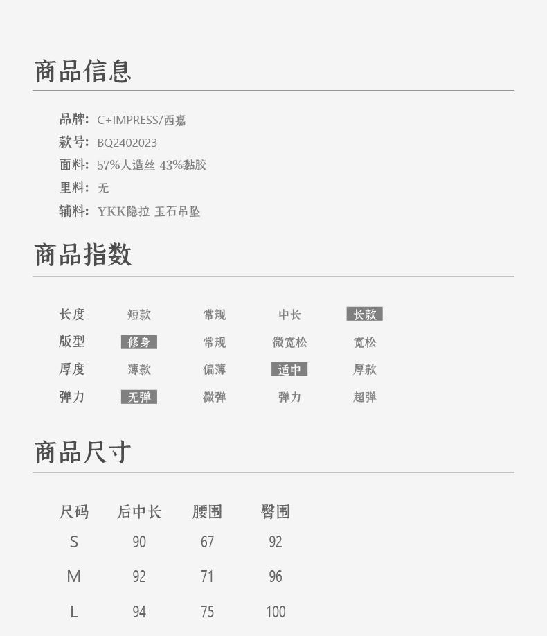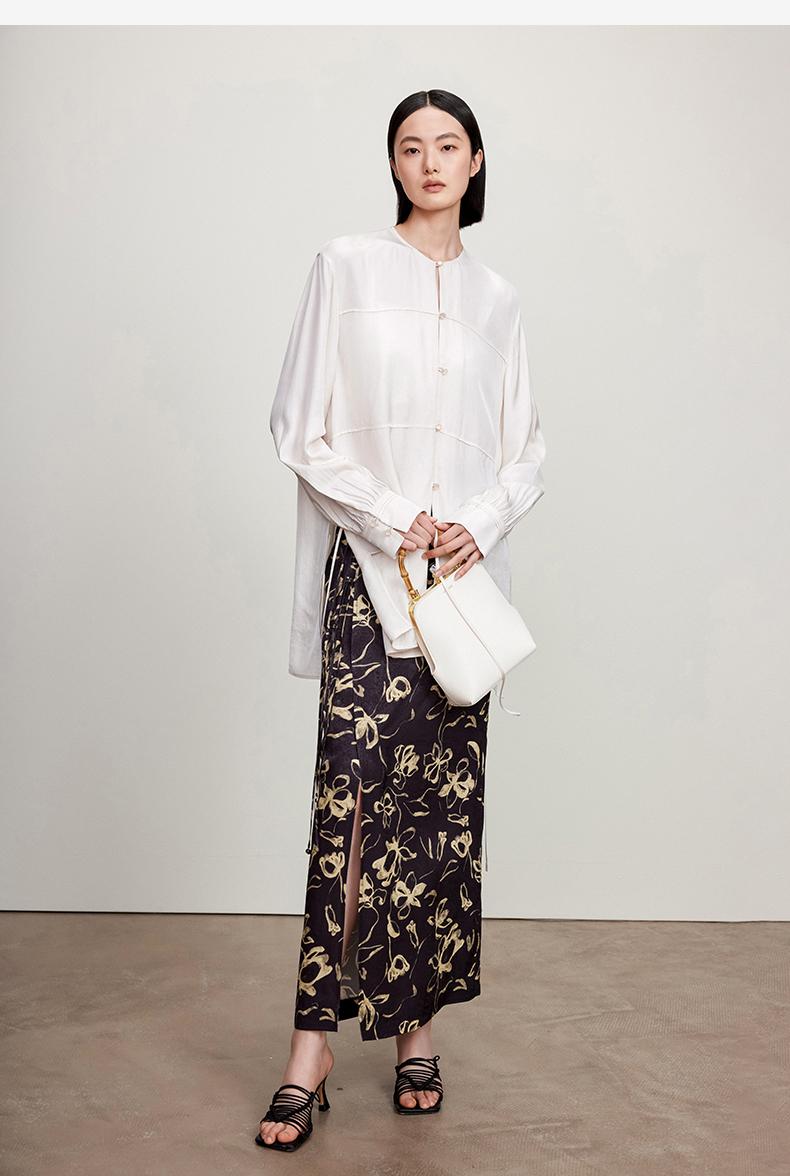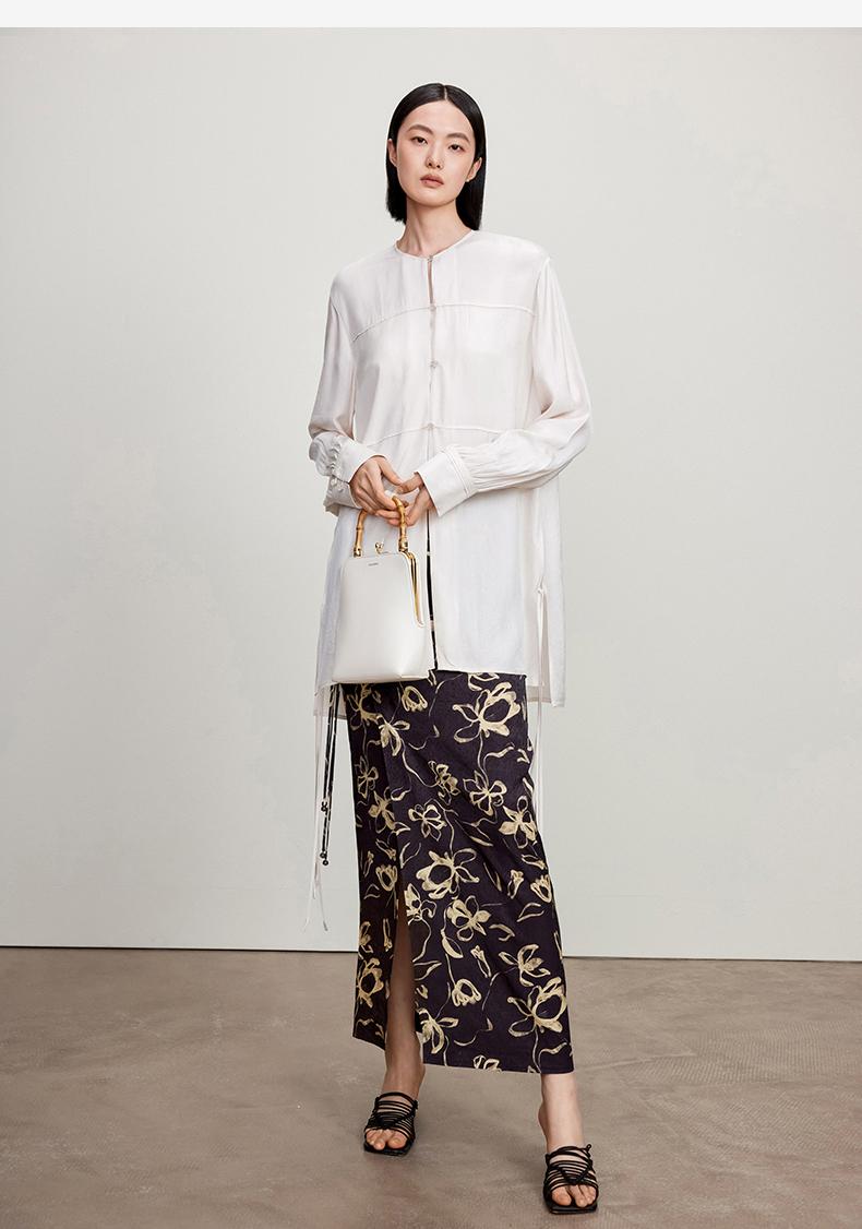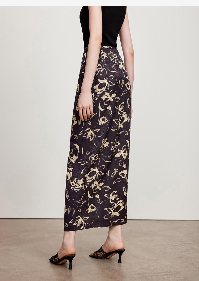 西嘉C+IMPRESS/西嘉老钱风提花新中式半身裙女夏季气质修身系带侧开衩BQ2402023