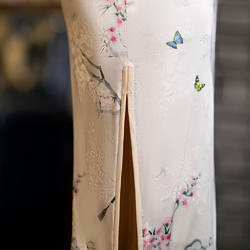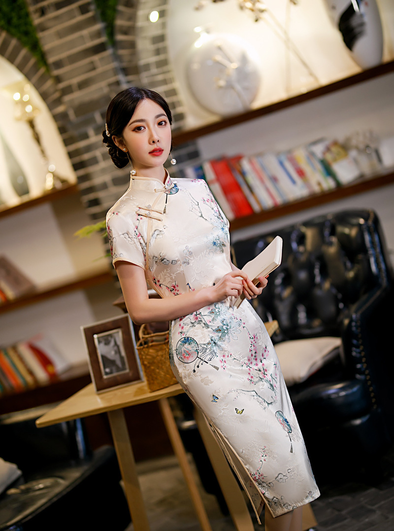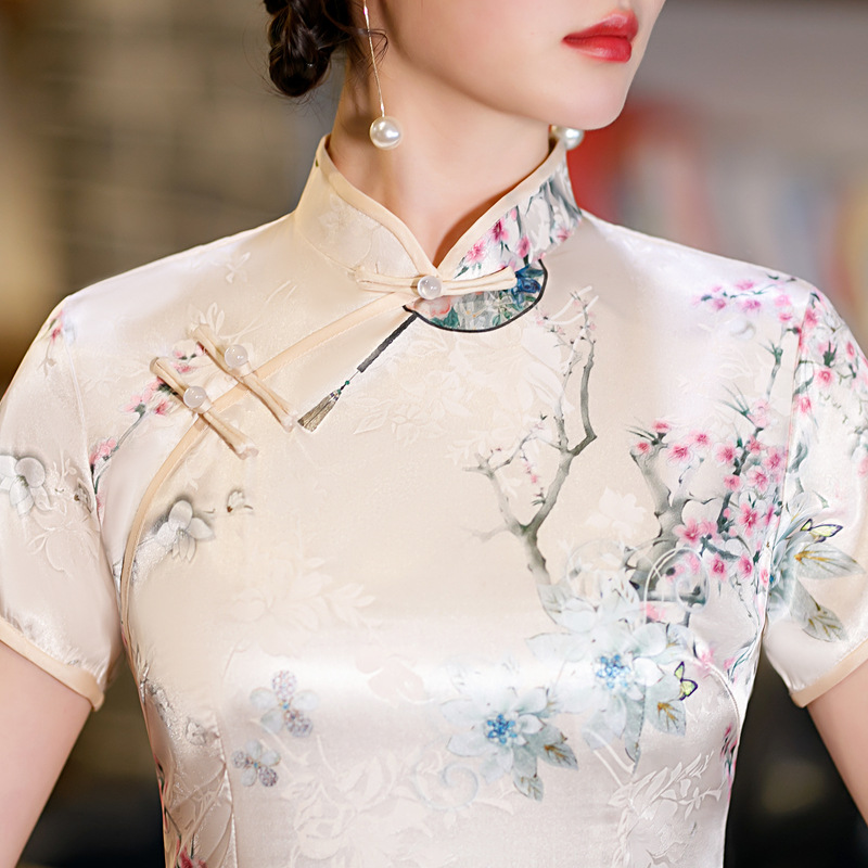 ZAYS-82262春季改良时尚丝绸印花旗袍日常修身气质年轻短袖旗袍