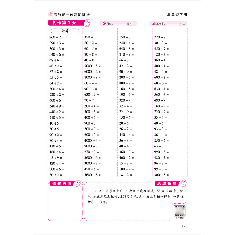 数学口算题10000道三年级下册每天100道计算题口算速算专项训练