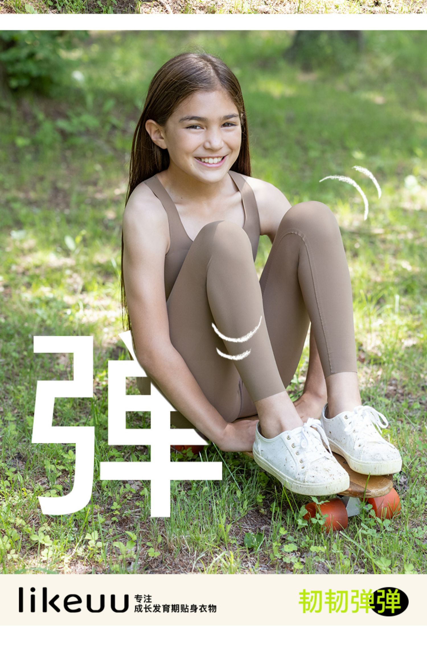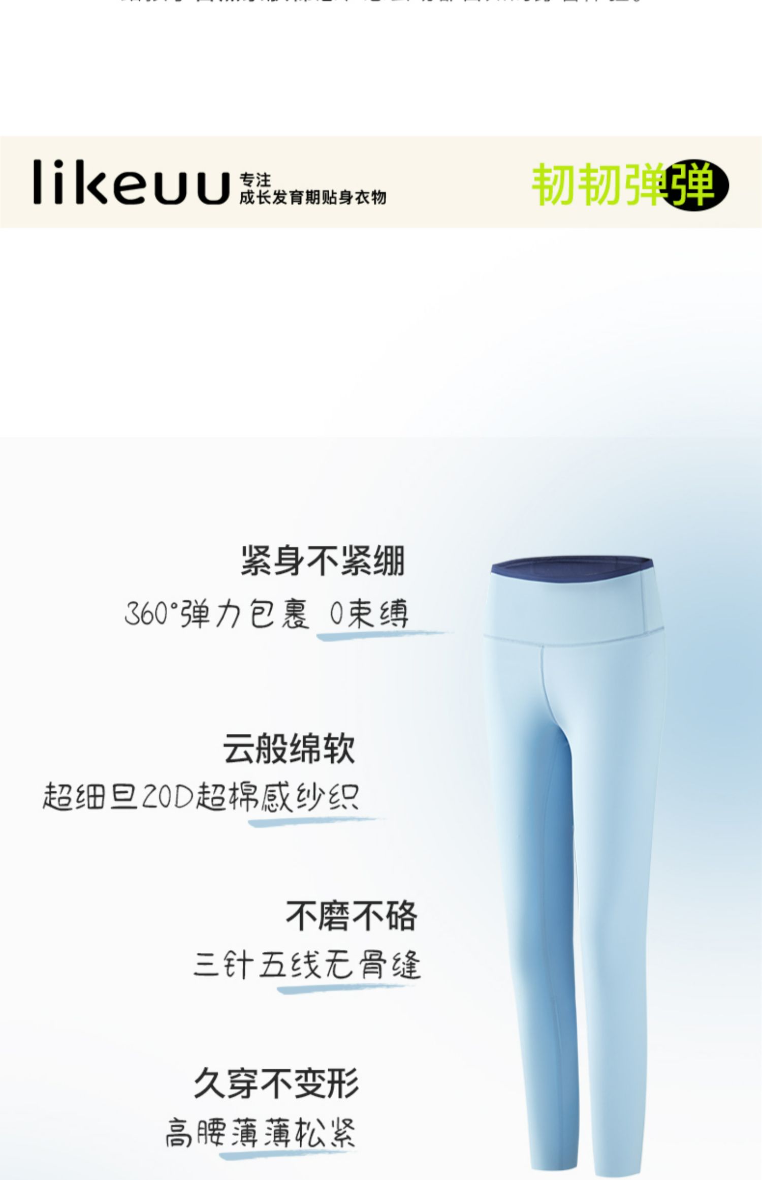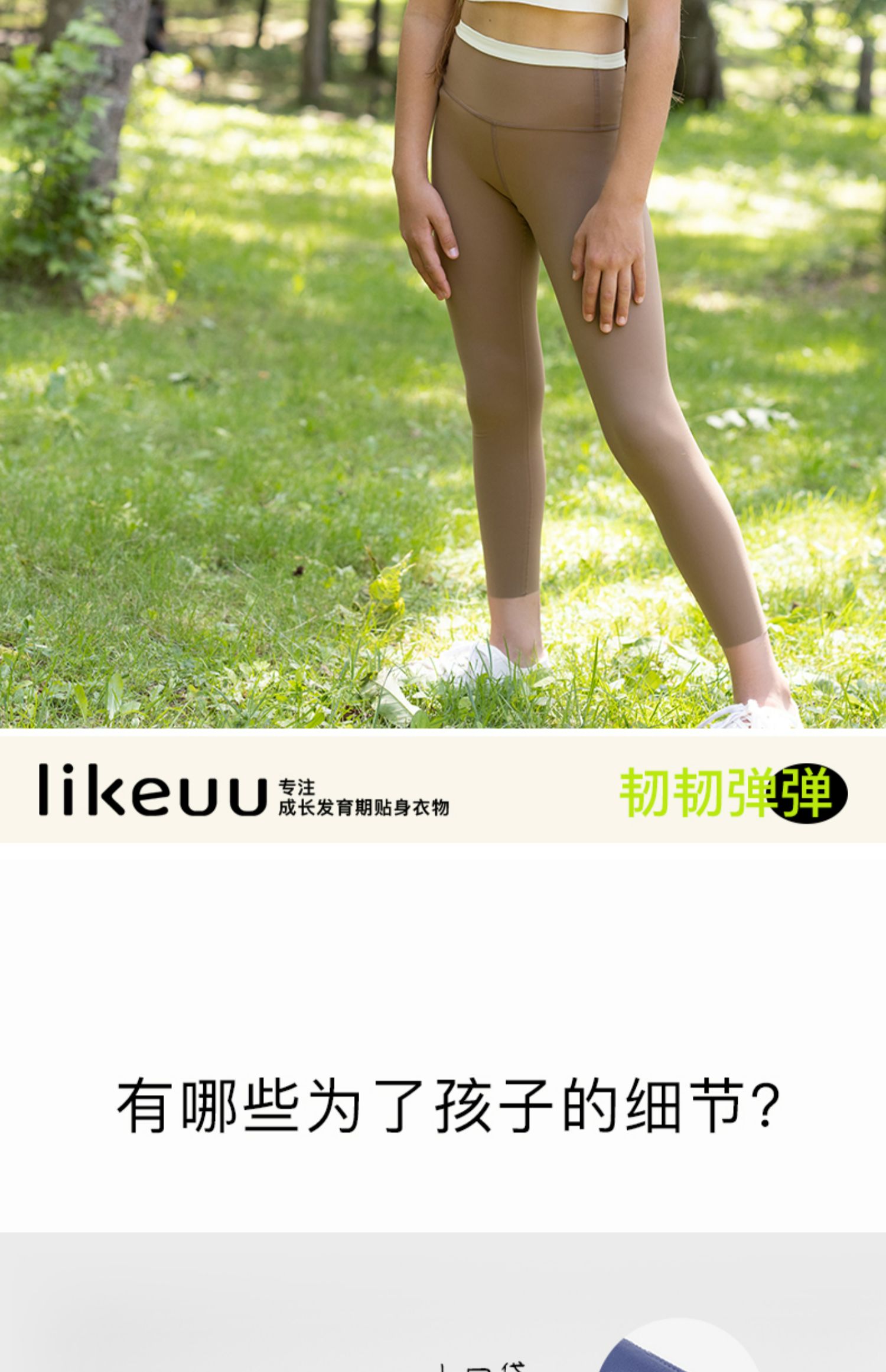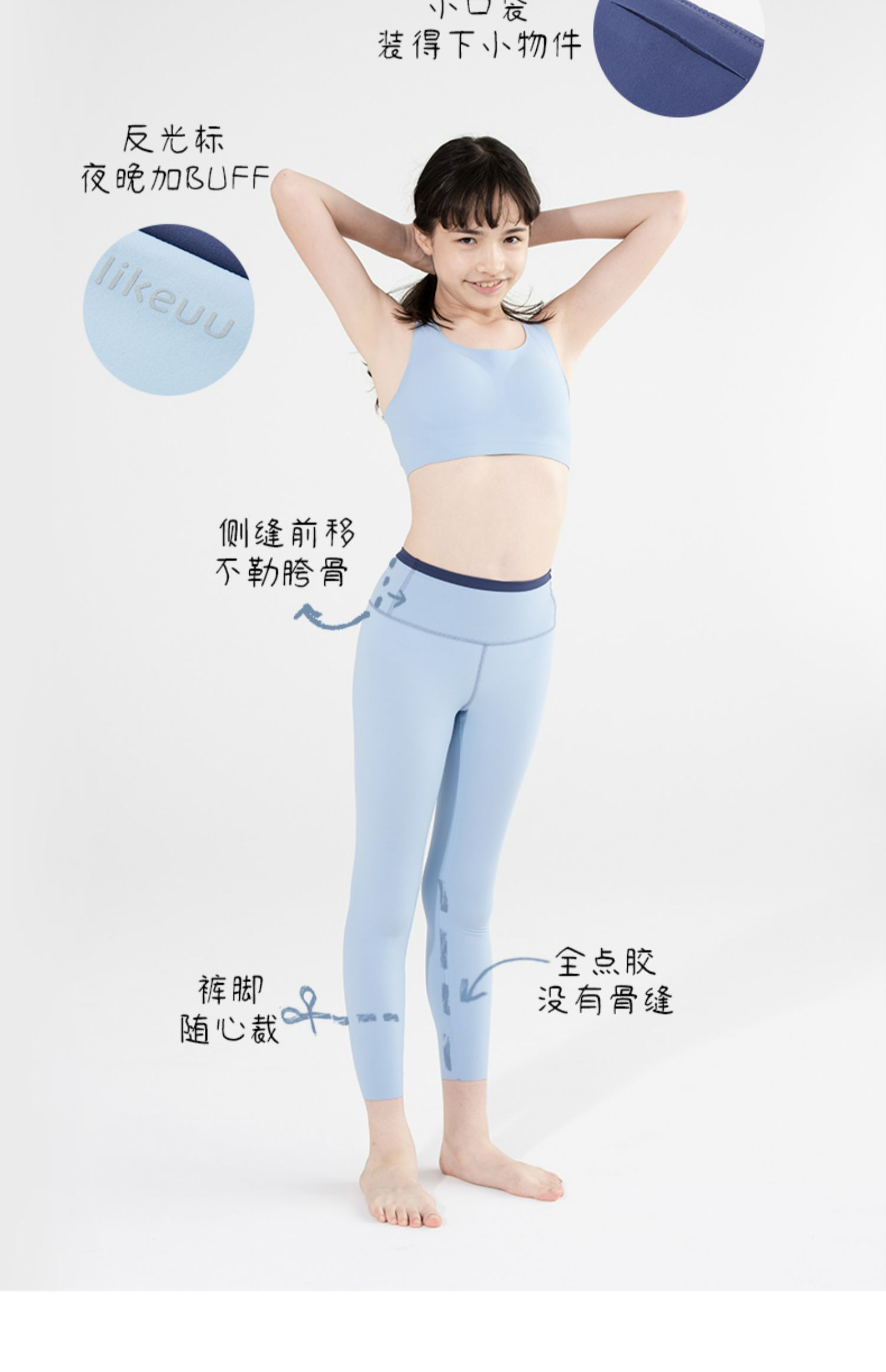 likeuu儿童运动瑜伽打底裤女童超柔轻薄透气无痕学生体育课高弹ZY