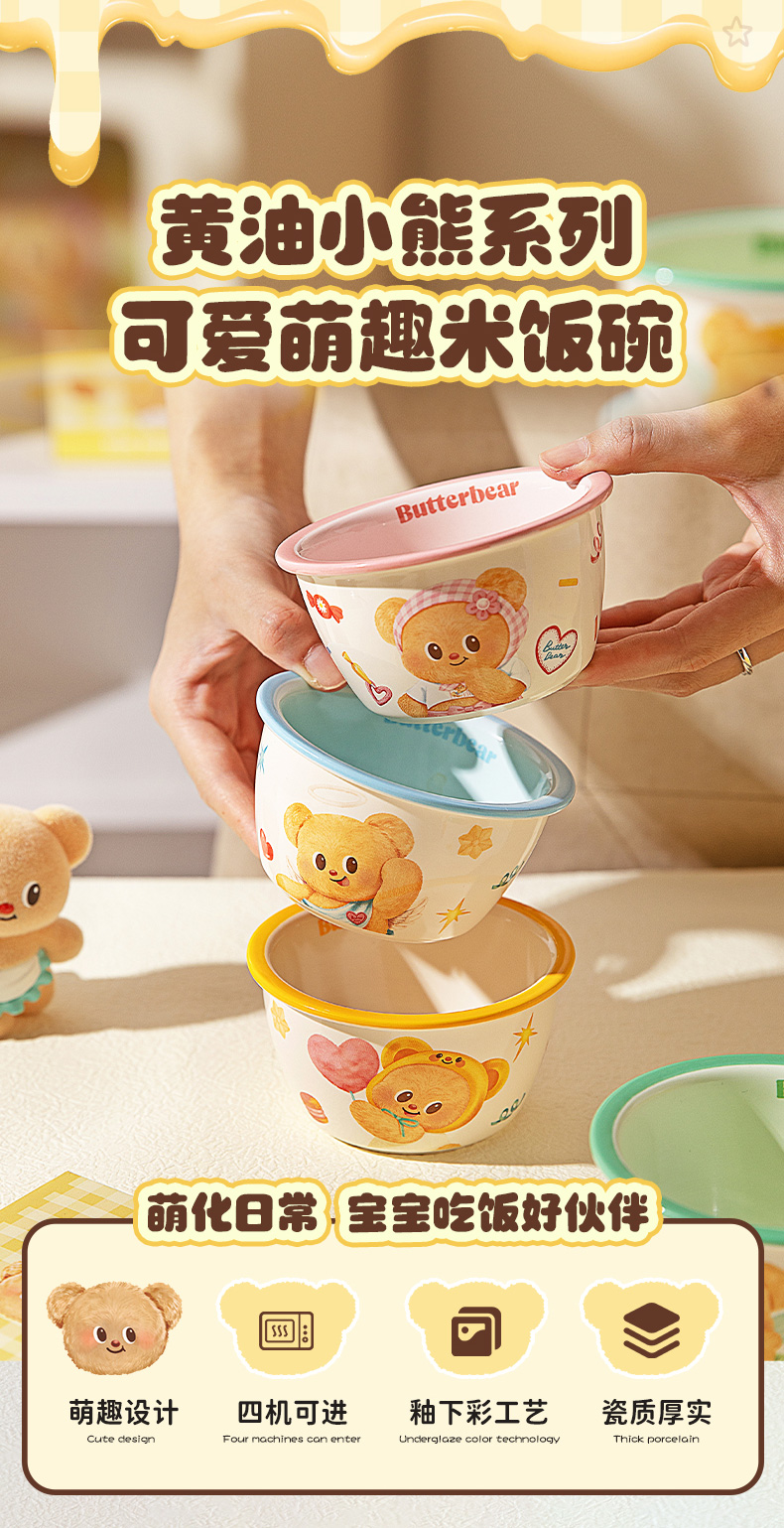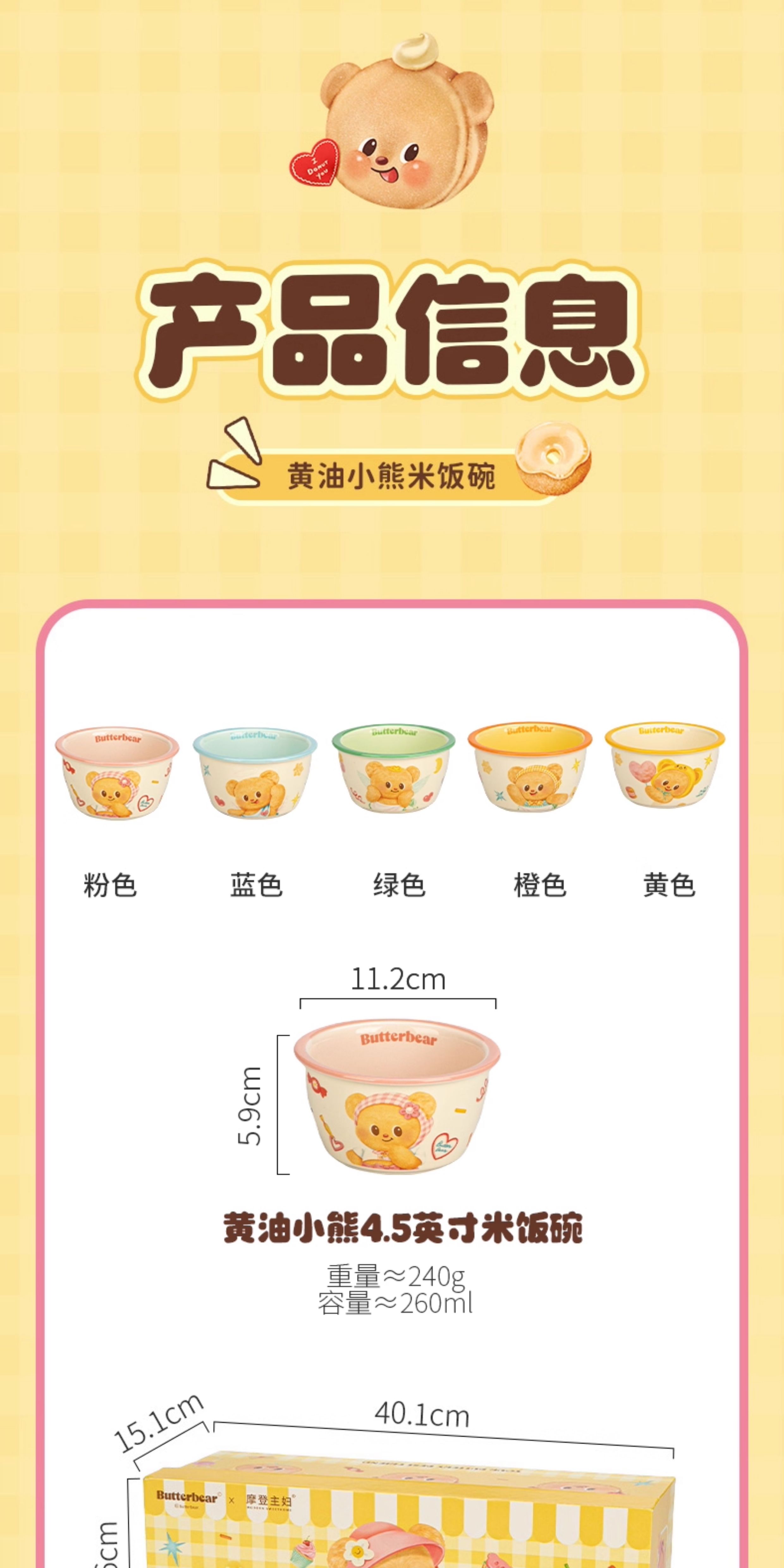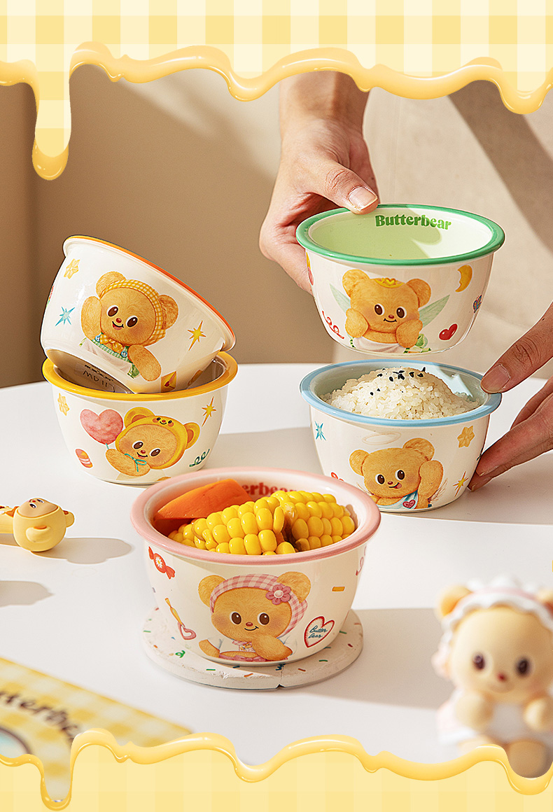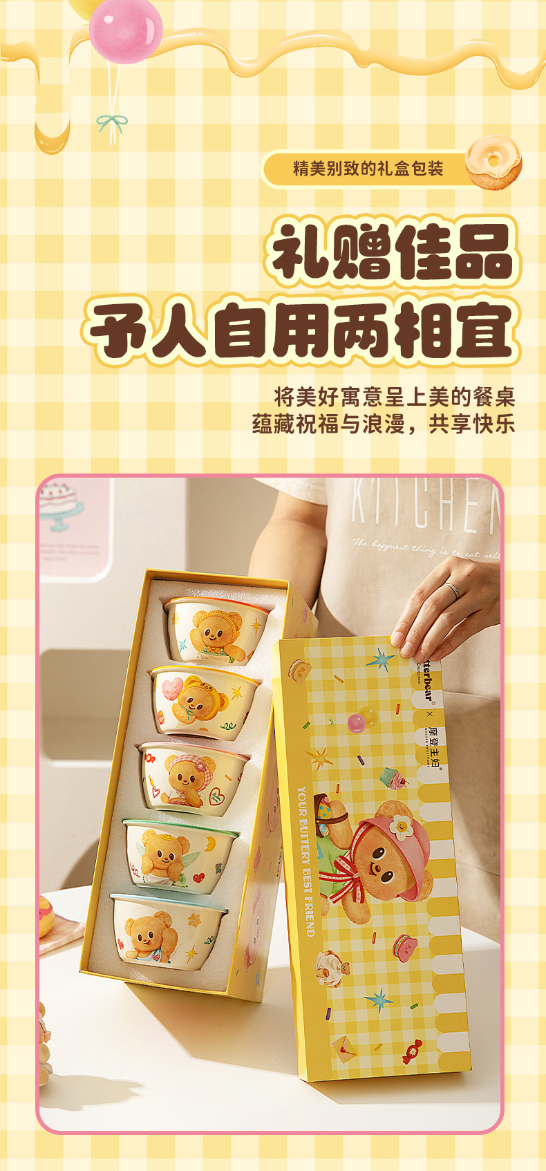 【厨具上新】中国摩登主妇&黄油小熊4.5英寸米饭碗(5个装)【礼盒装】
