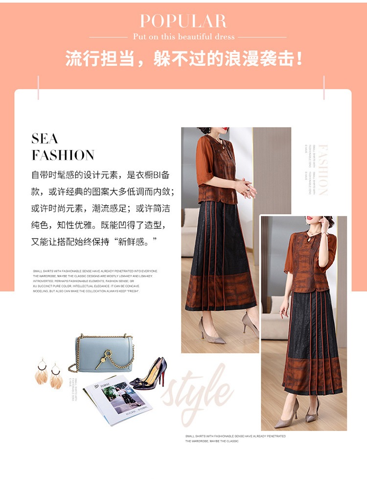 雀说新中式提花上衣半身裙两件套时尚气质显瘦套装AL9121