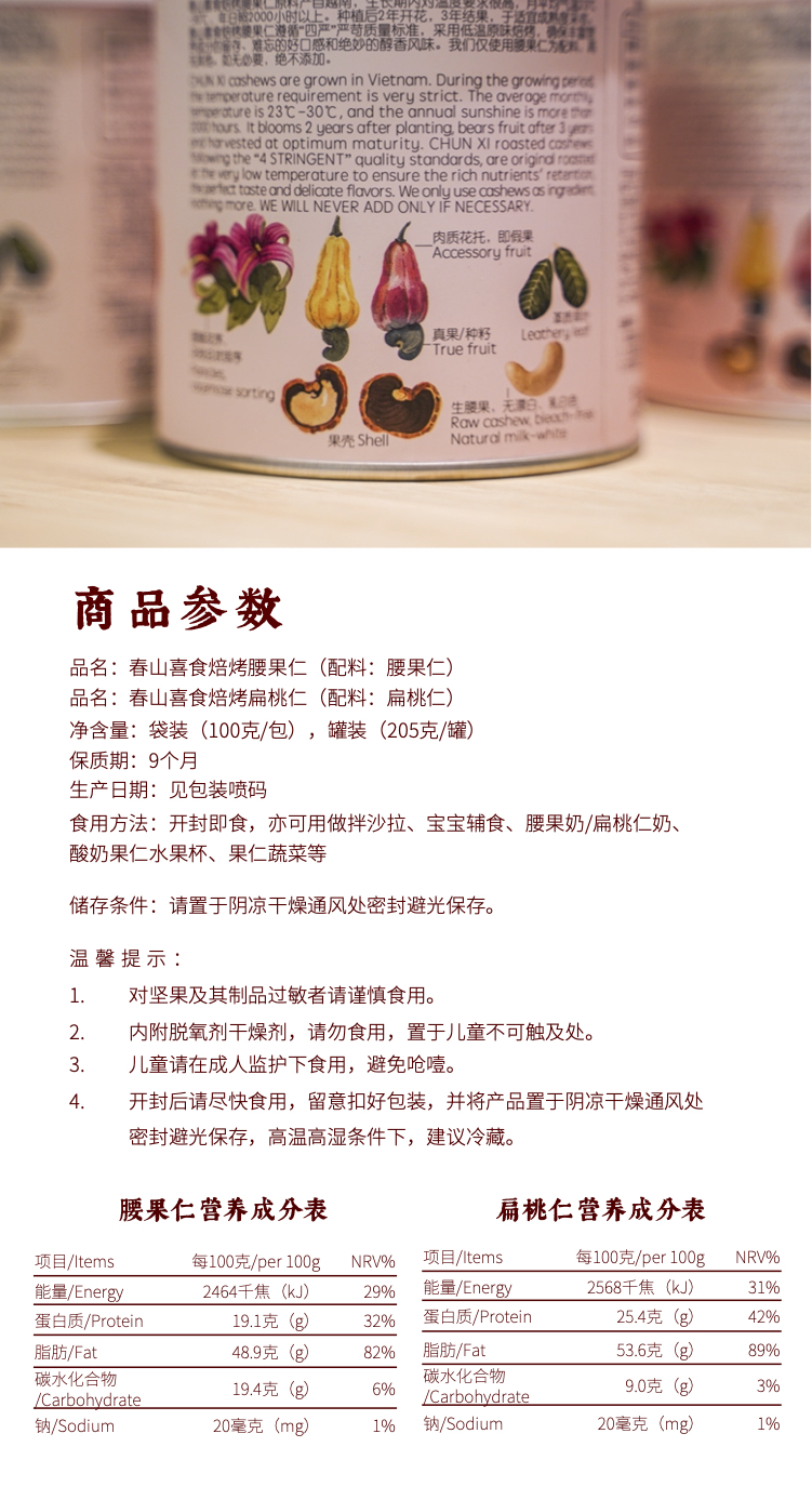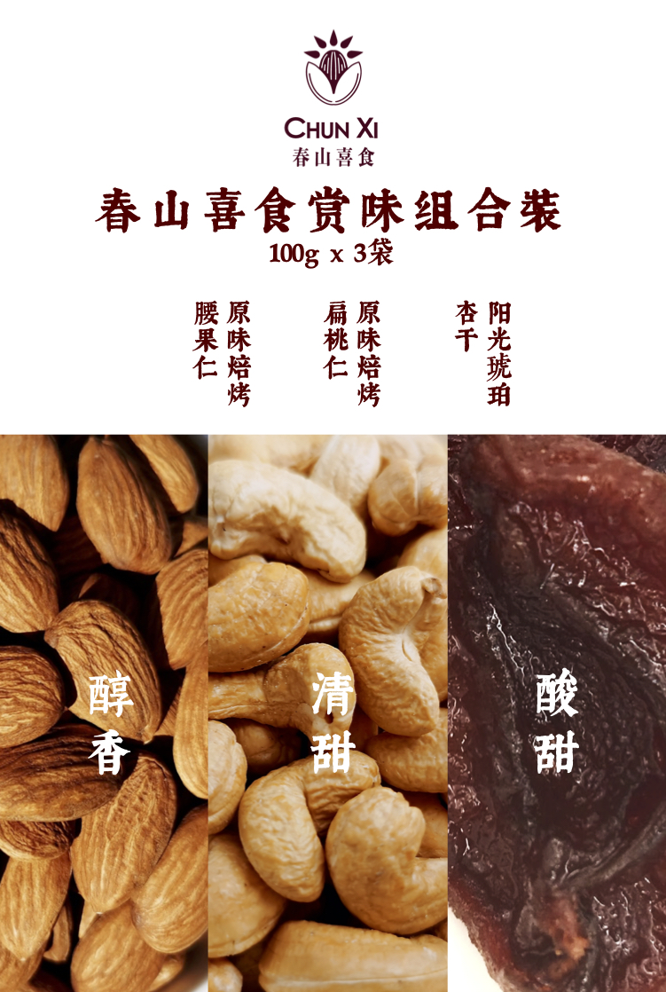 🌺 春山喜食 / 安心吃系列 3合1尝鲜袋装 / 腰果仁 / 扁桃仁 无壳巴旦木 / 杏干 无核杏肉果脯水果干